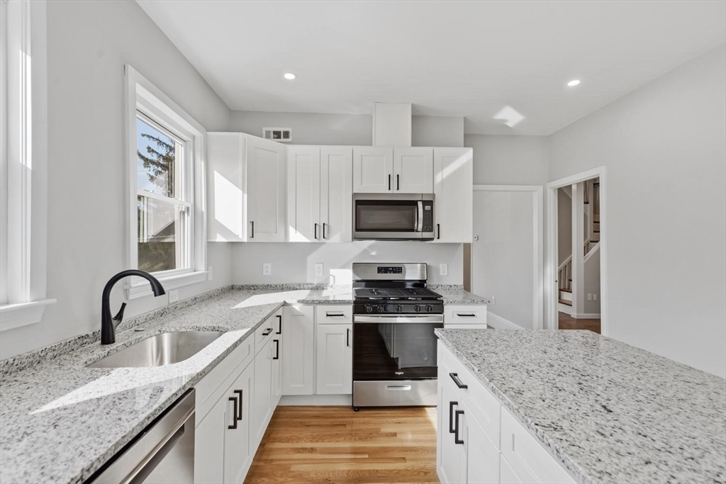 Meticulously Renovated Oversized Two Family With Modern Updates Throughout. First Floor Unit Offers 2 Bedrooms, Living Room, Gorgeous Brand New Kitchen, White Shaker Cabinets, Granite Counter Tops, SS Appliances, Large Island And Bathroom With Tiled Shower And A Tub. Second Unit Spans Two Levels Of Newly Renovated Living Space, 5 Bedrooms, 2 Full Baths. Second Floor Features 1 Bedroom Plus Bonus Bedroom/Office Space, Living Room, Den, Gorgeous Brand New Kitchen, White Shaker Cabinets, Granite Counter Tops, Stainless Steal Appliances, Large Island And Modern Bathroom With Tiled Shower And A Tub. Main Bedroom Located On The Third Floor With En Suite Custom Bathroom, Beautiful Tiled Shower And A Tub, Plenty Of Closet Space. Hardwood Floors, Recessed Light, And Freshly Painted Throughout The Entire Home. Everything Is New In The Apartments. New Electric, New Plumbing, Large Driveway With Parking For 8 Cars, Great Sized Yard. Last House On The Street.