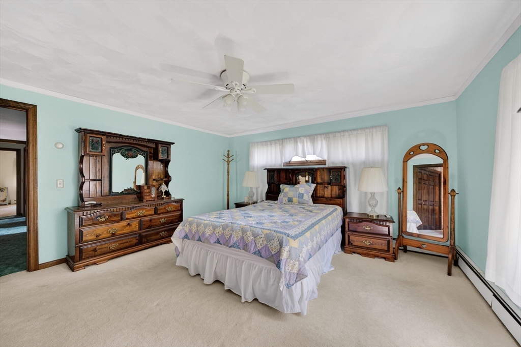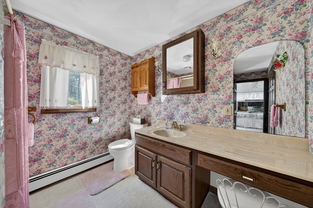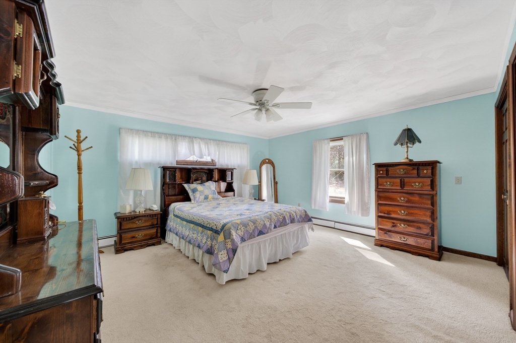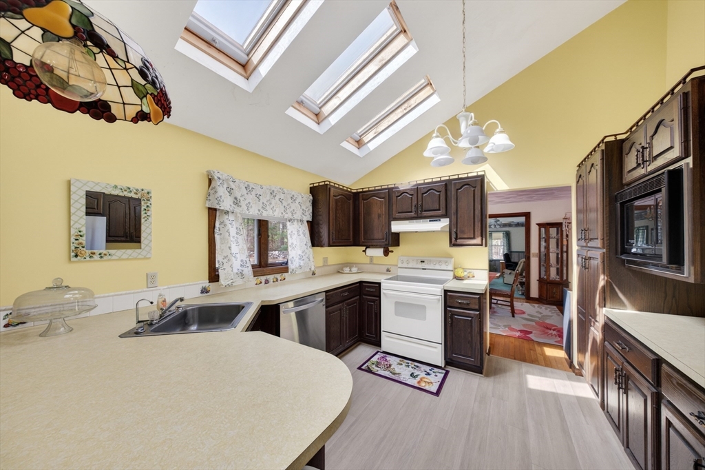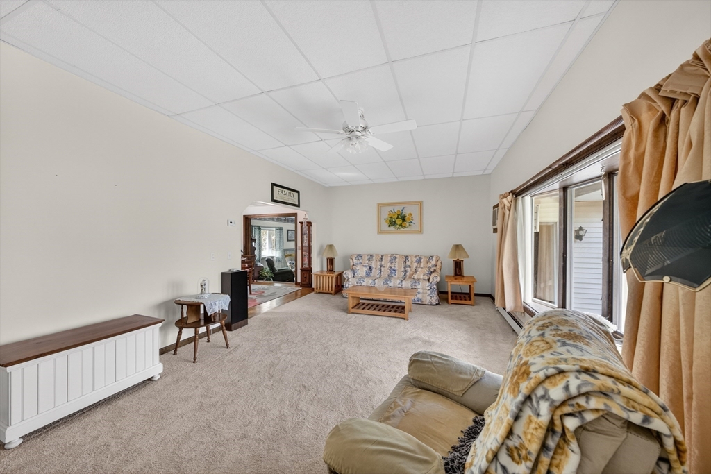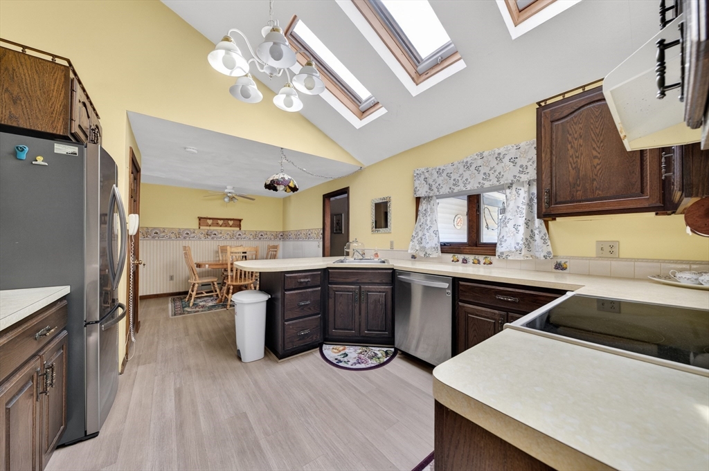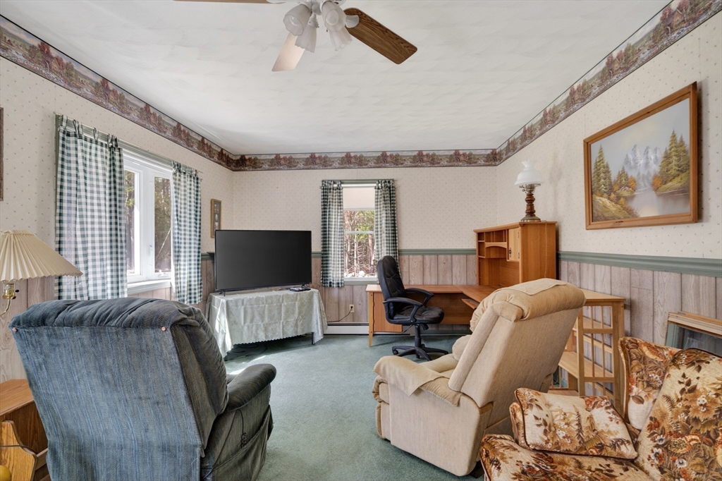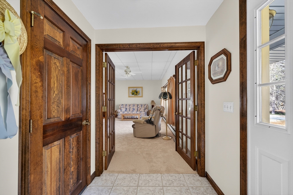 Set back from the street on a beautiful private 1.95 acre lot sits this custom built ranch. This home has been well maintained and cared for by current and only owner. A foyer welcomes you into the home with coat closet and to your right you will find a large living room with glass doors, bow window, newer wall to wall carpet. The kitchen offers plenty of cabinetry and counter space with three skylights for added sunlight. Large dining room with hardwood flooring then step down into your oversized family room with windows all along the back side of the house. This home offers a master suite with large closets, master bath along with two additional expansive bedrooms. First floor laundry. Super sized two car garage featuring a workshop. Plenty of storage in the basement along with attic. FHW by oil, 200amp electrical, roof was done approximate 12 years ago. A must see!
