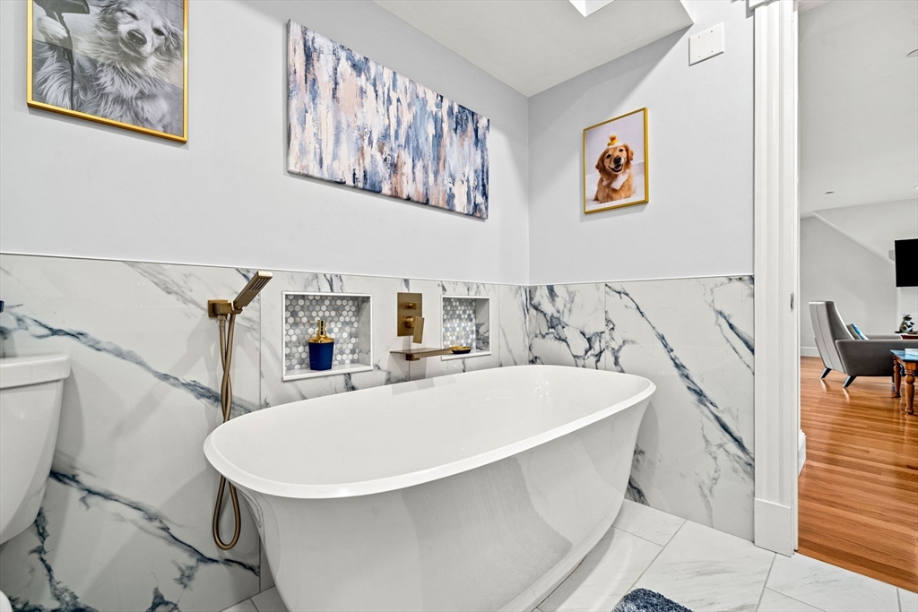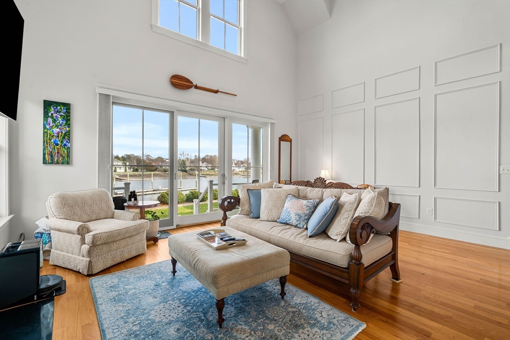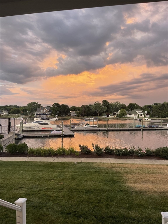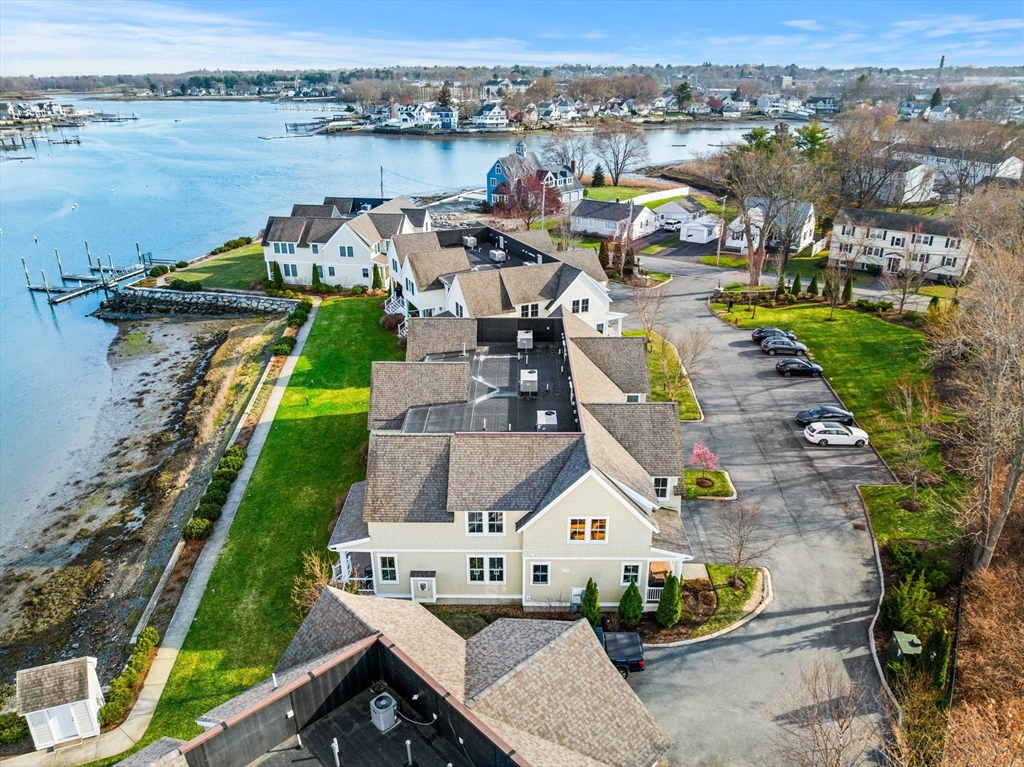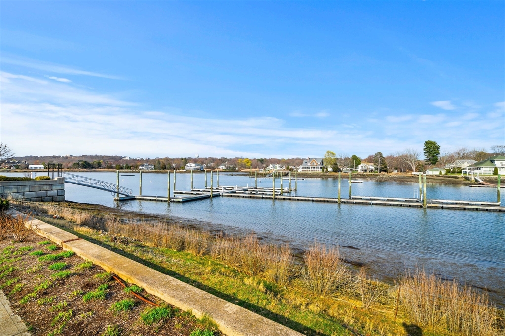 Begin each day with breathtaking views of the Danvers River from this exceptional waterfront end unit townhouse at Mariners Point. One of only two oversized residences, this rare offering features 9 foot ceilings on both levels, a desirable first floor primary suite, and a private two car garage with storage. Enjoy true riverfront living with your own private boat slip just steps from the home. The light filled interior showcases hardwood floors throughout, custom moldings, and refined craftsmanship. The upgraded kitchen features new countertops, gas cooking with double ovens, a wine chiller, and generous cabinetry. The first floor primary suite offers a private bath and nearby laundry. Upstairs are two spacious bedrooms, a renovated guest bath with soaking tub, and a versatile loft overlooking the dramatic two story great room and water views. A rare opportunity to own a premier waterfront retreat