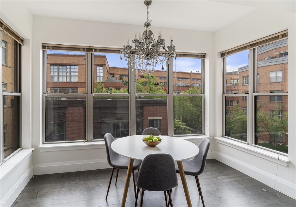 Beautiful Gateway Terrace condo with 14 windows & Roof Deck in Elevator building. Garage Parking available for purchase. Sunny upper-floor unit w/ dramatic oversized windows & high ceilings. Views of professionally landscaped courtyard with mature trees & plantings, furnishings & grill. Great open layout w/ separate dining & bedroom areas. Large chef's kitchen has stainless steel appliances, gas cooking & granite countertops. Generous dining bay accommodates a very large table. Hardwood floors throughout. Central AC, W/D in unit. Private Roof Deck w/city views. Situated on the courtyard side of the building, this home is peaceful & quiet. Onsite professional management. Pets OK. Fantastic location in the heart of SoWa Art + Design District with restaurants, galleries, Whole Foods Market. 2% of sales price is due to the BRA with each sale, paid by the seller. Unit owner pays for electricity & air circulation. Tenanted until 8/31/26