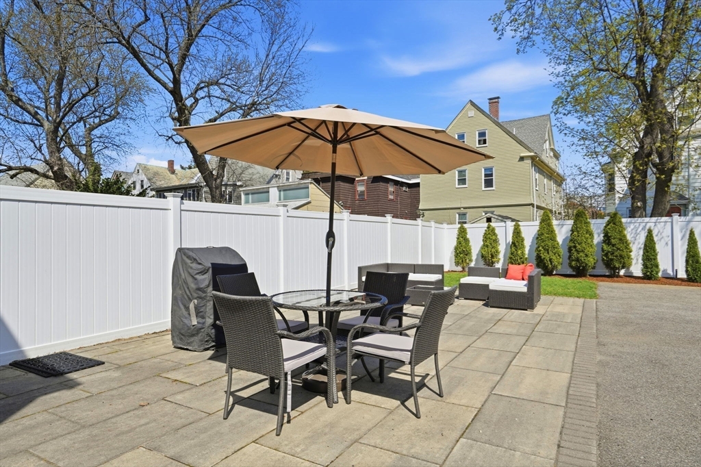 BEAUTIFULLY RENOVATED, attached SINGLE-FAMILY home with tons of curb appeal, featuring a rare, professionally landscaped, fenced-in backyard—an exceptional find in the city—complete with an oversized patio, shed and a paved driveway offering parking for 4+ cars in PRIME LOWER ALLSTON NEIGHBORHOOD LOCATION! The open-concept first floor includes a sun-filled family room that flows seamlessly into a formal dining room and spacious, eat-in kitchen, overlooking the picturesque backyard. A half bath completes this level, while the second floor offers 3 generously-sized bedrooms and a well-appointed full bath. Thoughtful updates throughout, including 4.44kW PV System (2021), new roof (2018), upgraded 200 AMP electrical (2017), 5 mini-splits for A/C (2017), among others reflect meticulous care by the current owners. This is the one you’ve been waiting for~ Moments from multiple grocery stores, the commuter rail, Western Ave restaurants, the Charles River Esplanade, and Harvard Business School.