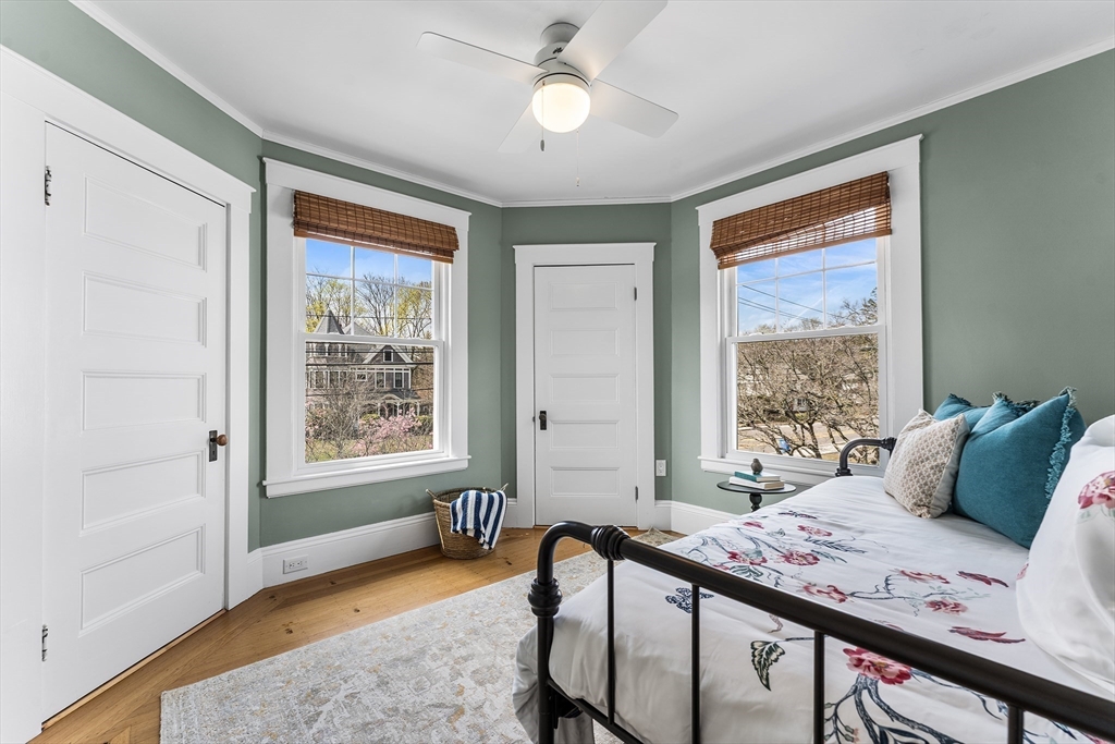 A magnificent turnkey residence offering outdoor & indoor spaces & grandeur that is timeless. A wraparound porch welcomes you to this Grand Dame with rich architectural detail. The lovely foyer sets the stage for an experience that only homes of this era can offer including French doors to an elegant dining room; eat in kitchen & fireplaced living room. A pretty sunroom overlooks the private fenced in yard that backs up to conservation. 4 bedrooms adorn the 2nd fl as well as a modern full bath. Bonus 3rd floor is perfect for office or home gym. Additional quality features include central air, 2 car garage with EV charger, simplisafe security system & generous storage. This is a home you will never want to leave in a superb location. Historical significance that the architect for this home is Ida Annah Ryan: 1st woman to receive a master's degree in architecture as well as the 1st woman to receive a masters degree at MIT. Move in ready with updated systems. Absolute perfection!
