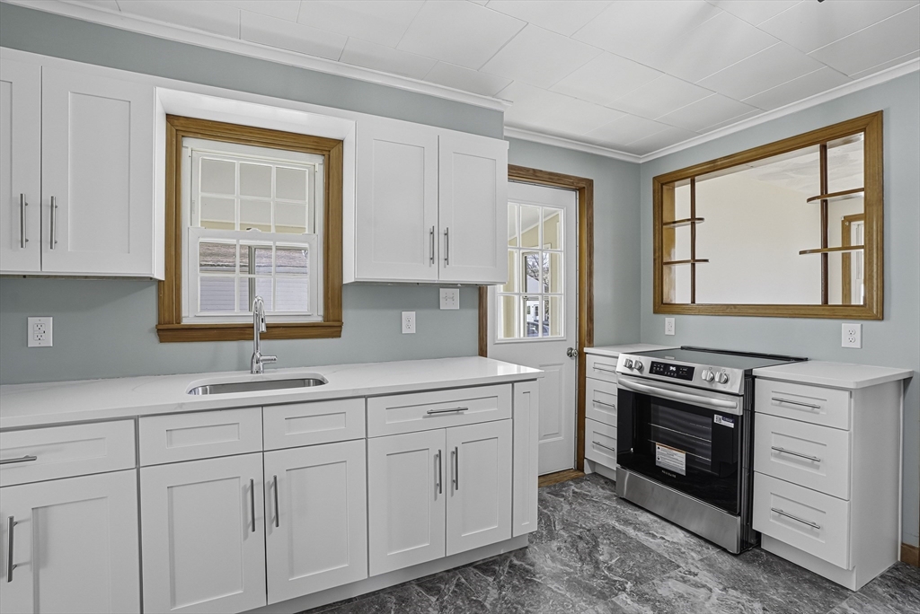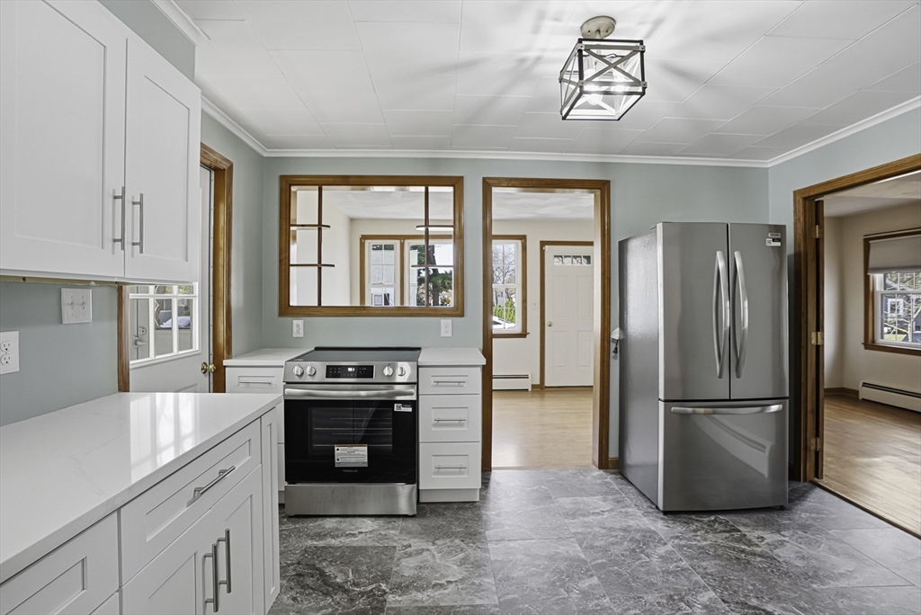 BRAND NEW 3 BEDROOM SEPTIC, NEW ASPHALT ROOF w/ transferable warranty, freshly REMODELED KITCHEN & BATHROOM! This adorable bungalow ranch offers easy, one-level living w/ 2 bedrooms, an office w/ closet, kitchen, living room & 1 bathroom. Beautiful eat-in kitchen w/ stainless steel new appliances, new cabinets & new quartz countertops, open to the cozy living room, perfect for entertaining. Thoughtfully updated & move-in ready, w/ a newly remodeled bathroom as well! The lower level provides great storage & expansion possibilities for a future recreation room, workshop, or additional living space. The home sits on a flat lot w/ a nice back yard on a quiet dead-end street, yet close to shops, restaurants, golf, & more. Bright, updated interiors & ample storage complete the appeal. Ideal for first-time buyers, downsizers, or anyone seeking easy one-floor living w/ extra potential. Be the first to use the new appliances in the kitchen & appreciate the new carpet in the second bedroom!