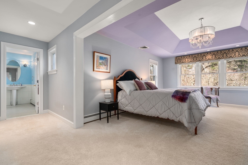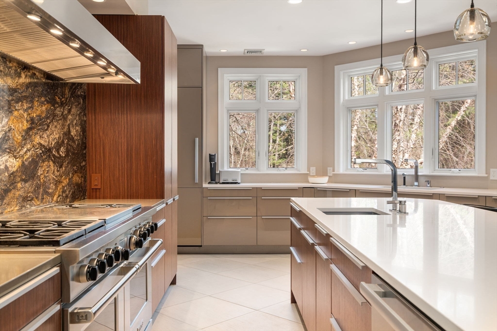 Exceptional 5-bedroom estate with over 9000 sq ft of living space set on 3.3 bucolic acres abutting conservation land blending timeless design with modern luxury and is a masterclass in craftsmanship for today’s discerning buyer. Elegant living and dining rooms flow into a chef’s kitchen with custom cabinetry, top-tier appliances, stonework, and an oversized island, opening to a warm family room with fireplace. Sunlit interiors feature expansive windows framing serene natural views. A home office and mudroom with built ins add everyday convenience. Upstairs are four spacious bedrooms, and three full baths including a dream primary retreat with a 2024 renovated spa bath. The 2800 sq ft walk-out lower level includes a home theater, gym, playroom, wine cellar and au pair/in-law suite. Enjoy an expansive patio and level backyard, perfect for entertaining and play. 3-car garage. Prime location on the Weston line, minutes to commuting routes, Wayland Town Center, and top schools. A rare gem!