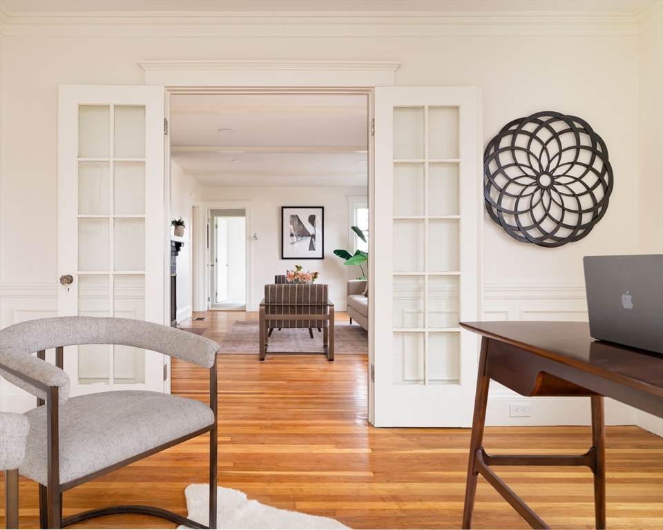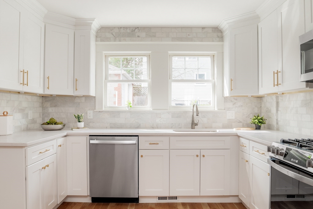 Welcome to 652 Belmont Street, a beautifully reimagined 2 unit multi-family; each a 3-bed, 2-bath where classic New England charm meets a sophisticated modern refresh. Stunning coffered ceilings, rich oak hardwood floors, and a wood-burning fireplace set the tone, while brand new eat-in kitchens impress with GE stainless appliances, white shaker cabinetry with gold hardware, and marble subway tile. The bathrooms are brand new, including serene primary suites with private en-suites and walk-in showers. Original wainscoting, crown molding, and ceiling medallions have been lovingly preserved, proof this home was reimagined, not reinvented. Step out to your private patio, perfect for morning coffee or evening unwinding. Driveway, plenty of basement storage, and in-unit laundry complete the offering. Perched on the Belmont-Watertown line, Arsenal Yards, MBTA bus service to Cambridge and Boston, and the best of Greater Boston living are right at your doorstep.