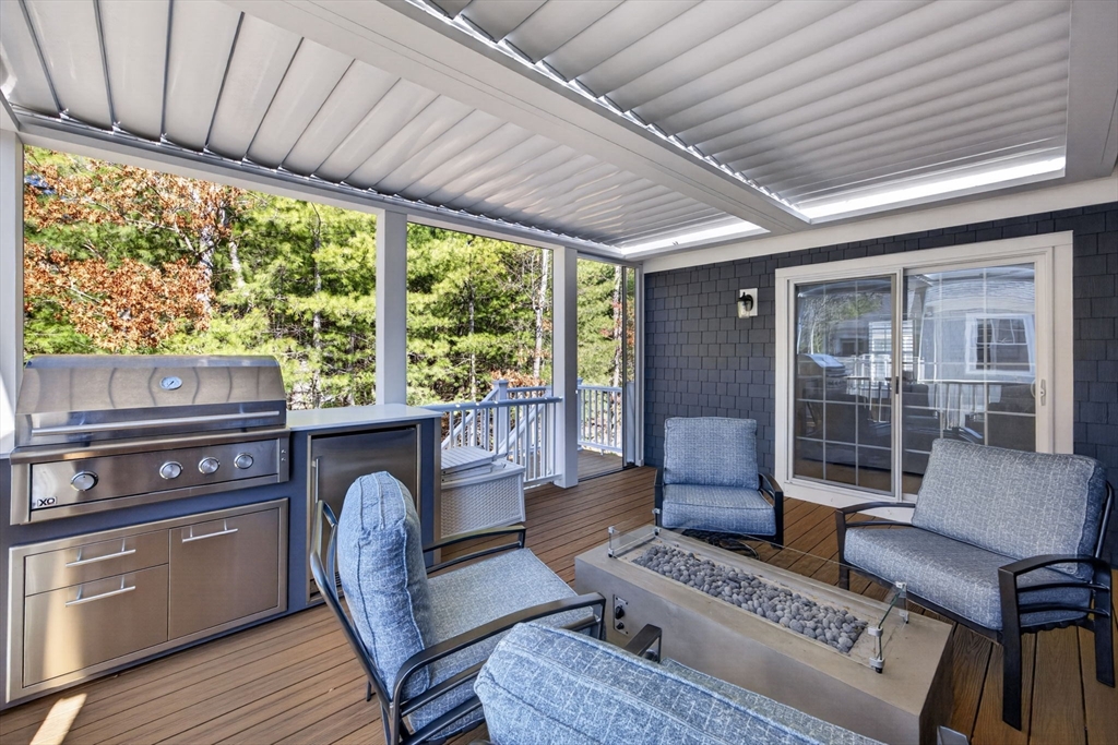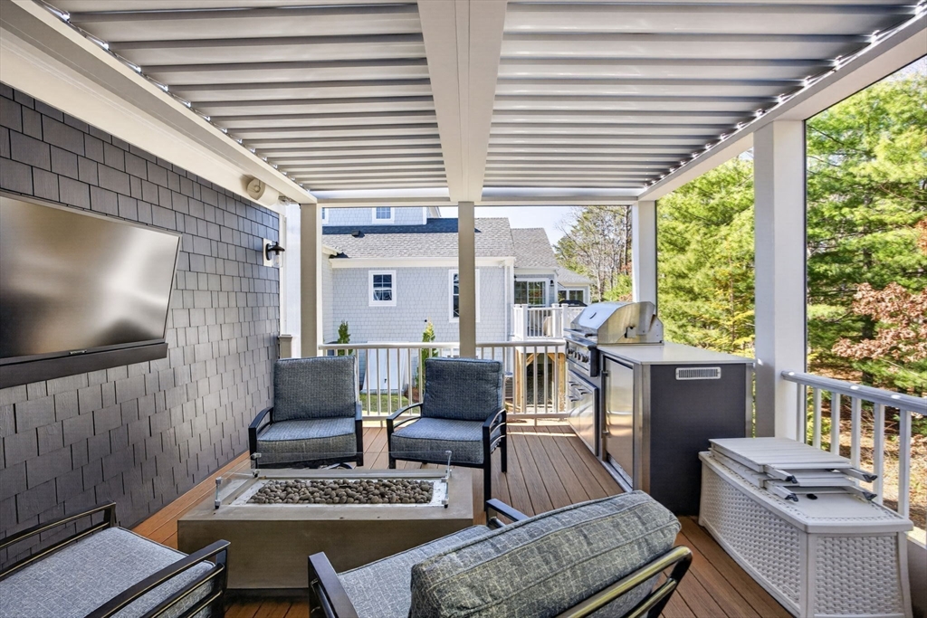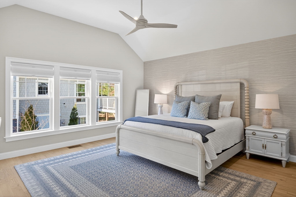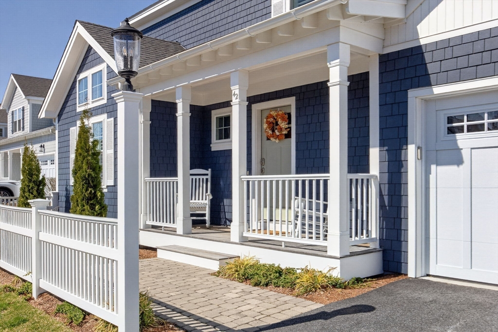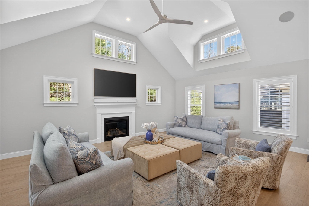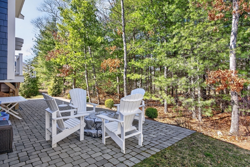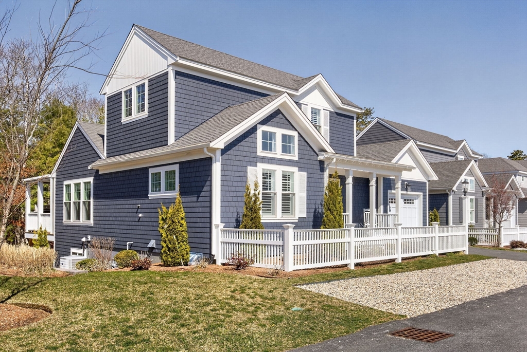 Welcome to refined coastal living in Ockway Village at New Seabury. This exceptional Gardenia model offers 3,582 sq. ft. of elegant living space with a sun-filled open layout, cathedral ceilings, a fireplace living room, and a chef’s kitchen with quartz countertops and high-end appliances. The first-floor primary suite features a spa-inspired bath. The second level includes two guest bedrooms and a full bath, while the finished lower level offers two additional bedrooms, a full bath, and a family/recreation room. Enjoy outdoor living with a screened porch, outdoor kitchen, fire pits, and a private patio set within a peaceful rear-facing wooded area. Turnkey, partially furnished residence with a garage and strong rental potential. Located in a gated community with a private pool in one of Cape Cod’s premier destinations, close to beaches, golf, dining, and shopping. Membership required for club amenities. Buyers and their representatives to verify all information.
