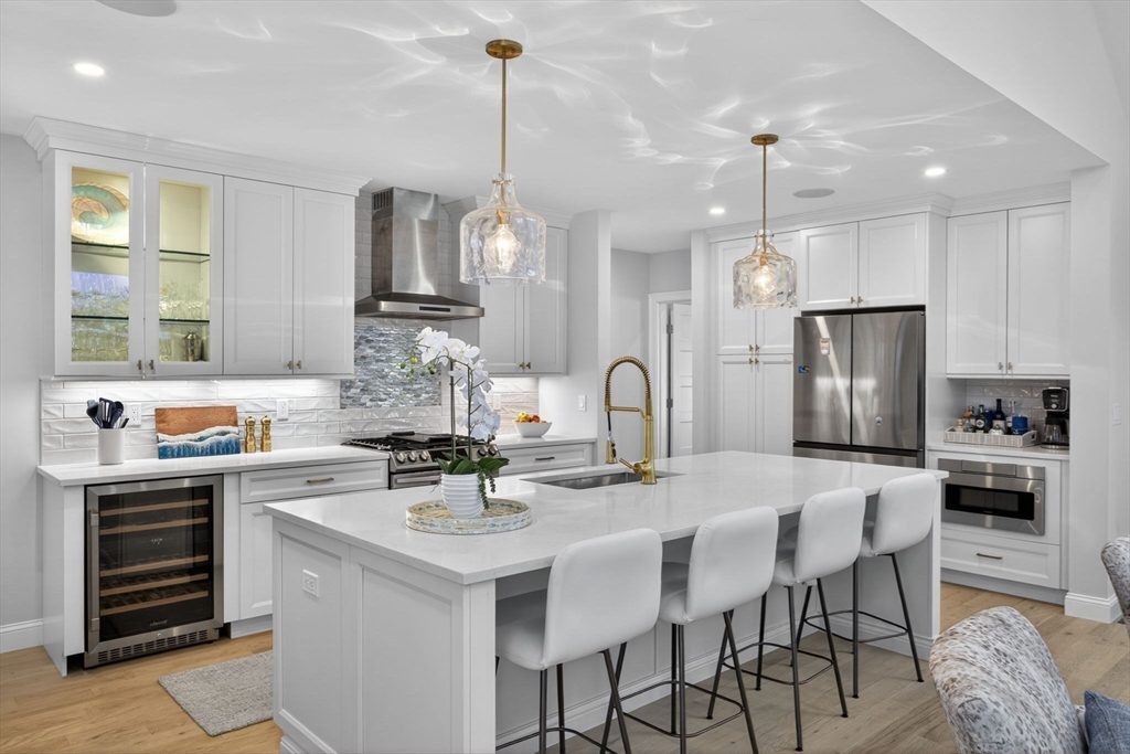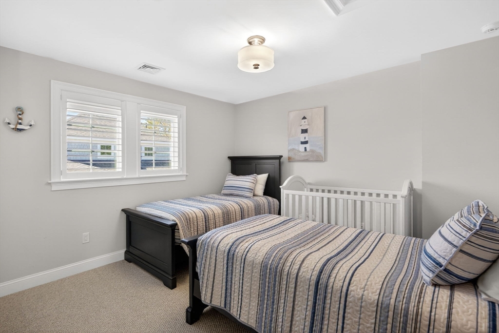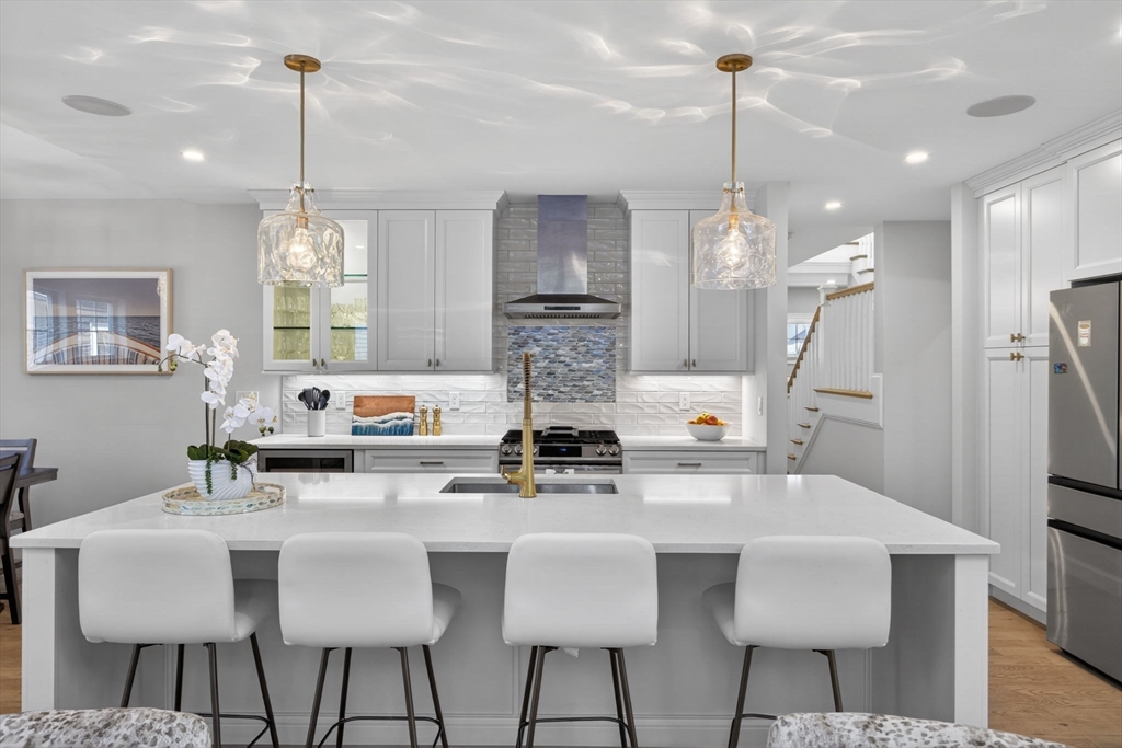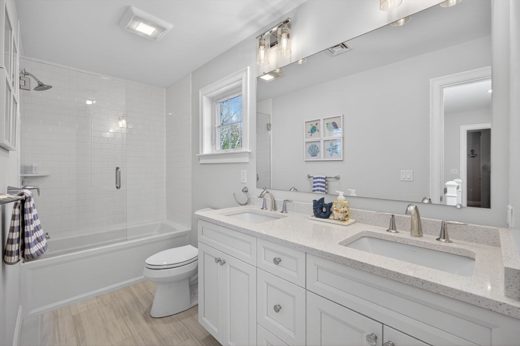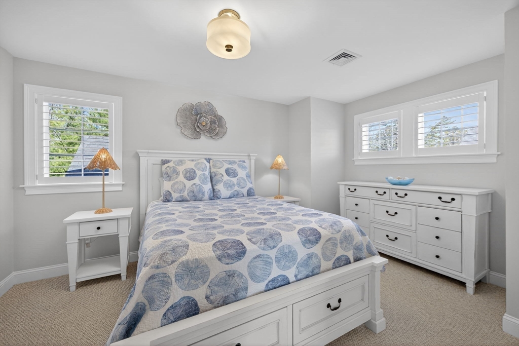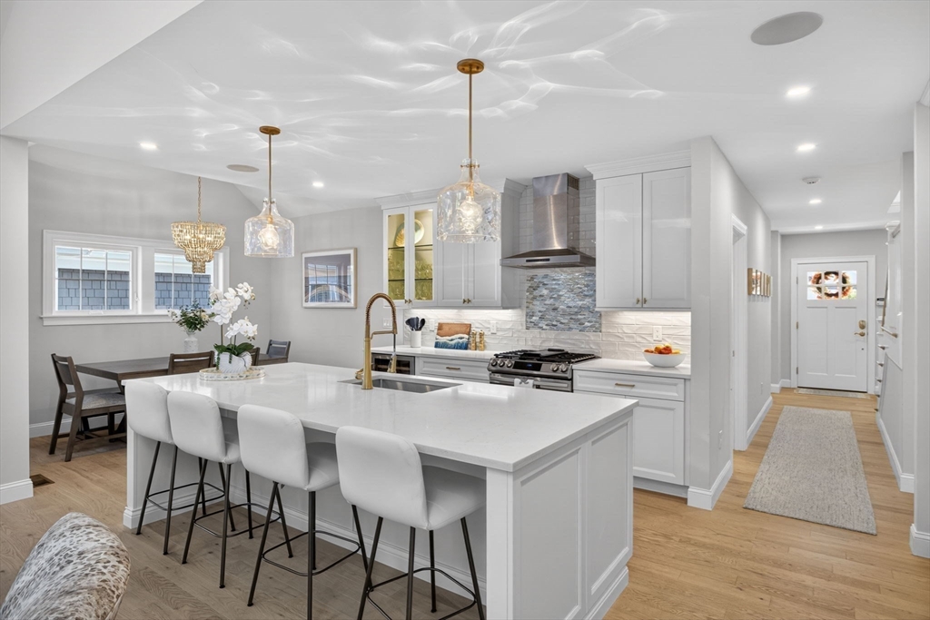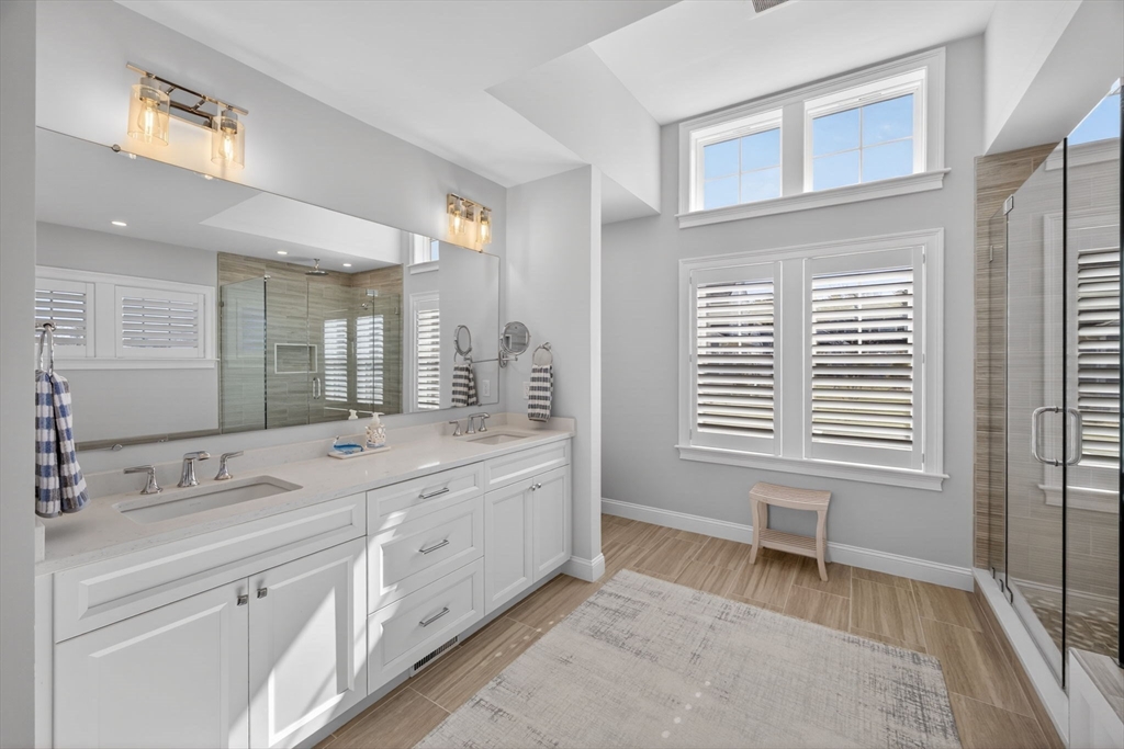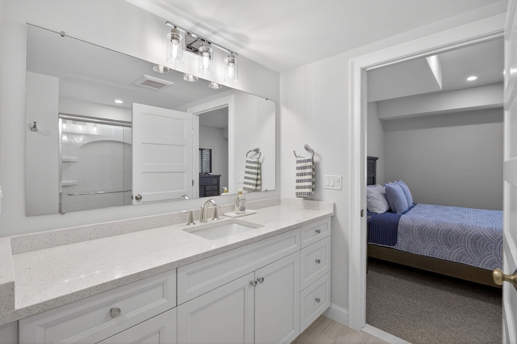 Welcome to refined coastal living in Ockway Village at New Seabury. This exceptional Gardenia model offers 3,582 sq. ft. of elegant living space with a sun-filled open layout, cathedral ceilings, a fireplace living room, and a chef’s kitchen with quartz countertops and high-end appliances. The first-floor primary suite features a spa-inspired bath. The second level includes two guest bedrooms and a full bath, while the finished lower level offers two additional bedrooms, a full bath, and a family/recreation room. Enjoy outdoor living with a screened porch, outdoor kitchen, fire pits, and a private patio set within a peaceful rear-facing wooded area. Turnkey, partially furnished residence with a garage and strong rental potential. Located in a gated community with a private pool in one of Cape Cod’s premier destinations, close to beaches, golf, dining, and shopping. Membership required for club amenities. Buyers and their representatives to verify all information.
