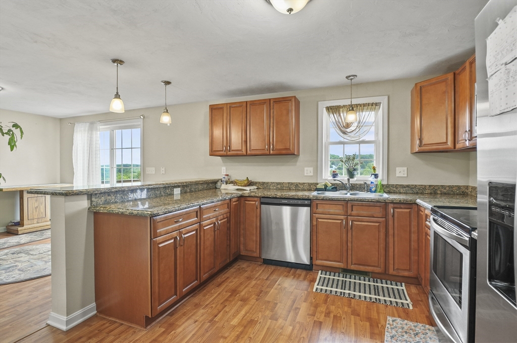 *Now Priced to sell* This Charming 3-bedroom, 1.5-bath duplex-style home with no condo fees and less than 10 years old, offering a perfect blend of comfort, convenience, and modern design. Enter inside to a bright & inviting living room featuring double windows that fill the space with natural light & a cozy gas fireplace for added warmth. The open-concept layout flows seamlessly into the kitchen, showcasing granite countertops, stainless steel appliances, a breakfast bar, and a pantry closet for extra storage. The adjoining dining area offers access to the back deck through sliding glass doors with beautiful city views of Worcester. A convenient half bath completes the main level. Upstairs offers three spacious bedrooms with generous closet space and a full bath with a double vanity and tub/shower combo. Additional highlights include central air, interior garage access, and a desirable location close to shopping, dining, & major routes including I-90 and I-290.Open house 11/8 1-2:30pm