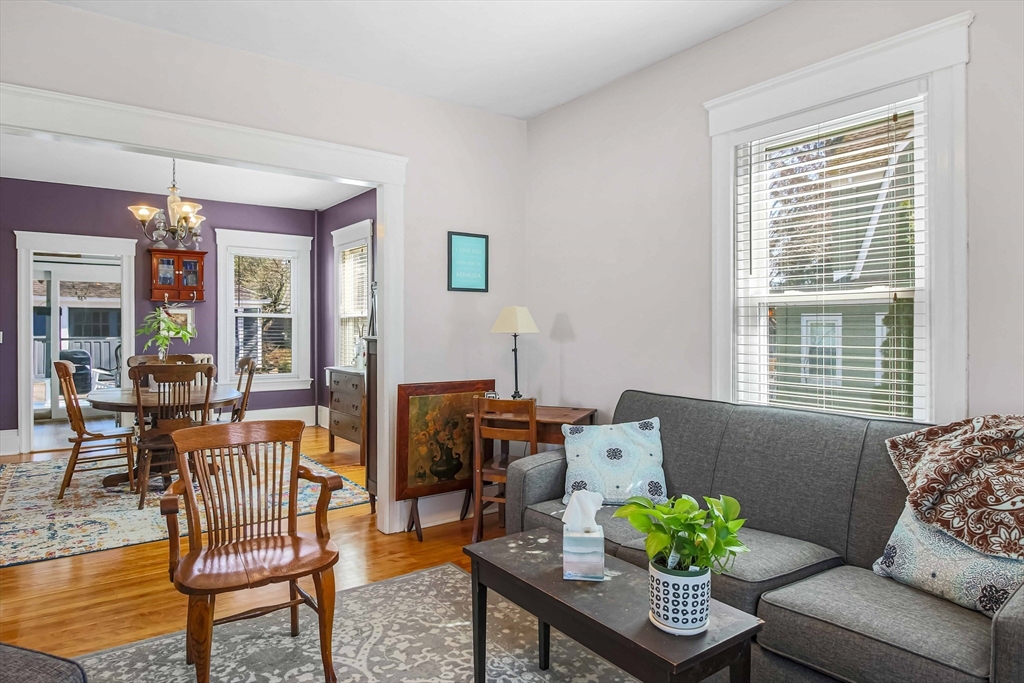 This property features all the quality and characteristics of a much larger home built in the early 1900's. You are greeted by a main staircase in the front foyer with all natural woodwork and hardwood floors. High ceilings with large doorways creating an open airey atmosphere, sun filled living room with a dining room featuring a built-in china closet. The renovated kitchen with recessed lights is accented with a quartz counter top, gas cooking, breakfast area if needed and a separate laundry room with additional cabinets. The glass doors open to the rear screened porch and overlook the gardens and 3 car garage, perfect as car storage, workshop, or possible ADU. Three bedrooms are located on the second floor with a full bath outfitted with beadboard woodwork and a claw foot tub. The walk up attic off the second floor landing, with windows and good ceiling height is perfect if you need addional living space. Easy access to local highways, universities, shopping & conveniences.