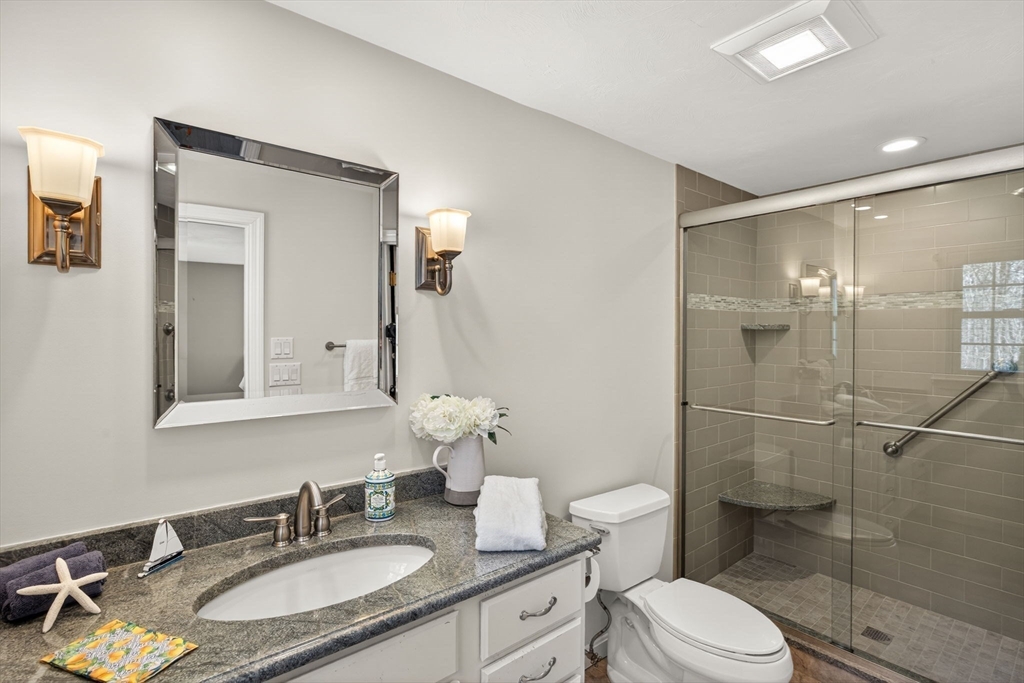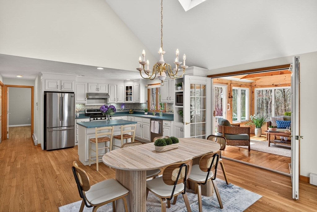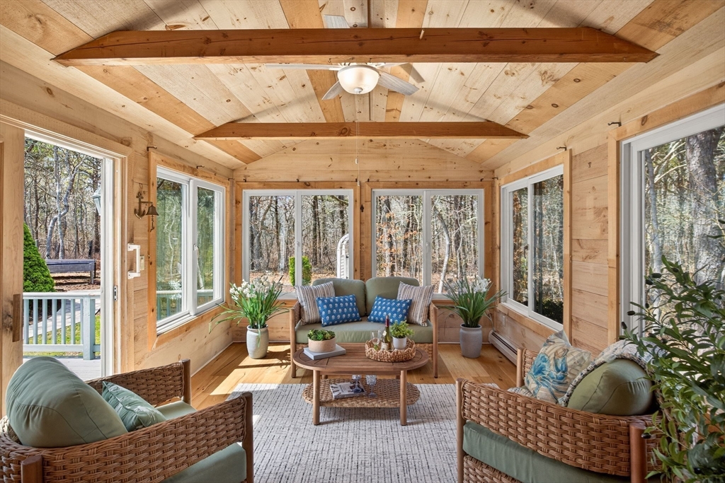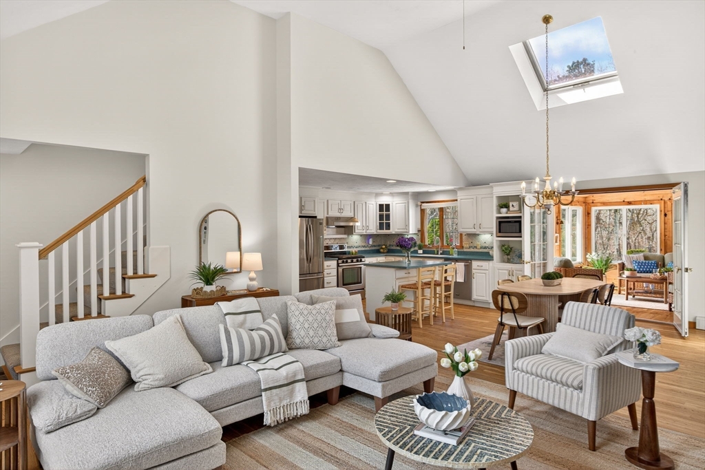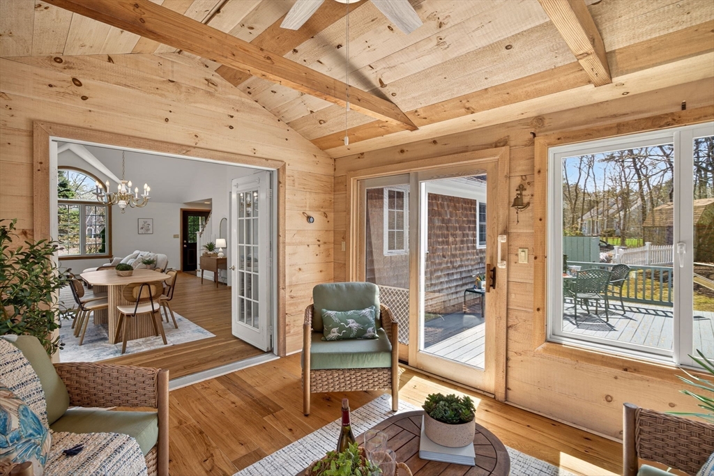 Welcome to this beautifully maintained Cape-style home set on nearly an acre of professionally landscaped grounds in a peaceful & lovely Harwich neighborhood. Offering 4 beds & 3 full baths, this property blends classic Cape Cod charm with modern open-concept living. Step inside to discover a sun-filled open floor plan featuring a spacious LR w fireplace, dining area, and inviting kitchen. Perfect for entertaining or everyday comfort. Thoughtfully designed w flexibility in mind, the home provides ample room for guests, with a full bed/bath/sitting area upstairs, along with home office space. Unfinished basement perfect for storage. Enjoy the best of coastal living outdoors w a private deck. A quintessential CC outdoor shower adds to the Cape experience after a day at the beach, while the glassed-in porch offers a serene space to relax & unwind. Also,1-car garage, shed & owned solar panels. Passing Title V. Nearby CC Rail Trail, Red River Beach, Buca's & shops. Ready for Summer '2026!
