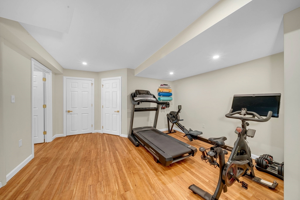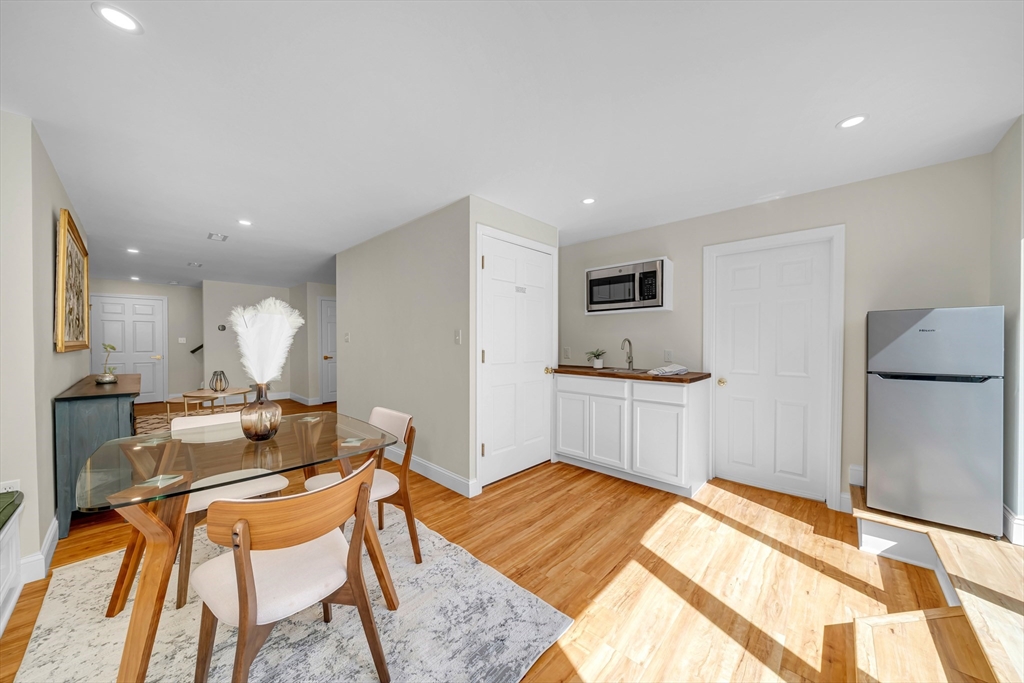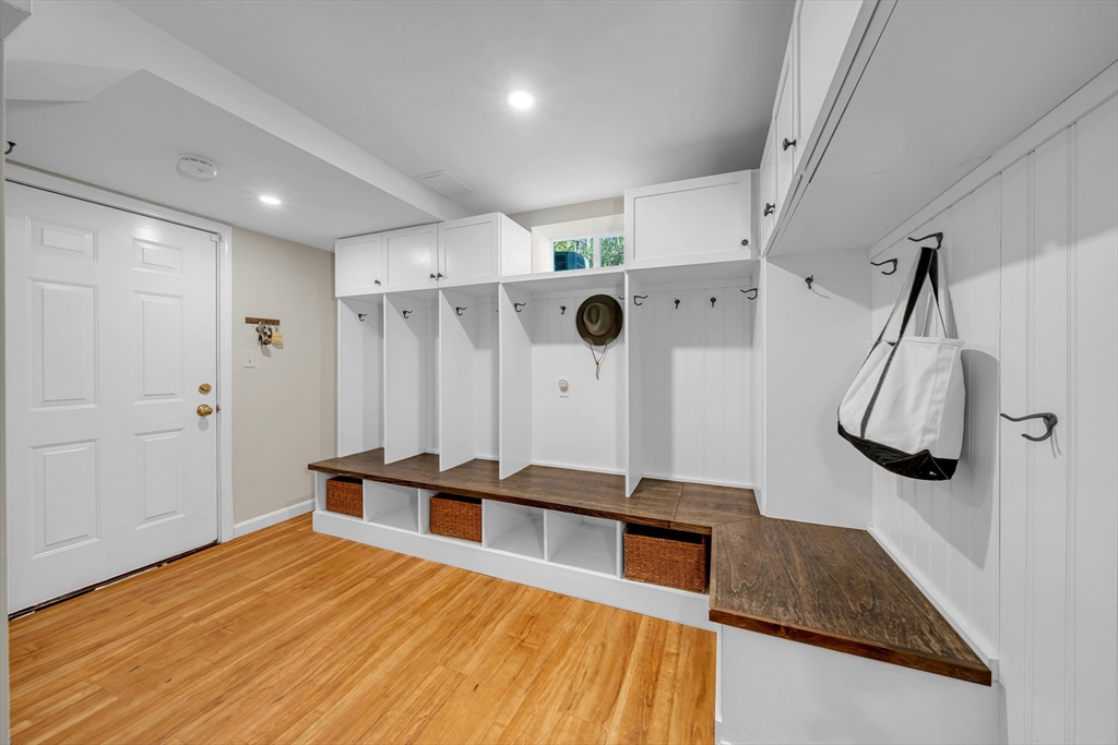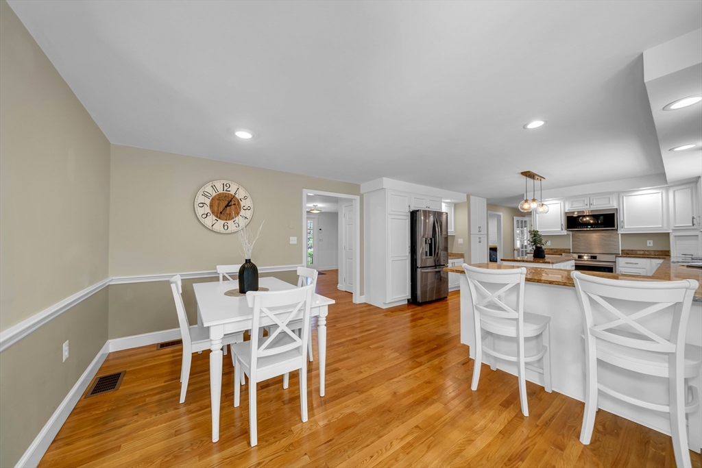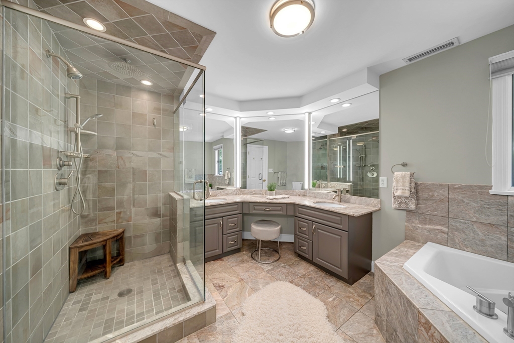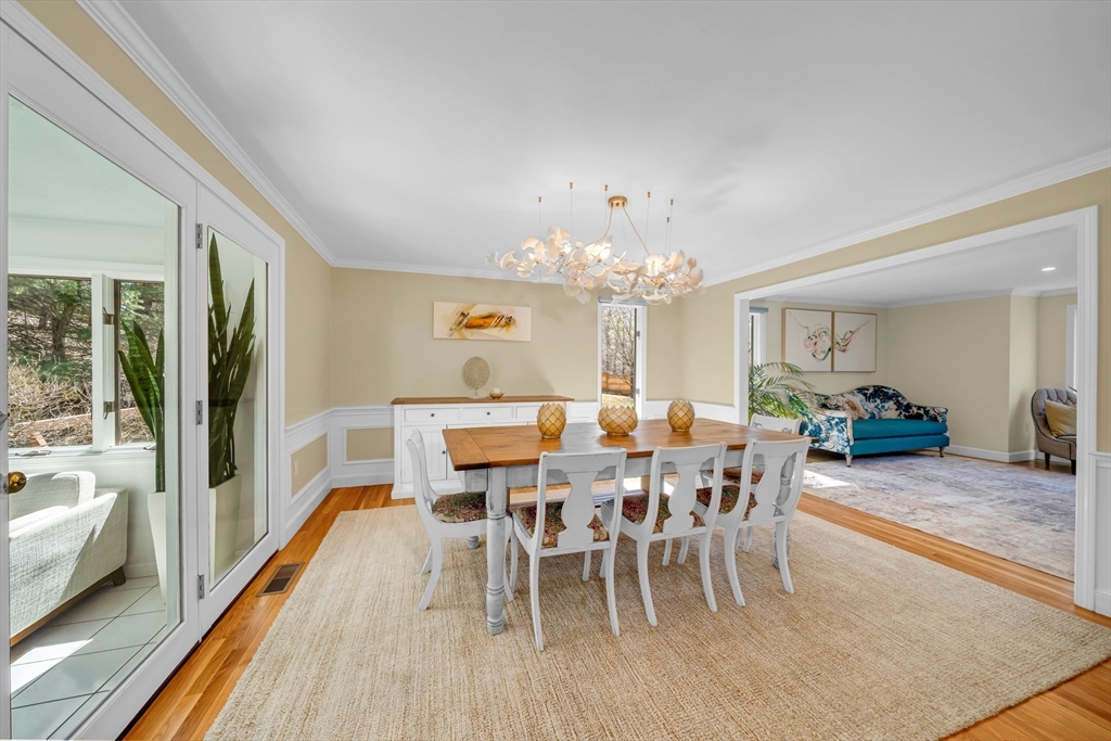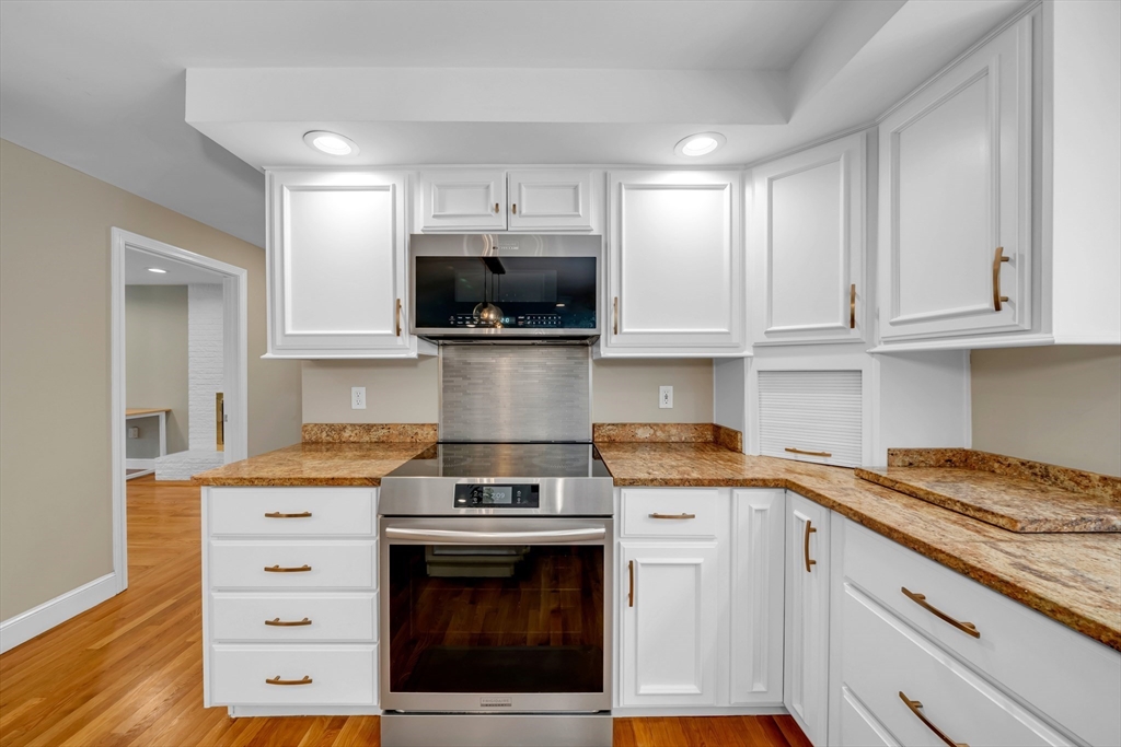 Extensively renovated 5-bed contemporary on a private acre in Andover with a residential elevator, owned solar array, and walk-out in-law or au pair suite, a rare combination at any price point. Set on a quiet cul-de-sac near Foster’s Pond. Vaulted beamed ceilings, skylights, stone fireplace with custom built-ins, and walls of windows define the great room. Updated kitchen with induction range and island opens to patio and gazebo. Sunroom, dining room, and den complete the main level. Four bedrooms upstairs include a primary suite with spa bath and soaking tub, one en-suite, and two sharing a full bath. Third floor adds a home office and guest room. Lower level includes in-law or au pair suite with kitchenette, bedroom, bath, private walk-out, plus mudroom and exercise area. Features include cedar privacy fence, fenced garden with raised beds, 3-car attached garage with EV charger and epoxy floors, detached 2-car garage, and owned 41-panel solar array transferring at no cost.