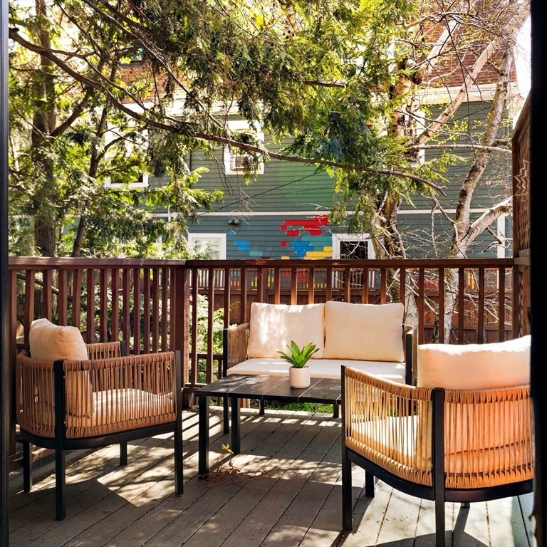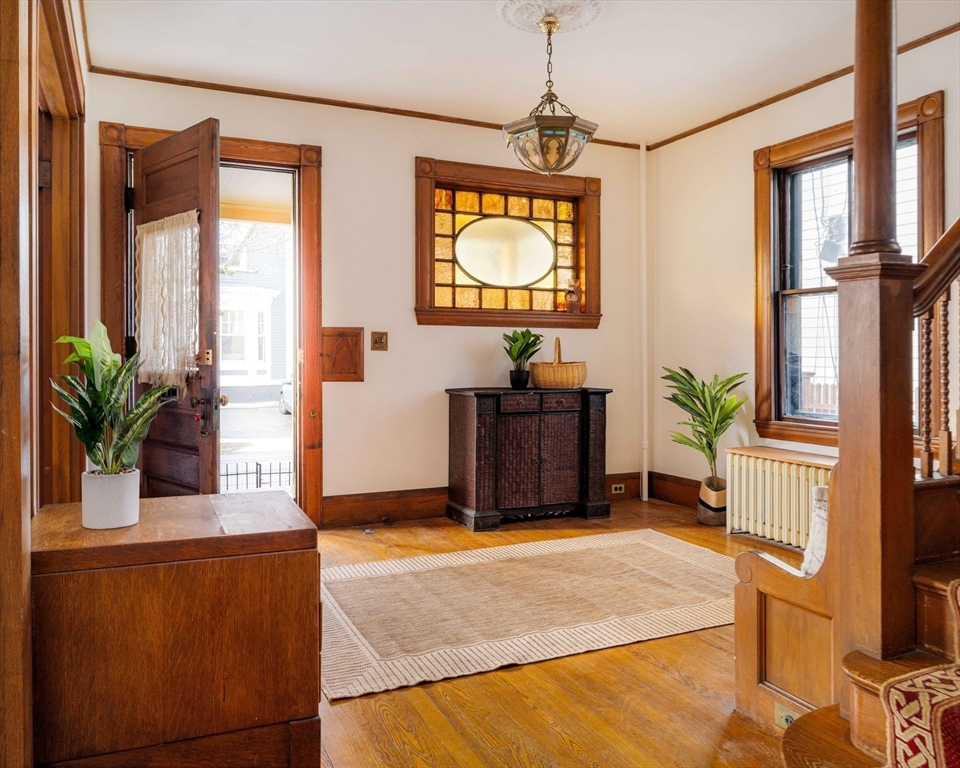 Romantic Queen Anne Victorian on a leafy street in desirable Cambridgeport. Close to MIT, Harvard, BU, Central Sq, Charles River, and Green & Red Lines. Southern exposure floods the home with natural light, while the corner lot and park across the street lend an open, airy feel. Original character abounds: HW floors, high ceilings, 2 working fireplaces, natural woodwork, stained glass windows, and period detail throughout. Flexible layout works beautifully as a 6 bed/3.5 bath single family or a 4 bed/2.5 bath plus 3rd-fl in-law suite featuring its own entrance. Renovated 1st-floor kitchen features inset cabinetry, marble countertops, and tile backsplash, opening to a 2-story deck + fenced yard, perfect for entertaining. A double living room, dining room, and reception area add to the appeal. High-ceiling basement offers real expansion potential. 1 off-street parking space included. Opportunities to own a home with this much history, flexibility, and upside don't come around often!