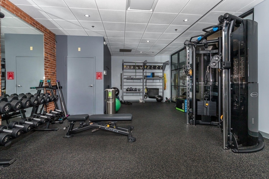Looking for an amazing condo? Here it is! Move-in ready unit at Baker Square offering 1,028 sq. ft. of stylish, updated living space. The renovated kitchen features stainless steel appliances, granite countertops, and classic shaker cabinets. A refreshed bathroom adds modern appeal, while the open-concept living and dining area boasts hardwood floors and an eye-catching exposed brick accent wall. The spacious primary bedroom includes a large closet, and the second bedroom offers flexibility for guests or a home office. Enjoy the convenience of in-unit laundry with a newer smart washer/dryer combo. Residents benefit from resort-style amenities including an indoor heated lap pool, sauna, hot tub, fitness center, and a riverside terrace with seating, gas grills, and a fire pit. Direct access to the Neponset Reservation, walkway, and bikeway enhances outdoor living. Ideally located near Lower Mills and Milton Wharf with dining, shopping, and MBTA - all just a stone's throw away...
