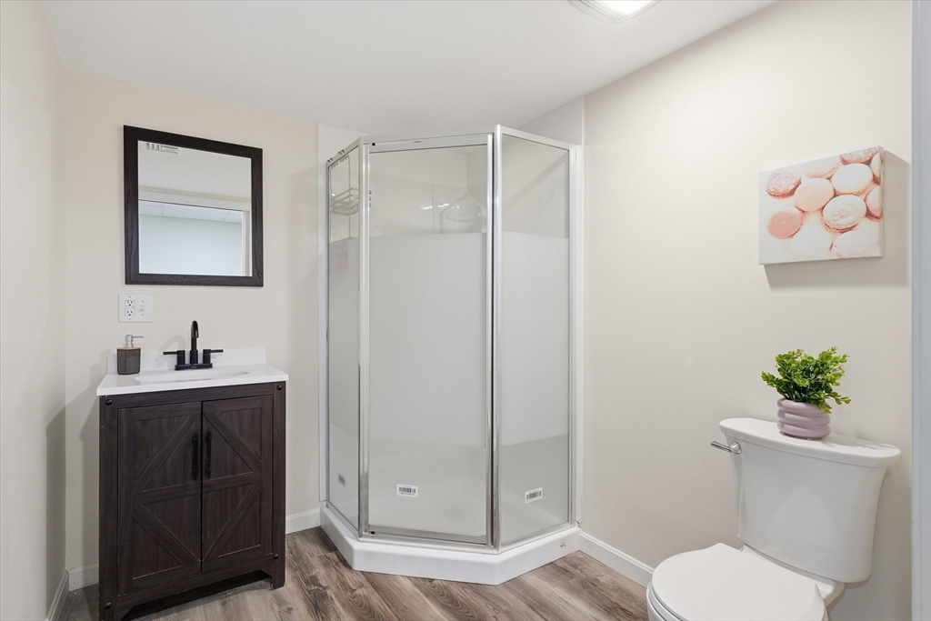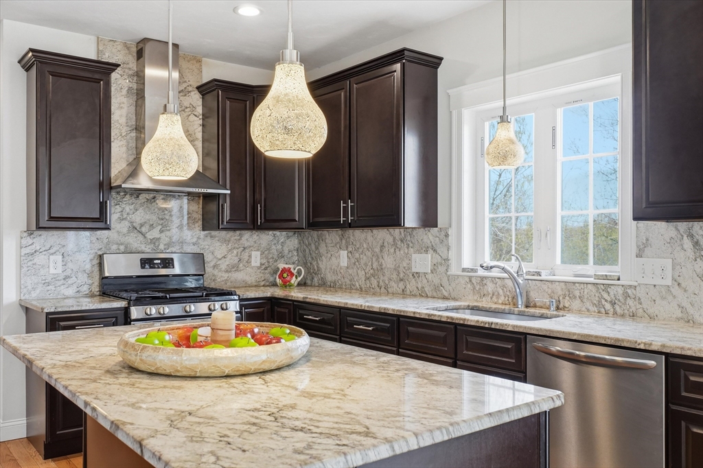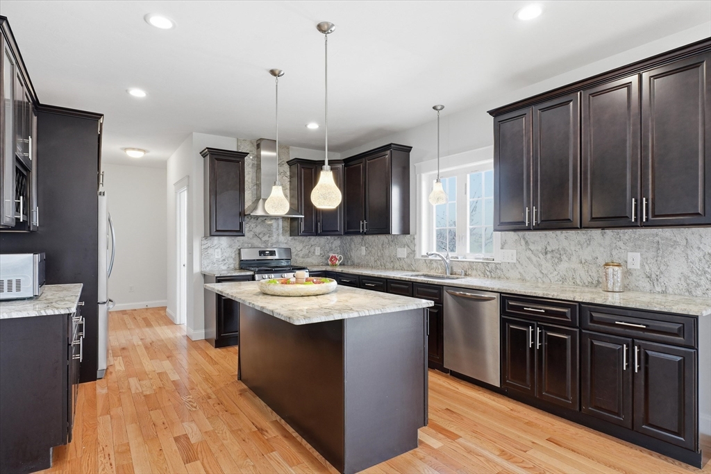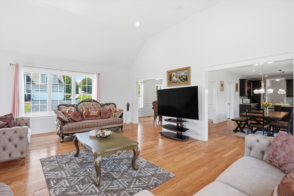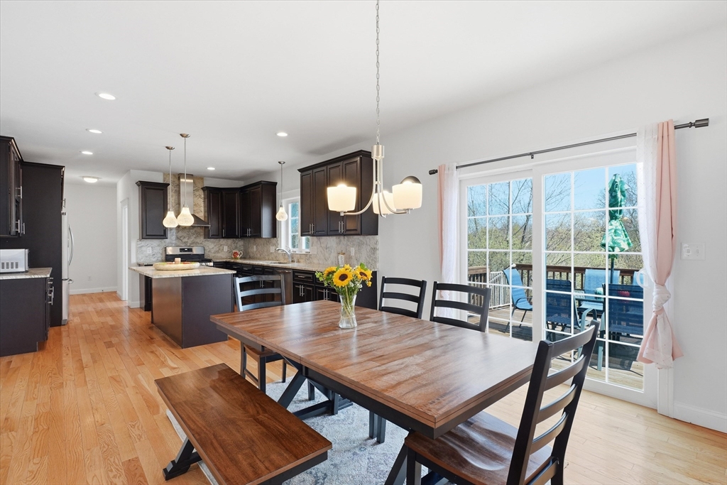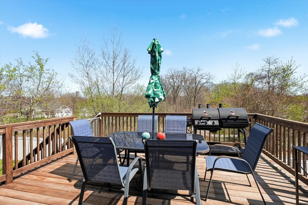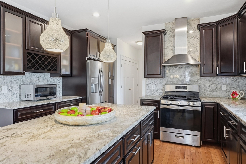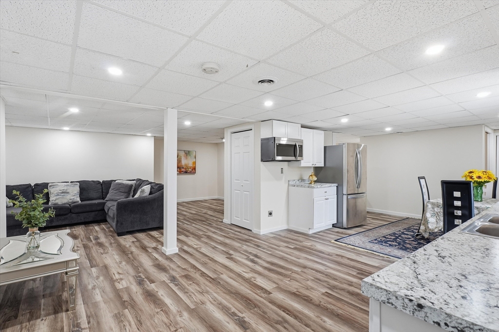 This young contemporary Colonial with over 4,400 sq. ft. of thoughtfully designed living space, is ready to welcome you home. The chef’s kitchen featuring sleek granite countertops, stainless steel appliances & a spacious dining area that flows seamlessly onto a private deck—perfect for indoor-outdoor living. The grand living room impresses with soaring cathedral ceilings, abundant natural light, cozy gas fireplace; creating an inviting space for both relaxing & entertaining. A home office provides the ideal work-from-home setup. The luxurious primary suite boasts dual walk-in closets & a spa-like en-suite bath. The walk-out finished basement adds exceptional versatility, offering 2 additional bedrooms, kitchenette & full bath with a standing shower—ideal for extended family or guests. Enjoy the outdoors in a fenced-in backyard with plenty of space for recreation. Additional highlights include a two-car garage, dual driveways for ample parking, and energy-efficient solar panels.