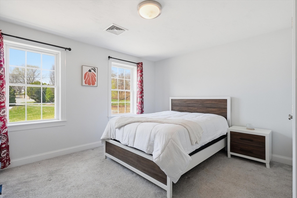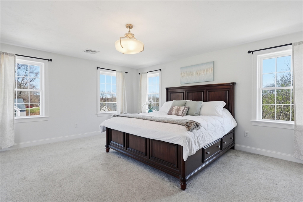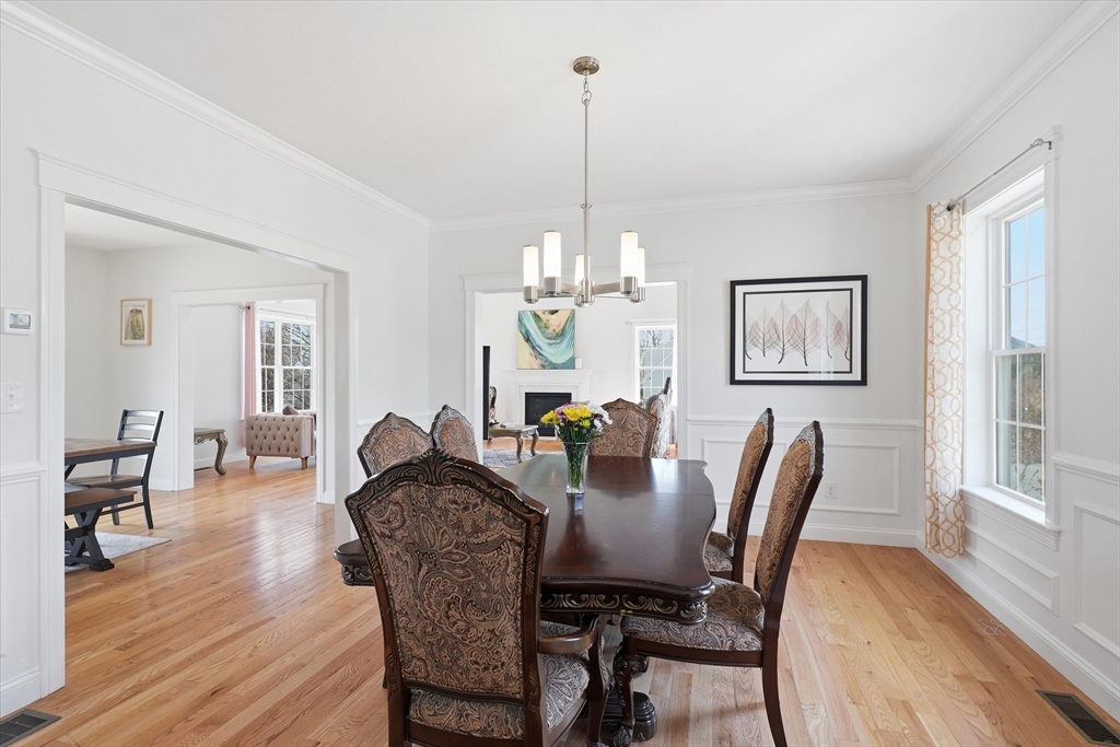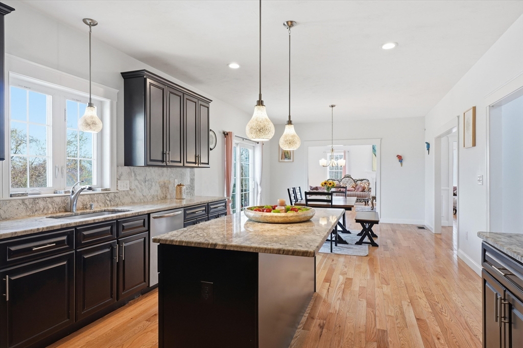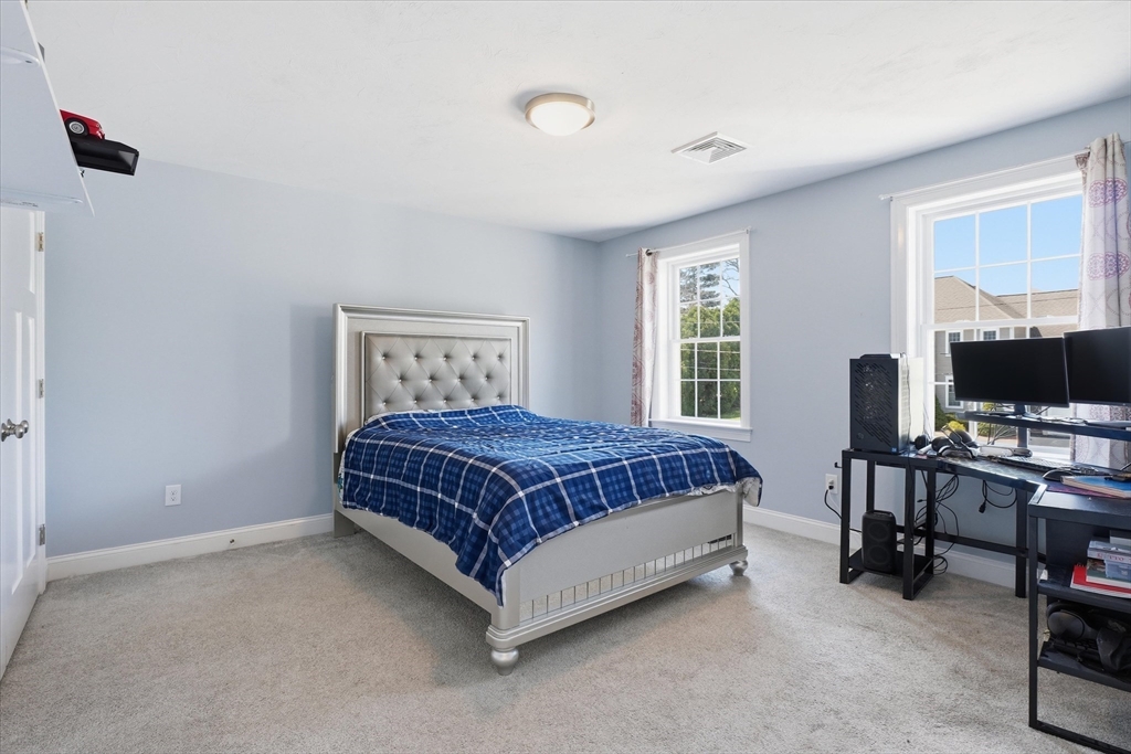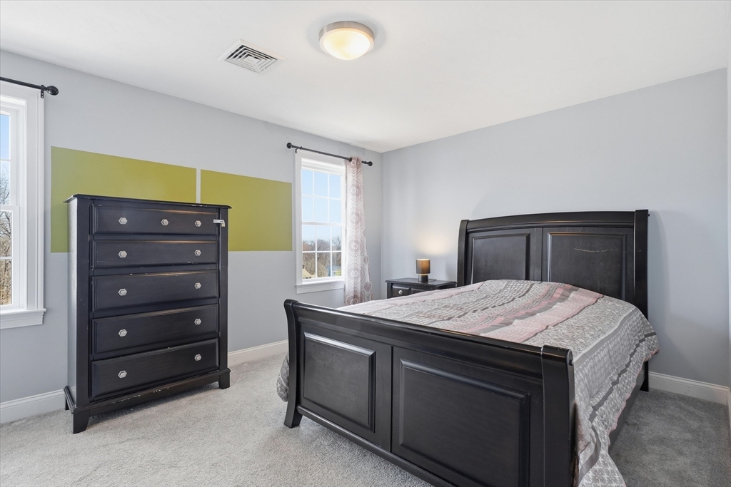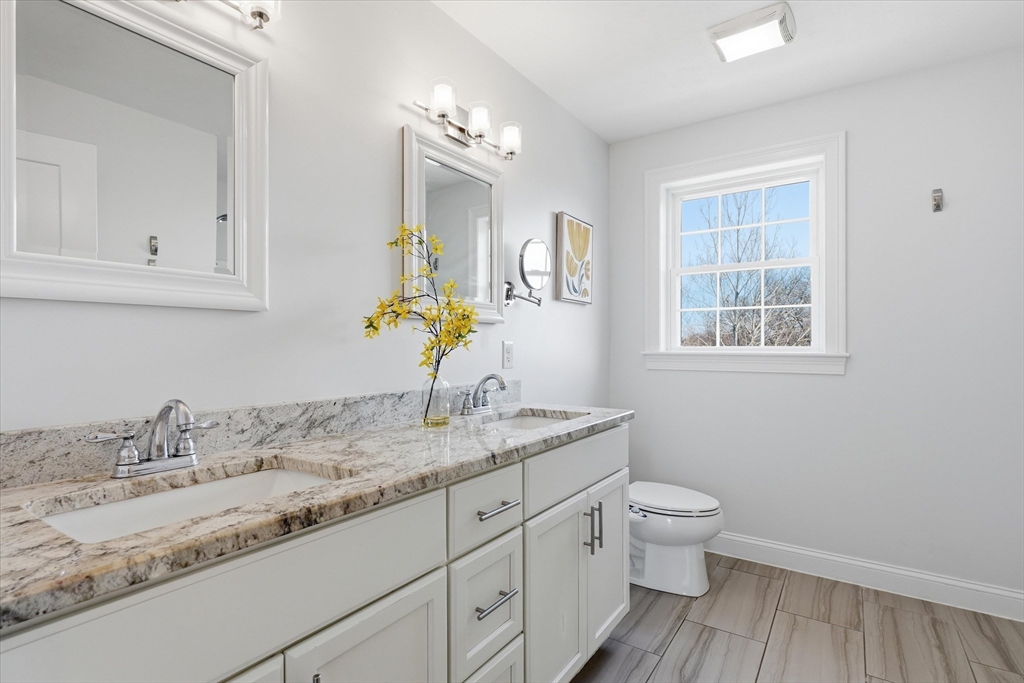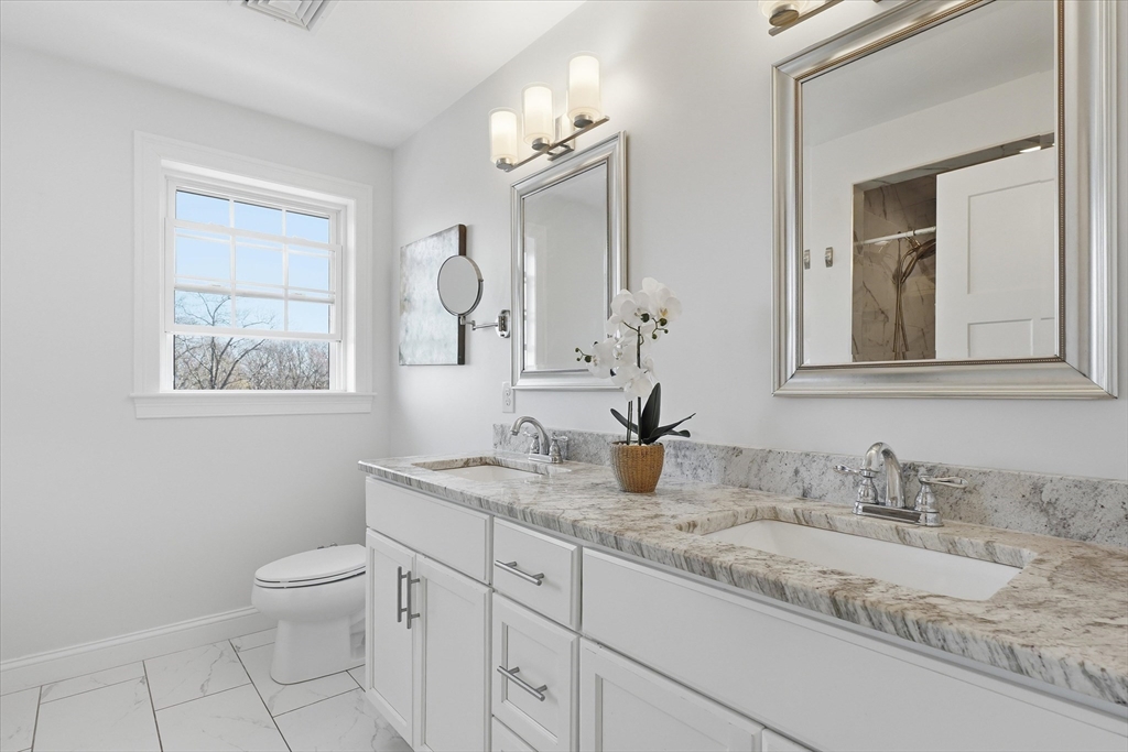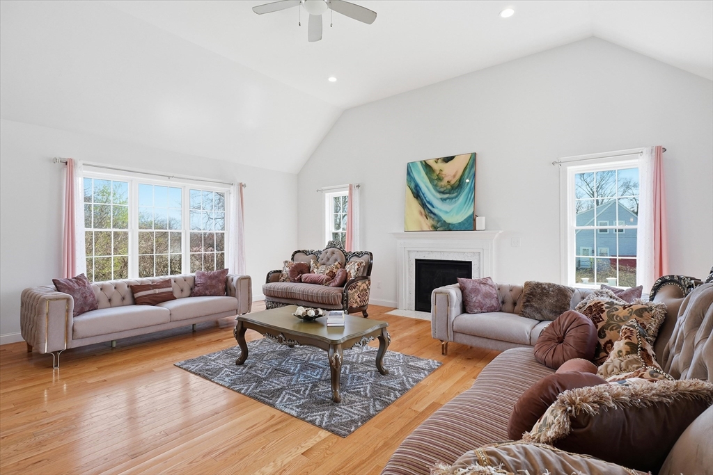 This young contemporary Colonial with over 4,400 sq. ft. of thoughtfully designed living space, is ready to welcome you home. The chef’s kitchen featuring sleek granite countertops, stainless steel appliances & a spacious dining area that flows seamlessly onto a private deck—perfect for indoor-outdoor living. The grand living room impresses with soaring cathedral ceilings, abundant natural light, cozy gas fireplace; creating an inviting space for both relaxing & entertaining. A home office provides the ideal work-from-home setup. The luxurious primary suite boasts dual walk-in closets & a spa-like en-suite bath. The walk-out finished basement adds exceptional versatility, offering 2 additional bedrooms, kitchenette & full bath with a standing shower—ideal for extended family or guests. Enjoy the outdoors in a fenced-in backyard with plenty of space for recreation. Additional highlights include a two-car garage, dual driveways for ample parking, and energy-efficient solar panels.