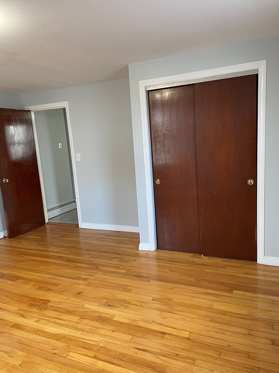 First floor 4 room unit in well maintained Waltham multi family one block off Moody Street. Great location, walk to buses and train with easy access to major commuter roads. Renovated unit featuring hardwood floors (bedrooms & living room) and newer replacement windows throughout. Tile flooring in bathroom and kitchen. Eat in Kitchen has plenty of cabinet and counter space and was remodeled a few years ago. Gas heat & cooking (not included in rent). One very large bedroom and one average sized bedroom. Full tub/shower bathroom. ONE car off street parking; cat maybe allowed. One year lease. Available NOW or May 1. Must have good verifiable income and credit.