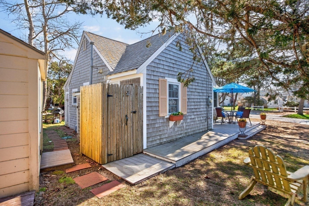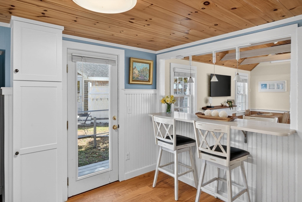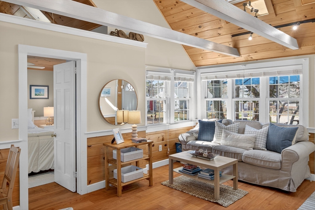Just one minute to a sandy Nantucket Sound beach, this Turn-Key 2BR, 1.5BA cottage offers the perfect blend of coastal charm and modern comfort. Bright and inviting, the open floor plan features vaulted ceilings, skylights, an abundance of natural light throughout. The spacious living room has a cozy fireplace, cathedral ceiling, and a versatile loft area.The updated kitchen is equipped with granite countertops, white appliances,a dishwasher, breakfast bar, and the convenience of in-unit washer and dryer. Some upgrades include newer windows and roof, along with beautiful wood ceilings and durable laminate flooring that enhances the home's warmth. Step outside to enjoy two decks and a generous yard--perfect for relaxing or entertaining after a day at the beach. Ideally located near a variety of popular dining spots, this property offers both lifestyle and convenience.With a strong rental history and being offered mostly furnished, exceptional opportunity for a vacation or investment.