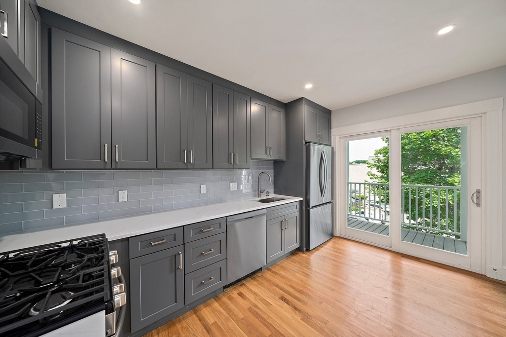 Top Floor unit located at 32 Gibson Street. Beautifully renovated double bow new condo conversion blending modern finishes with timeless character throughout. Brand new and fully appliances state of the art kitchen with loads of cabinet space, and access to private rear deck. Spacious unit featuring three ample bedrooms, formal living and dining rooms, kitchen and 1.5baths and in unit laundry. Large shared common yard space and privately deeded front and rear porches as well as basement storage complete this unit. Conveniently located in the heart of Dorchester, with easy access to Doherty-Gibson Park, T station, expressway, local shops and restaurants.