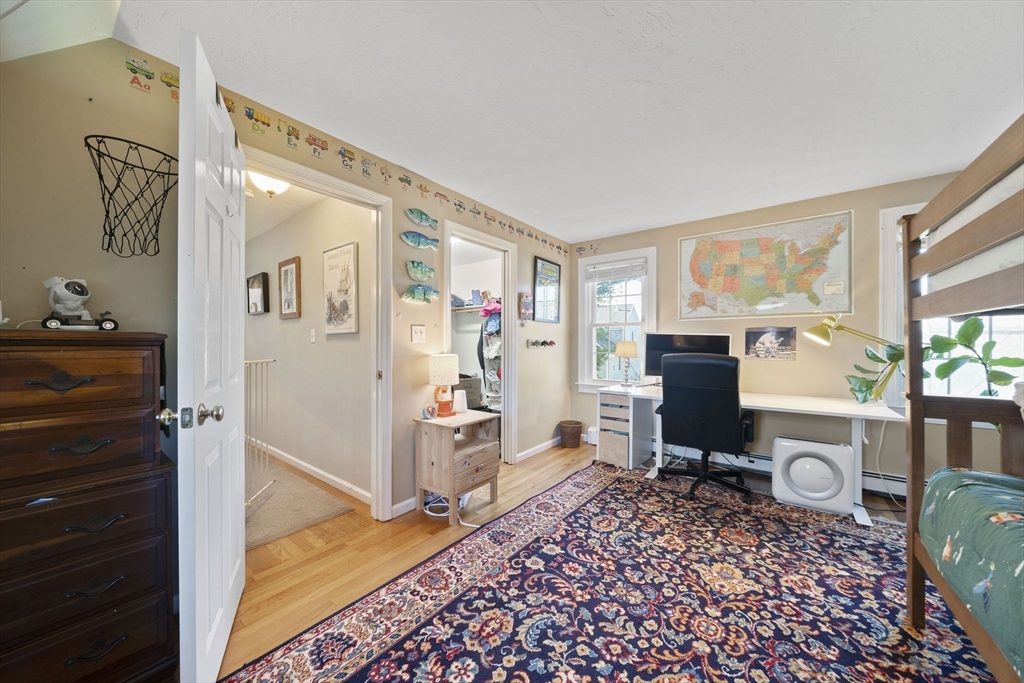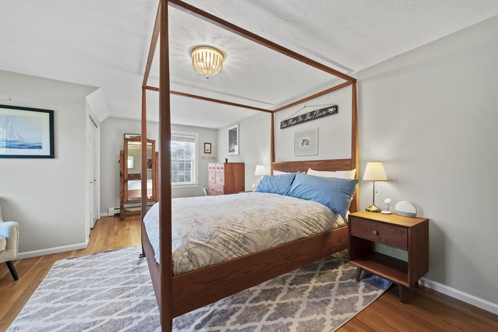 Beautiful Captain’s Cape nestled on a pretty tree lined cul-de-sac! Set in an established neighborhood abutting conservation land and a golf club, this well-maintained home offers a warm and welcoming feel from the moment you arrive. Bright and spacious, boasting gleaming hardwood floors in almost every room, a wood burning fireplace in the living room, and a sunny kitchen with off-white cabinetry, granite counter, stainless appliances, and a slider that leads to a deck and overlooks the fenced backyard. A front-to-back family room with crown molding and built-in bookcases is conveniently set off the kitchen area and currently doubles as a playroom/office. The second floor has three bedrooms, the primary bedroom with two closets, and another bedroom with a walk-in closet. The lower level offers a large, finished room perfect for a TV or playroom, extra storage space, and laundry area. Conveniently located close to Marshfield Center, schools, golf clubs, beaches, and the highway.