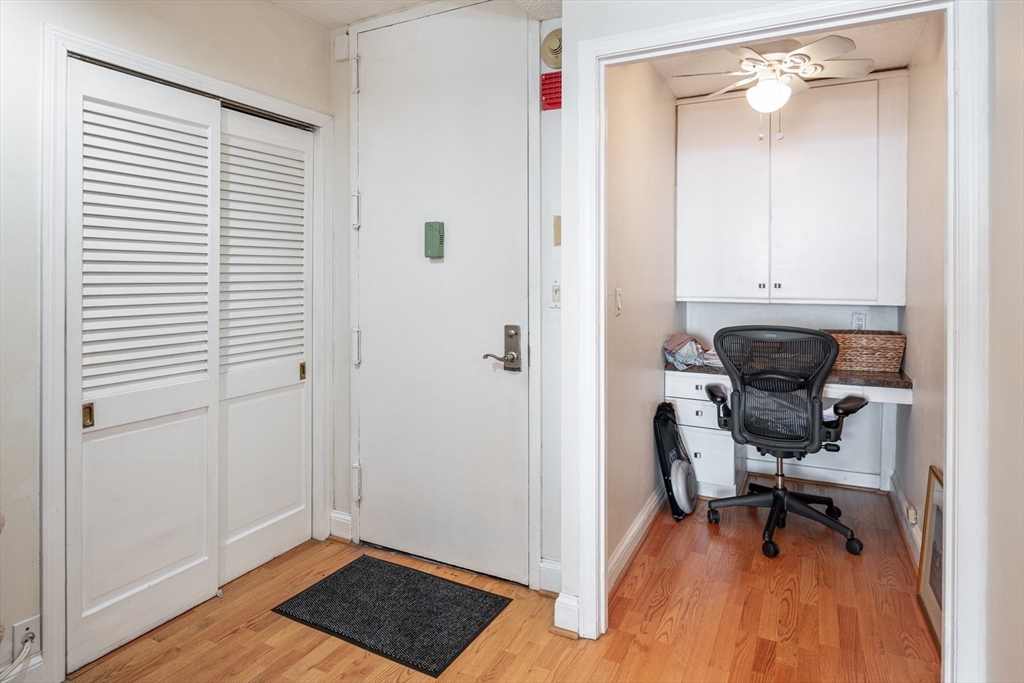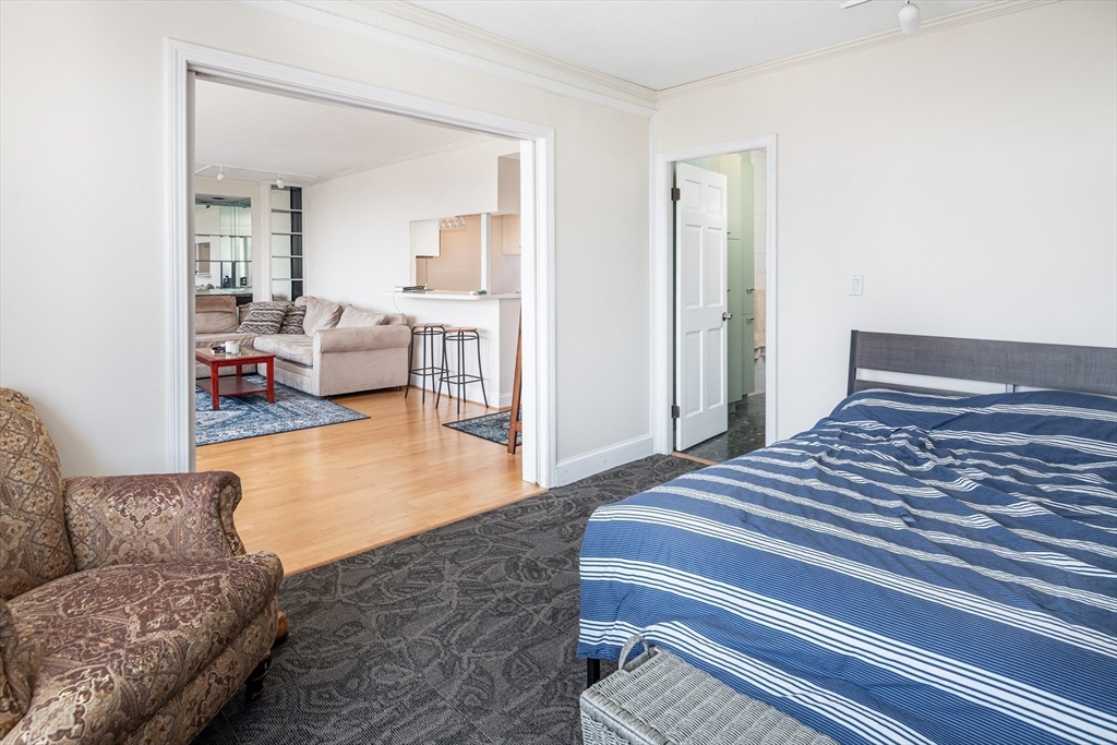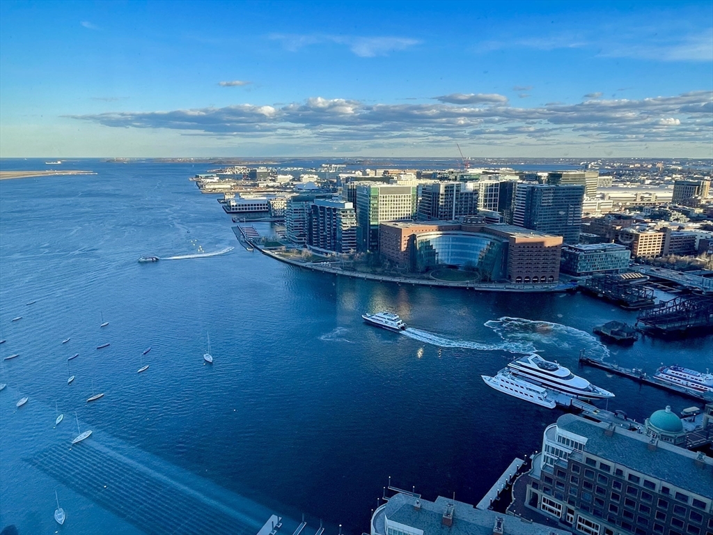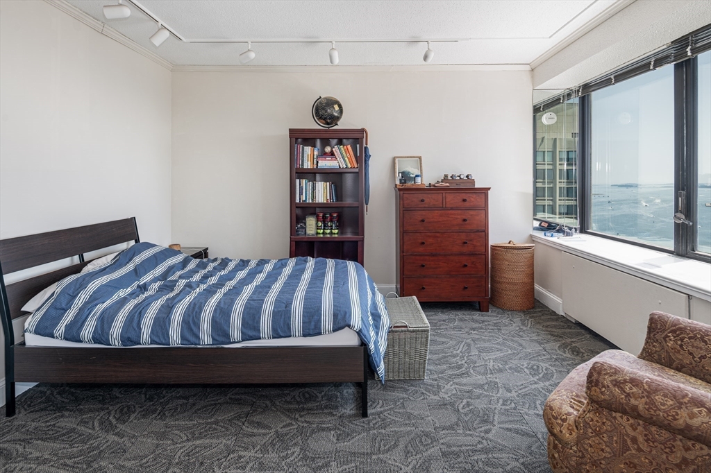 Enjoy the absolute best harbor views from this renovated one bedroom home located on the 40th floor of Harbor Towers. Formal entry foyer with built-in desk and huge walk-in closet. Spacious living/dining room with hardwood floors, custom built-in cabinets & shelving, oversized windows, lots of sun and amazing water views!!! Beautifully renovated open kitchen with stainless steel appliances, breakfast bar, hardwood floors and gas cooking. The sun-filled bedroom has glass "pocket" sliding doors open to the living room, double windows and water views. Beautifully renovated full bath. Harbor Towers amenities include 24 concierge, outdoor pool, common yard, security and rental parking. Includes heat, hot water, ac & gas cooking.