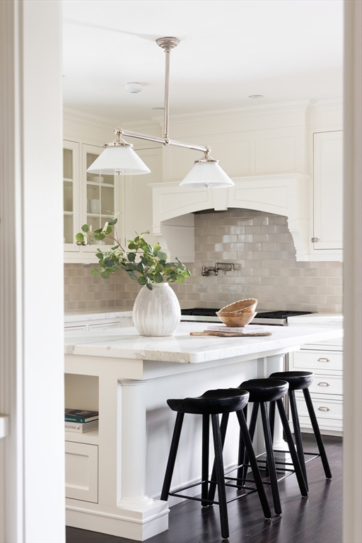 Stunning updated classic colonial set prominently in the coveted Munroe Hill neighborhood. Fabulous at every turn with a grand foyer, rich hardwood floors, exquisite molding-trim work, and a floor plan that works for today's lifestyle. The sparkling eat in kitchen has crisp white cabinetry and marble counters. Adjacent the fireplaced family room is ideal with a cozy window seat- the perfect spot for relaxing. The grand formal living room also boasts a fireplace and the dining room is centered by a custom built-in china cabinet. Working from home is a pleasure from the light filled sunroom/office with walls of windows. The upper levels host six expansive bedrooms including a resort like primary suite with soaring ceilings, a spa like private bath and exercise room. Hours of entertainment in the home theater and playroom! Outdoor living at its best with the expansive yard that is level and private. All this within walking distance to the town center and high school!