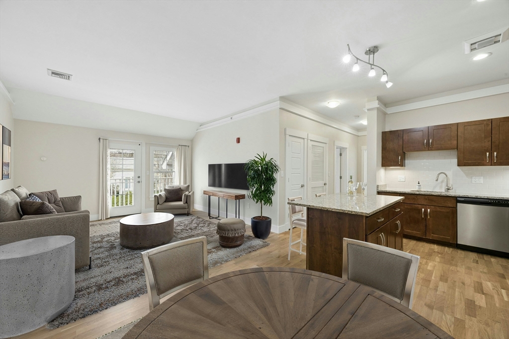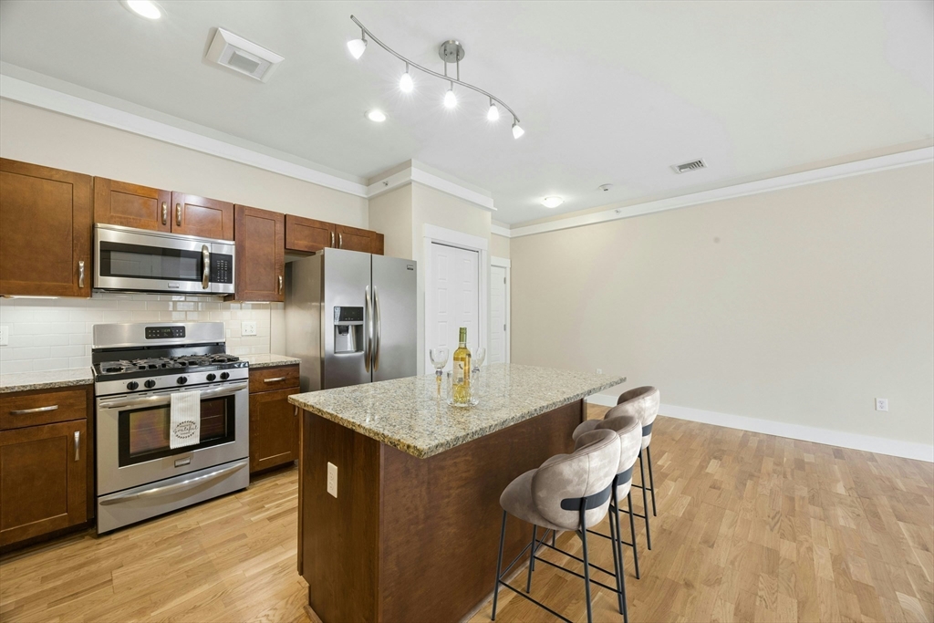 Abutting Minuteman Bike Path and Narrow Gauge Rail Trail, this lovely 2 bedroom / 2 full bath condominium is conveniently located to MBTA #62 bus to Alewife/Boston, shopping, town center, middle and high schools and major commuter routes. Freshly painted interior, refinished hardwood floors and newly installed carpeting in the bedrooms enhance this must see 2nd floor unit. In addition it offers an open floor plan with 9' ceilings, a fully applianced kitchen with a generous center island, granite countertops, under cabinet lighting and stainless steel appliances. The spacious primary suite with full bath and large walk-in-closet works in concert with central air conditioning, an in-unit washer and dryer, private balcony off the living room, 2 deeded parking spaces (37 & 38) and onsite storage for bikes. This condominium is the ideal place to call home.