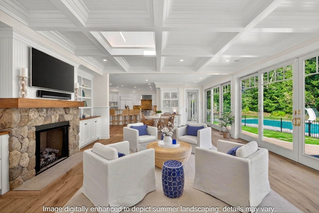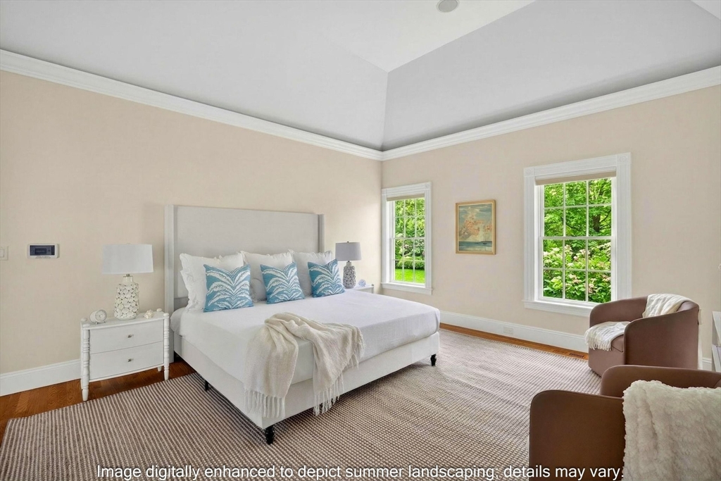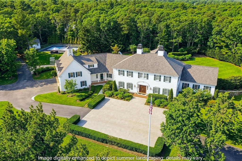 Set on 3.4 acres of meticulously landscaped grounds in Osterville's coveted Seapuit neighborhood, this magnificent Colonial estate offers the best of modern living. The 5-bedroom residence showcases architectural splendor and attention to detail throughout, with expansive outdoor living spaces. The grounds boast rolling lawns, a sports court, a swimming pool, and a poolside guest house with a kitchenette and 2 bedrooms. On the main level of the home, an eat-in chef's kitchen opens to a great room with a stone fireplace and glass doors that connect to the pool area. The first-floor primary suite enjoys a sumptuous bathroom and access to a private patio overlooking the gardens. On the second level, 4 well-appointed guest bedrooms provide refined accommodations for family and guests, with additional bonus space. Ideal for the car collector, the home is equipped with an attached 3-car garage and a drive-in lower level. Located minutes from everything Osterville has to offer.