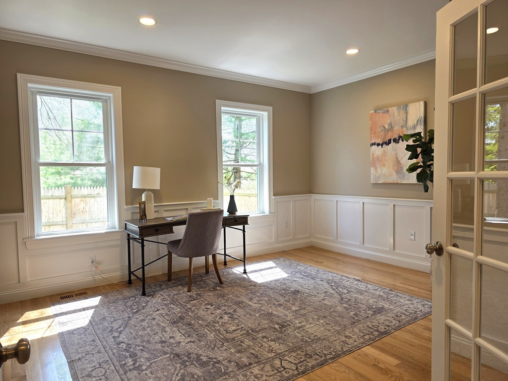 Welcome to 18 Robinson Road — a gracious new construction Colonial set on an expansive, beautifully landscaped lot in Lexington's coveted Turning Mill neighborhood. 5+ bedrooms, 6.5 baths, and four finished levels of light-filled space designed for the way families truly live. Formal living and dining rooms flow into a dramatic cathedral-ceiling family room. The chef's kitchen is appointed with GE Monogram appliances, quartz counters, and a butler's pantry complete with wet bar. A first-floor guest suite with full bath offers a gracious private retreat for visitors or a serene home office. The primary suite features a spa-like bath and spacious walk-in closet; all additional bedrooms enjoy en-suite or adjacent baths. The finished third floor and lower level deliver a playroom, fitness center, and fully furnished home theater! An exceptional yard, abundant natural light, and a setting just steps (5 min walk) from Estabrook School. Built for a lifetime of gracious Lexington living