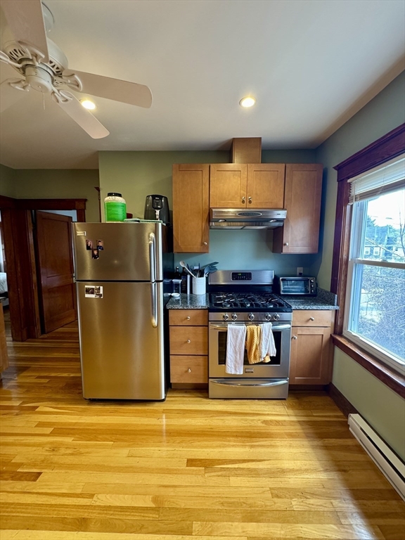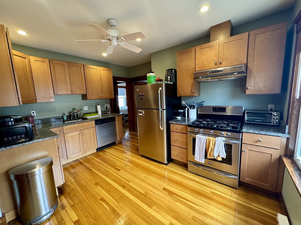 Updated 2nd-floor apartment in a prime Roslindale location! This spacious unit offers 2+ bedrooms, plus a bonus room perfect for a small bedroom or home office.The updated kitchen features stainless steel appliances, granite countertops, ample cabinet space and in-unit laundry. Large living room and dining room with original built-in hutch. Enjoy off-street parking, extra basement storage and a private shared yard. Relax on your private front and back porches, and take advantage of the convenient location—just minutes to commuter rail stops, Roslindale Square, the Longwood Medical Area, the Arboretum, and more.