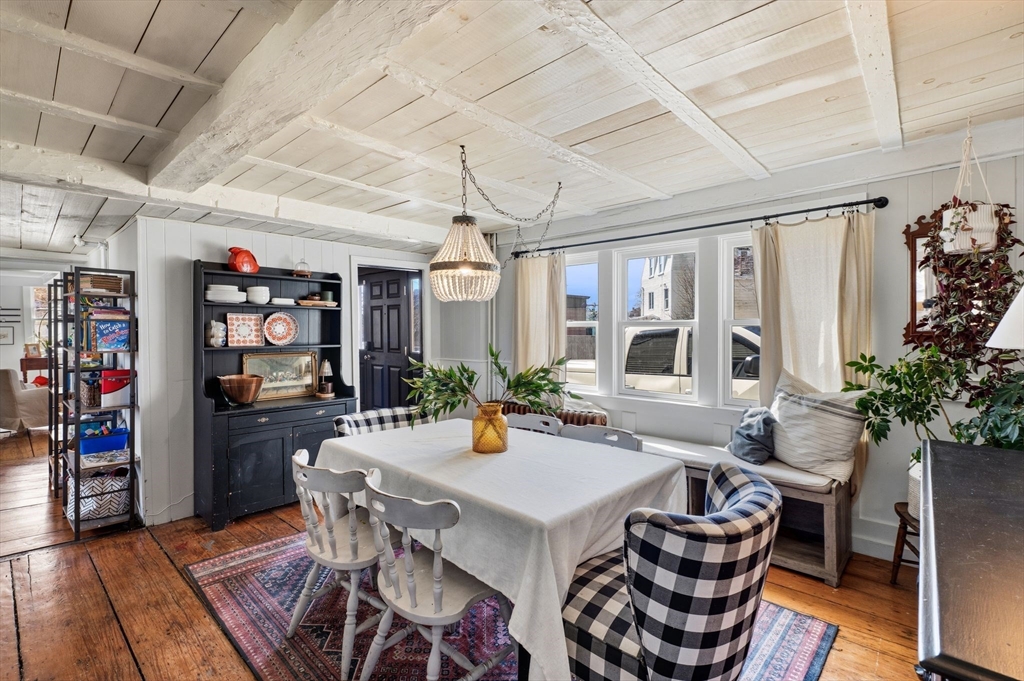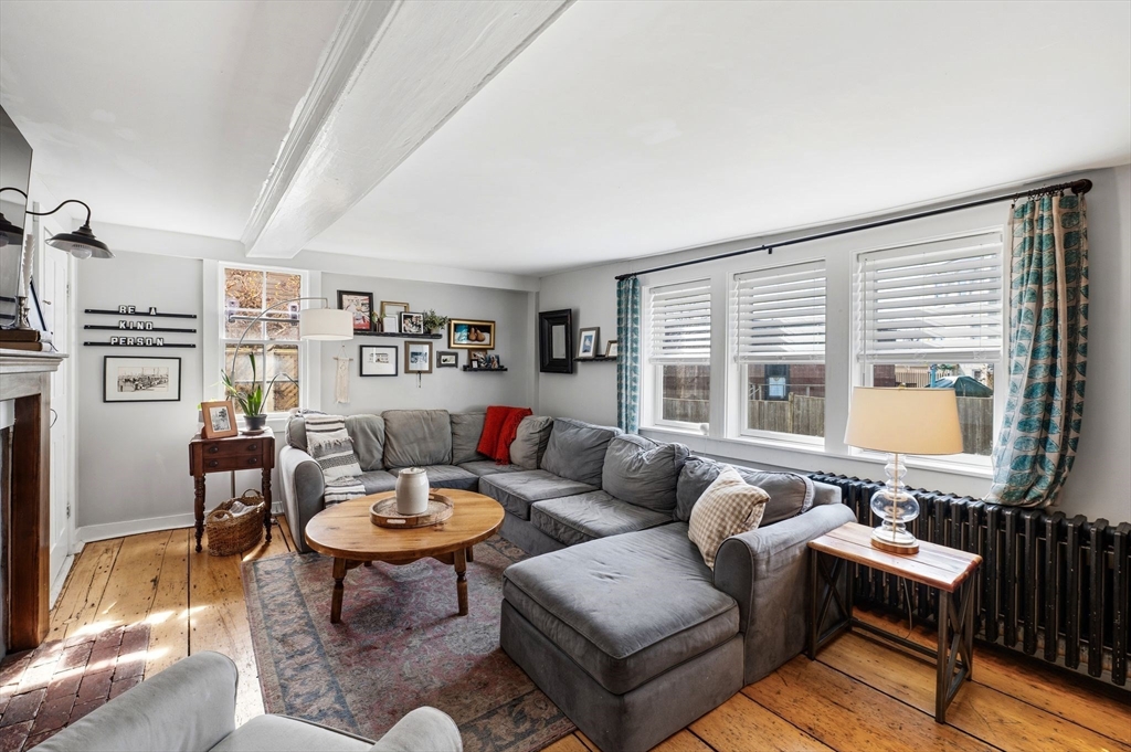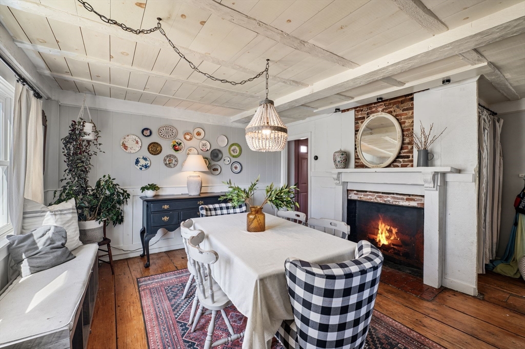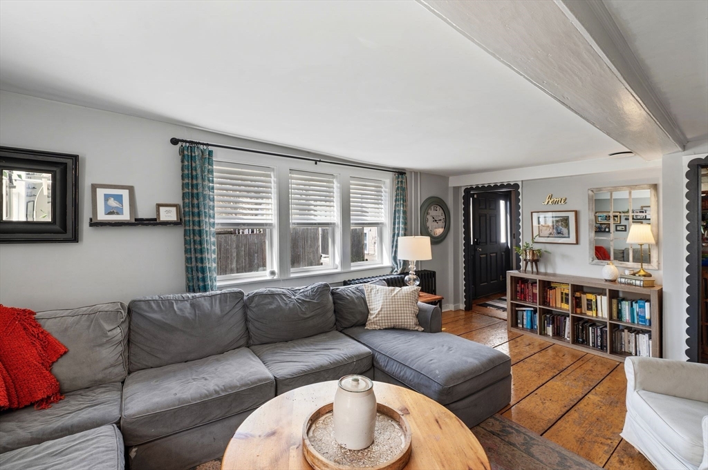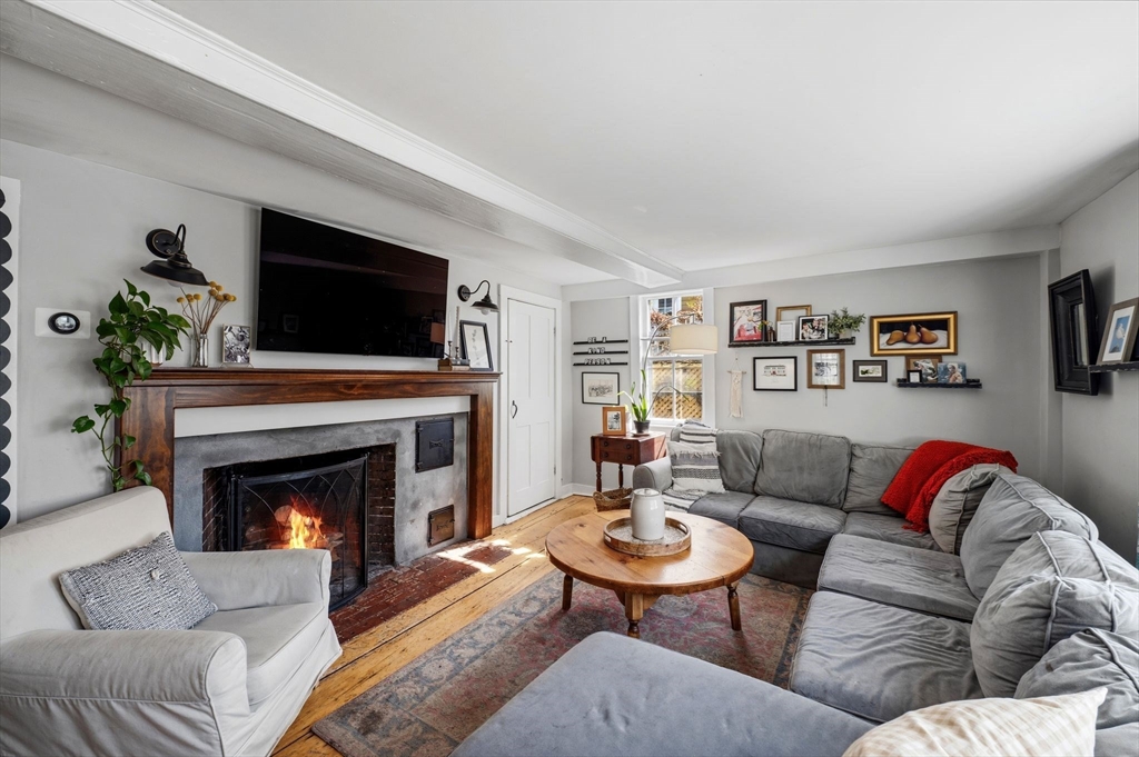 This antique post-and-beam home is full of character, featuring wide pine floors, exposed beams, and brick throughout. It is warm and inviting, with details that reflect its historic roots. The first floor includes a living room, a kitchen with lovely natural light, and a separate dining room. There is also a flexible space with its own entrance, perfect for a guest room or home office. On the second floor, you will find the primary suite with its own fireplace and full bath, along with two additional bedrooms and a 2nd full bath. The third floor offers a walk-up attic. In the backyard, there is a private patio overlooking a level, fenced-in yard with perennial plantings and an apple tree. The property was recently confirmed as a two-family, permitted in 1986, per the Gloucester Building Department. Its location, close to downtown Gloucester, beaches, parks, and the commuter train, makes this home a must-see. First showings will be at open house on Saturday at 12-1:30pm.