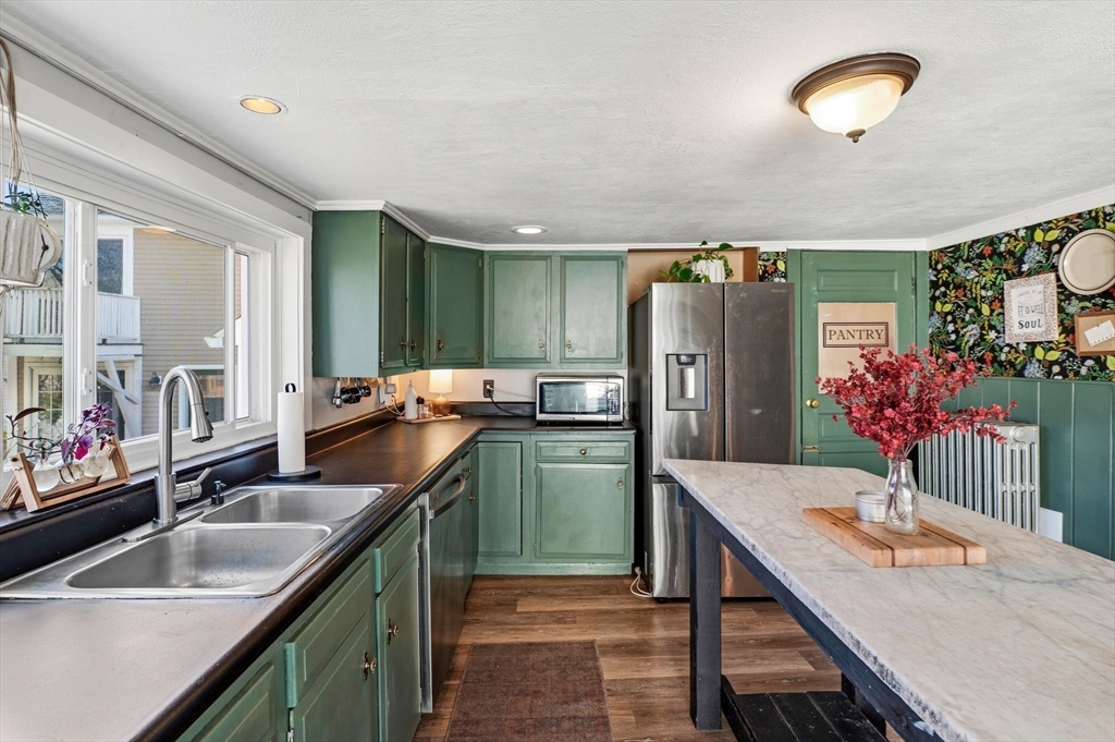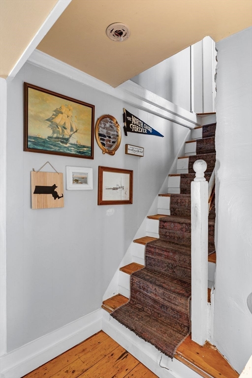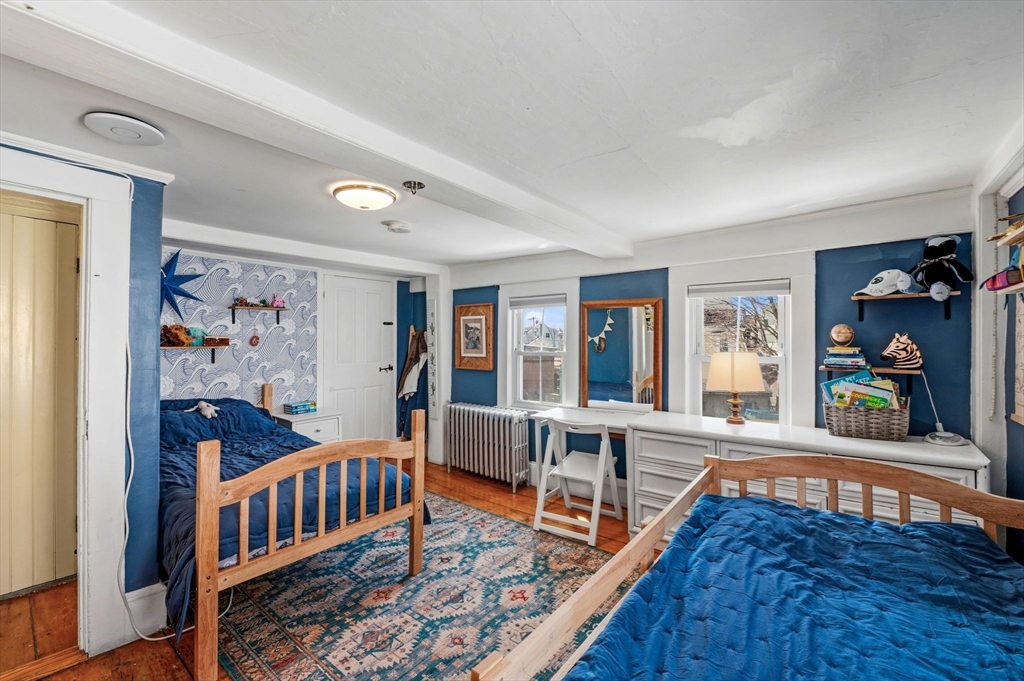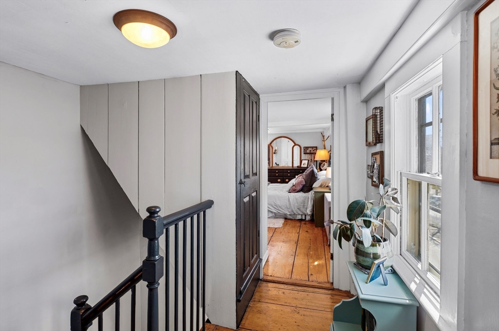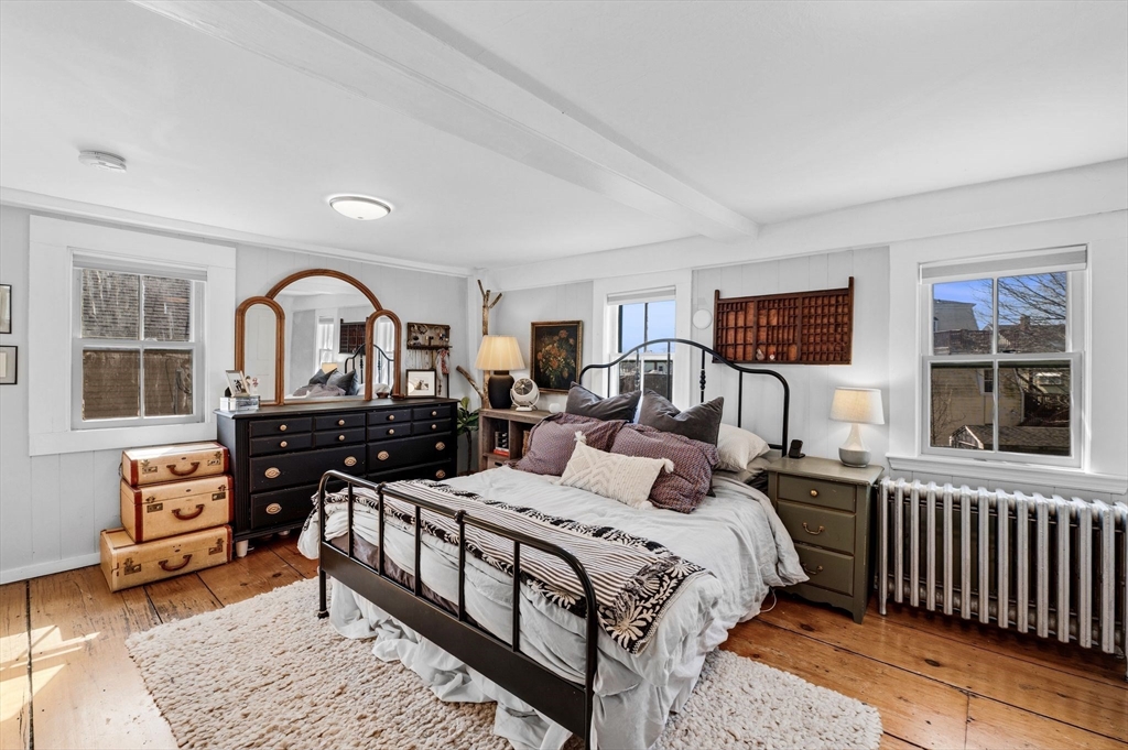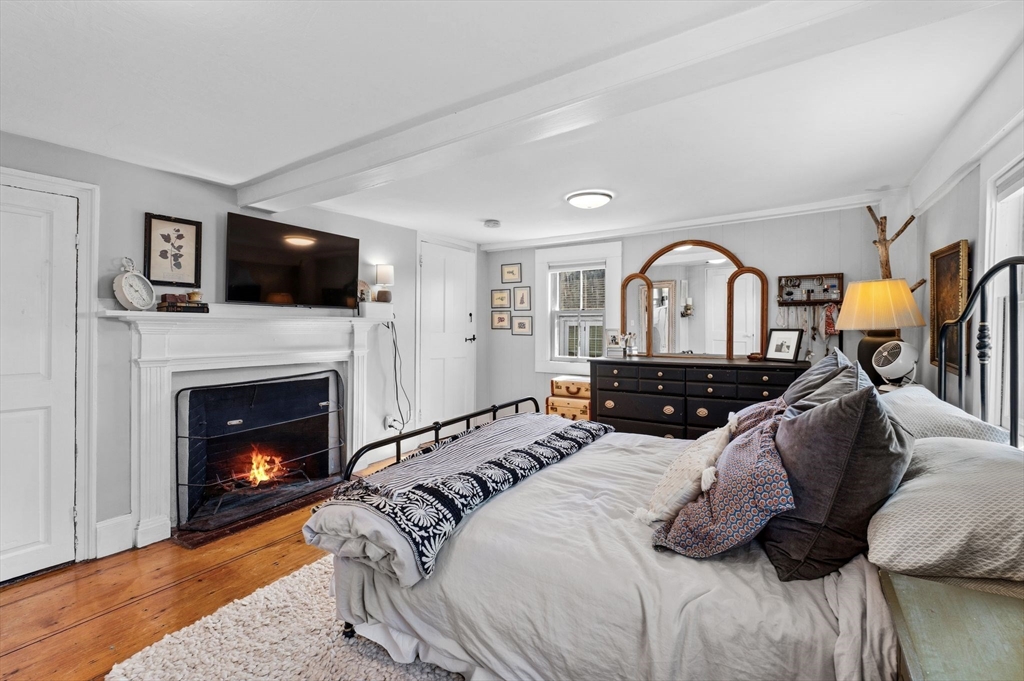 This antique post-and-beam home is full of character, featuring wide pine floors, exposed beams, and brick throughout. It is warm and inviting, with details that reflect its historic roots. The first floor includes a living room, a kitchen with lovely natural light, and a separate dining room. There is also a flexible space with its own entrance, perfect for a guest room or home office. On the second floor, you will find the primary suite with its own fireplace and full bath, along with two additional bedrooms and a 2nd full bath. The third floor offers a walk-up attic. In the backyard, there is a private patio overlooking a level, fenced-in yard with perennial plantings and an apple tree. The property was recently confirmed as a two-family, permitted in 1986, per the Gloucester Building Department. Its location, close to downtown Gloucester, beaches, parks, and the commuter train, makes this home a must-see. First showings will be at open house on Saturday at 12-1:30pm.