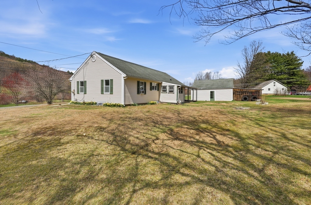 Experience true single-floor living in picturesque Deerfield. Located on almost 4-acres, this 3 bedroom Ranch style home blends peaceful country living with a convenient location. Inside, you will find bright spaces with freshly painted walls, cleaned carpets, and an open layout where the dining and living rooms share beautiful beamed ceilings. Step outside to enjoy covered porches on both the front and back, perfect for morning coffee or evening stargazing. Walk further on the property to find your very own meandering stream. The detached two-car garage, with attached shed, provides plenty of room for vehicles, tools, or weekend projects. Located with easy access to major routes, you are just minutes from the prestigious Deerfield Academy, local parks, grocery shopping, and the Greenfield train station. While the home needs some work, the bones are good and the potential is undeniable. Schedule your showing today, before it becomes someone else's forever home!