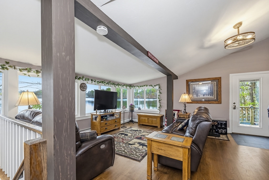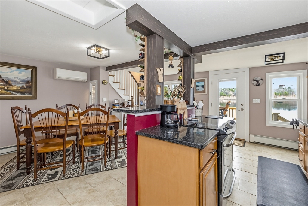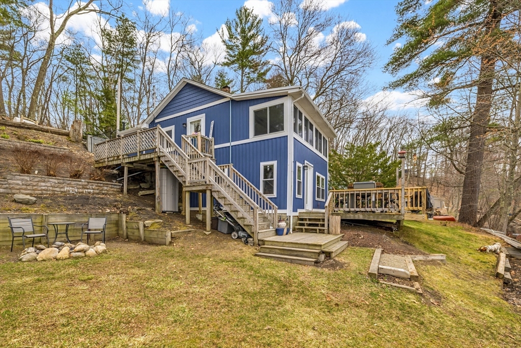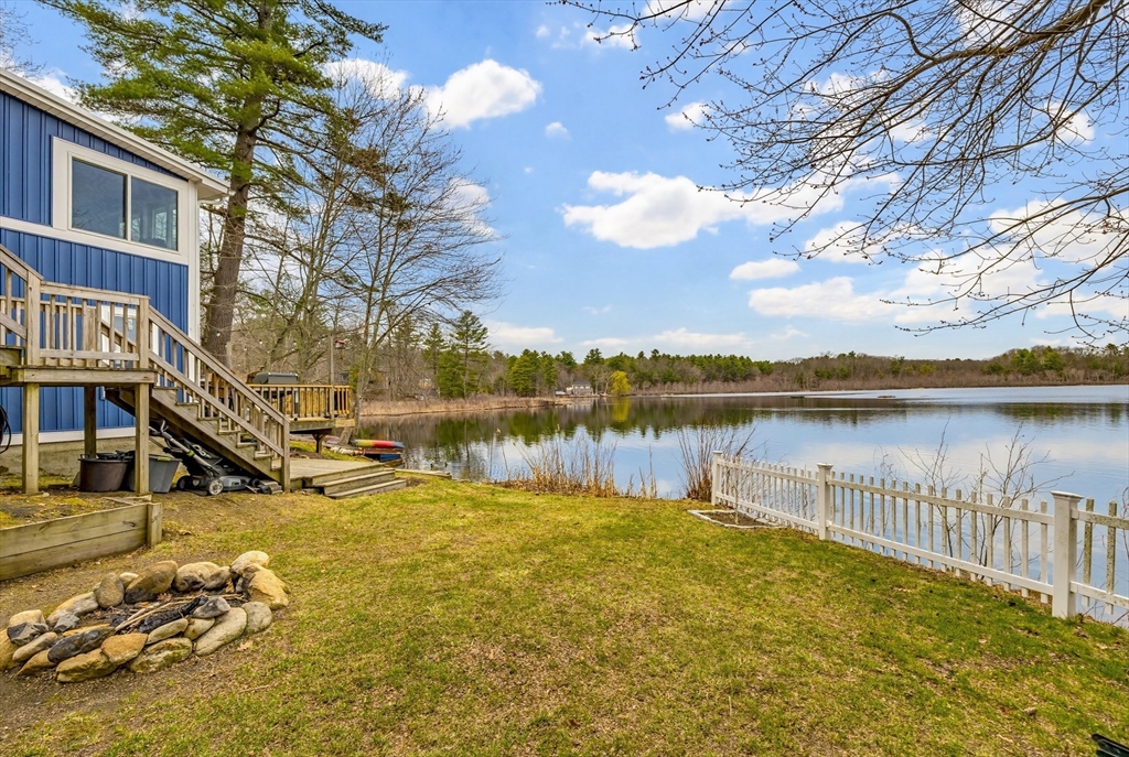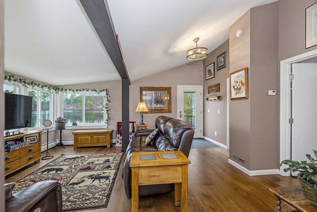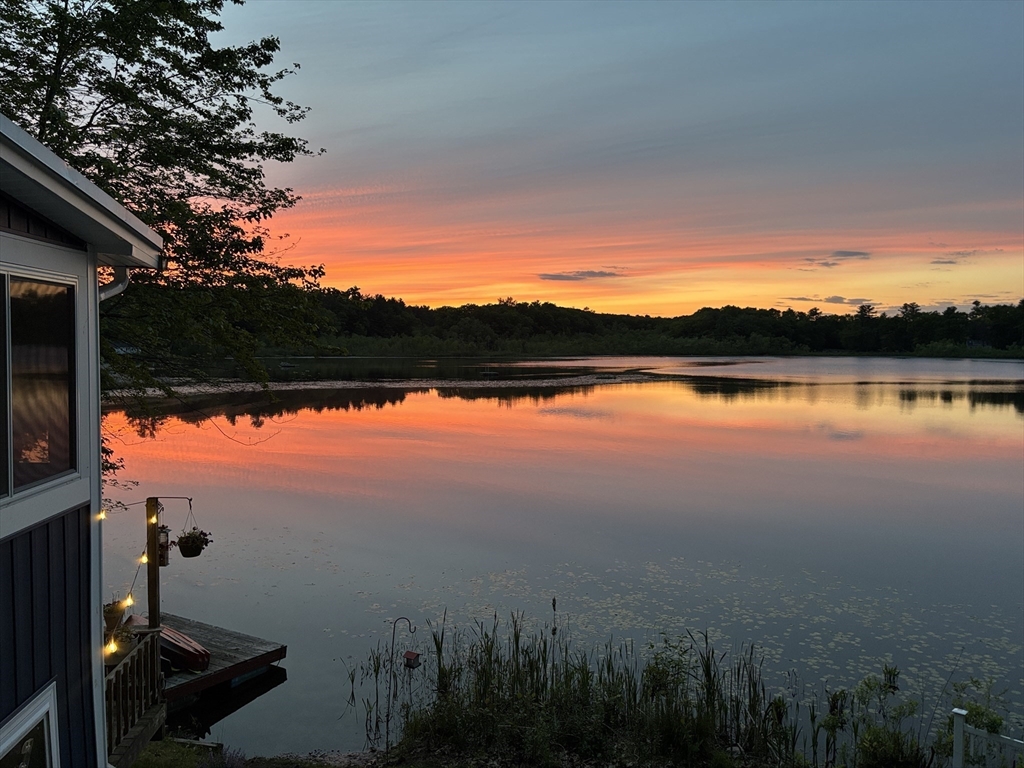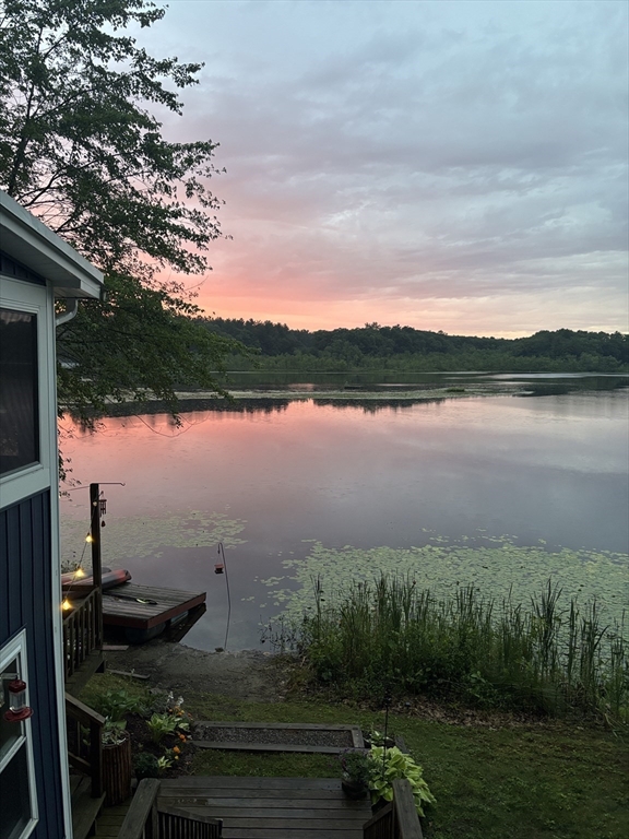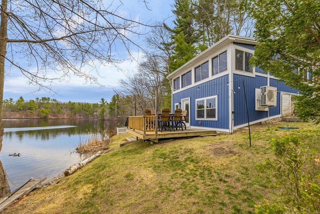 Your dream waterfront property awaits on Whitney Pond—a hidden gem, tucked away in a quiet, private setting. Enjoy true vacation lifestyle every day w/swimming, kayaking, boating, & fishing right outside your door. The 2nd floor features a bright, sun-filled living room w/panoramic water views, a primary BR w/a full-width closet, & 2nd BR currently used as an office, complete w/a built-in queen Murphy bed. An updated half bath completes this level. On 1st floor, you’ll find an open-concept kitchen/dining area w/SS appliances & granite countertops, an updated full bath w/a walk-in tiled shower, & a well-organized laundry/utility/pantry space offering excellent storage. Step outside & take in the peaceful waterfront setting. The property offers a private yard, your own beach, & a dock right at water’s edge—perfect for making the most of lake life. Add’l storage is available in the spacious attic. Conveniently located near shopping, Rt 3 & 495, beaches & boat launch. This one won't last!