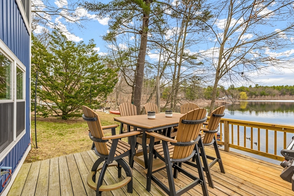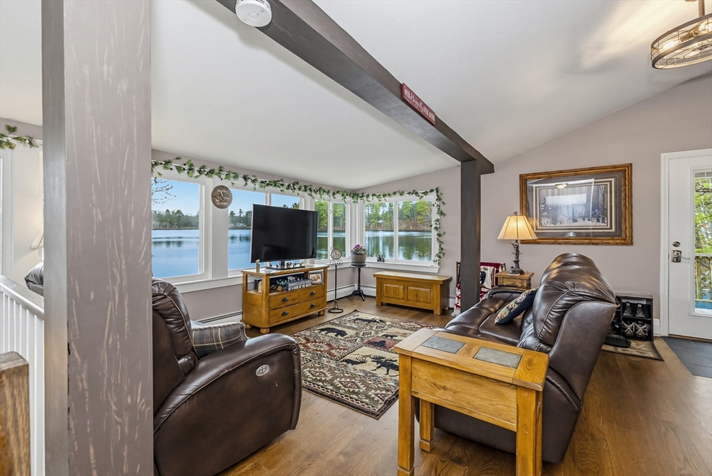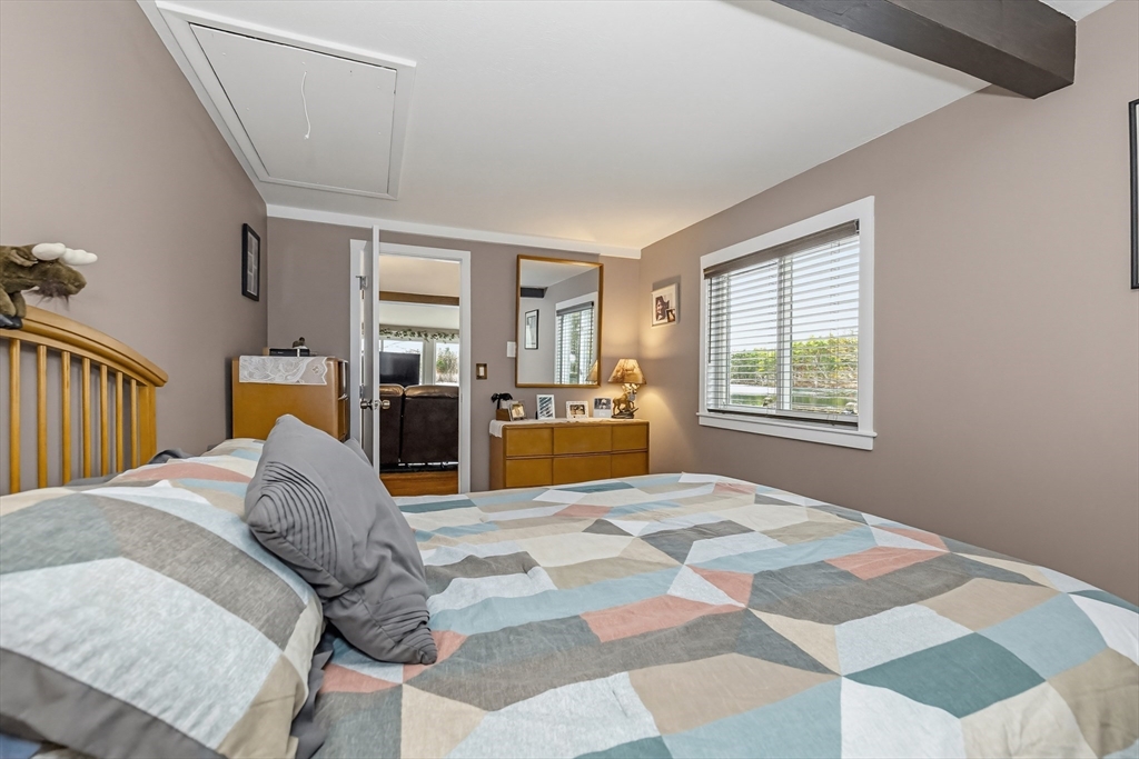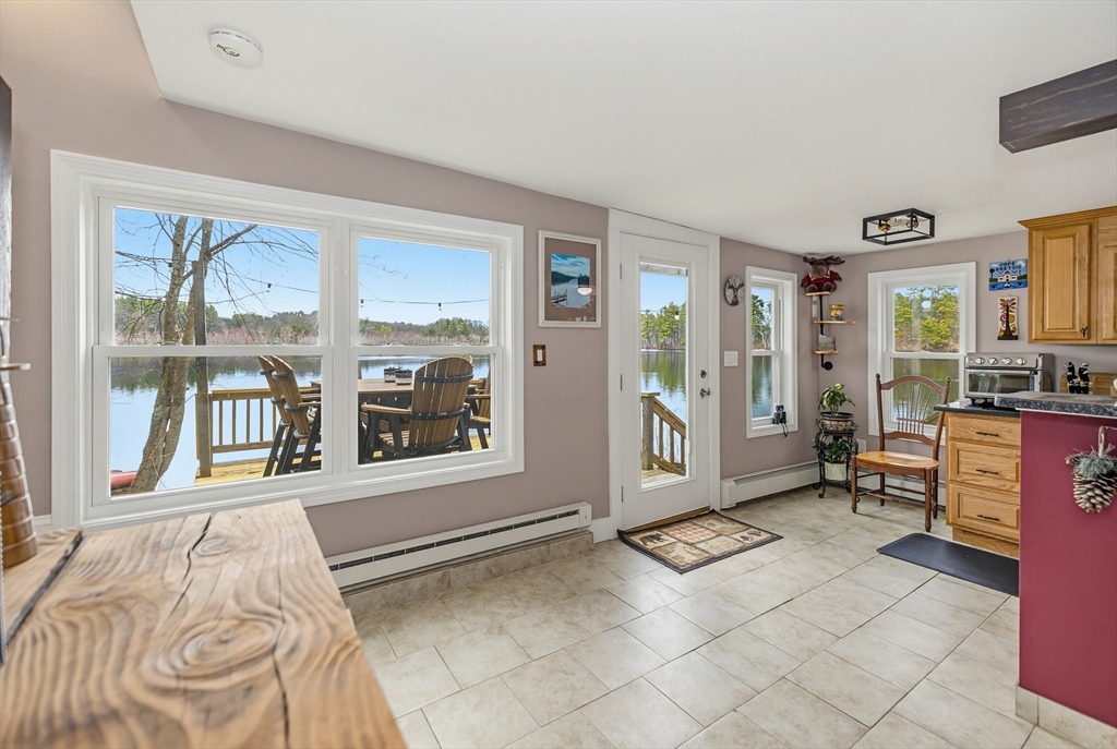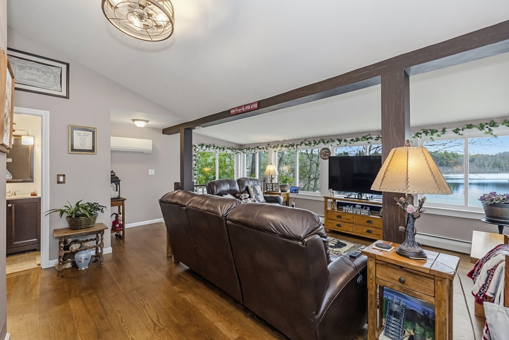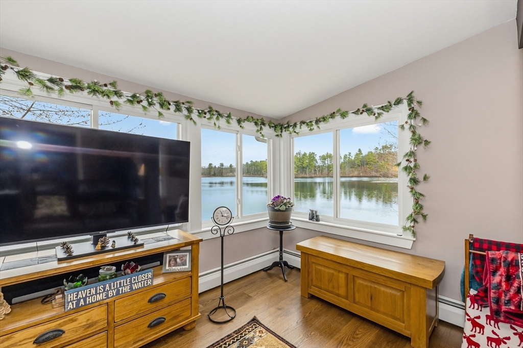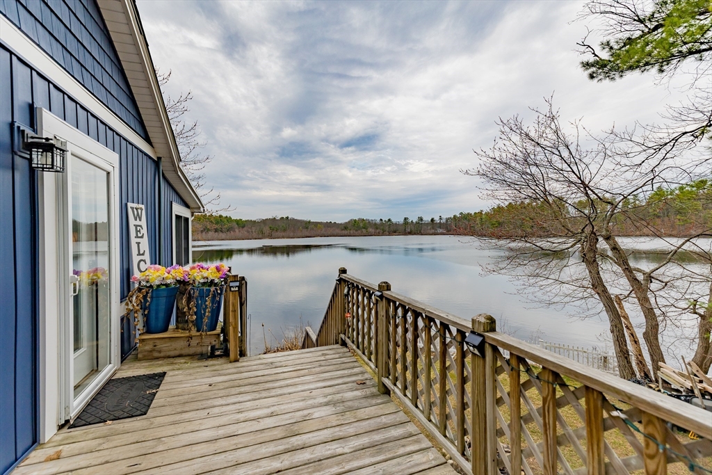 Your dream waterfront property awaits on Whitney Pond—a hidden gem, tucked away in a quiet, private setting. Enjoy true vacation lifestyle every day w/swimming, kayaking, boating, & fishing right outside your door. The 2nd floor features a bright, sun-filled living room w/panoramic water views, a primary BR w/a full-width closet, & 2nd BR currently used as an office, complete w/a built-in queen Murphy bed. An updated half bath completes this level. On 1st floor, you’ll find an open-concept kitchen/dining area w/SS appliances & granite countertops, an updated full bath w/a walk-in tiled shower, & a well-organized laundry/utility/pantry space offering excellent storage. Step outside & take in the peaceful waterfront setting. The property offers a private yard, your own beach, & a dock right at water’s edge—perfect for making the most of lake life. Add’l storage is available in the spacious attic. Conveniently located near shopping, Rt 3 & 495, beaches & boat launch. This one won't last!