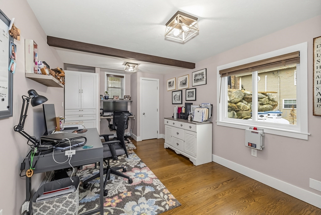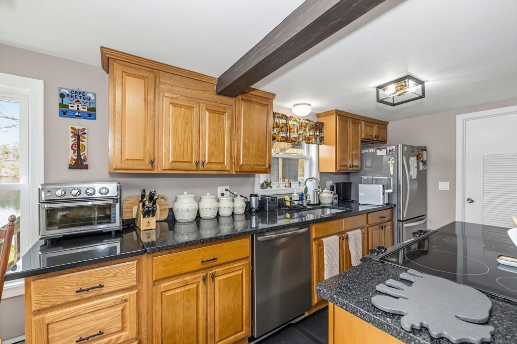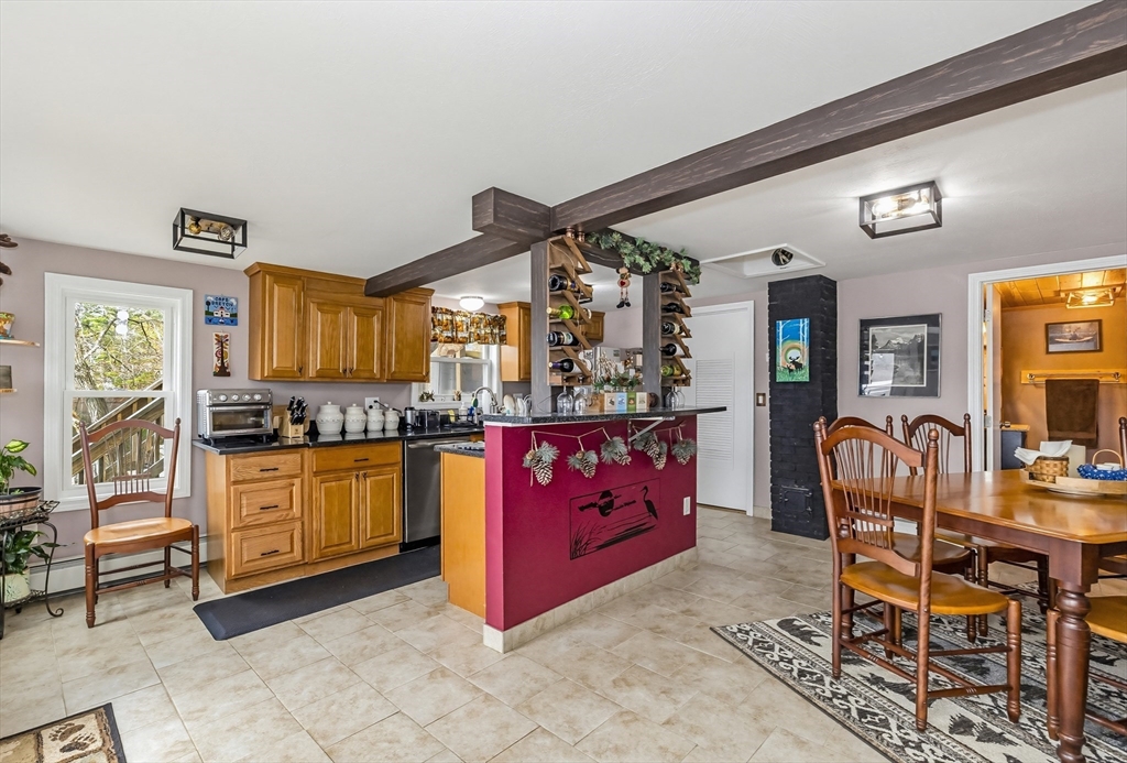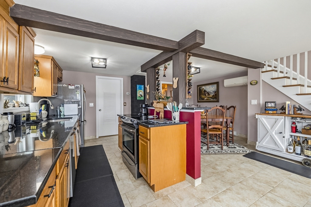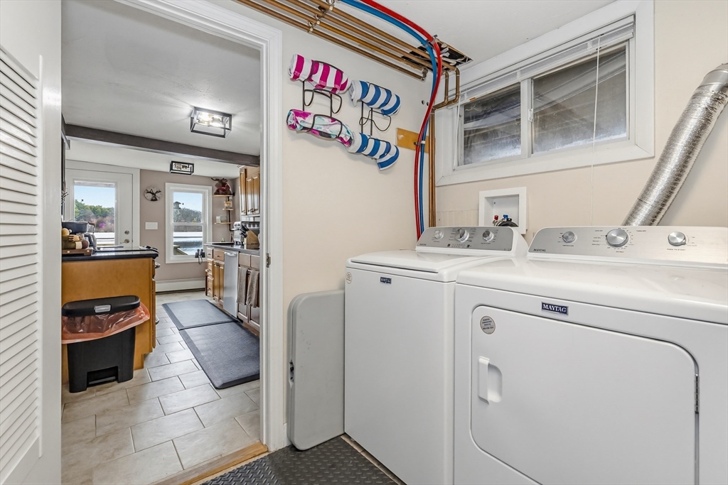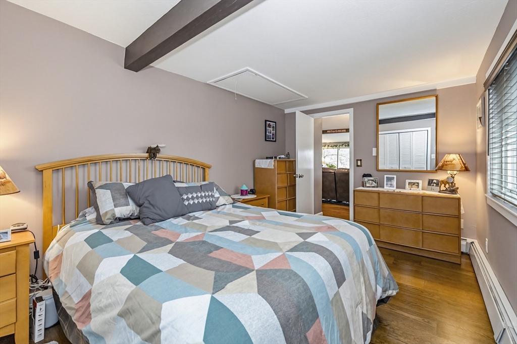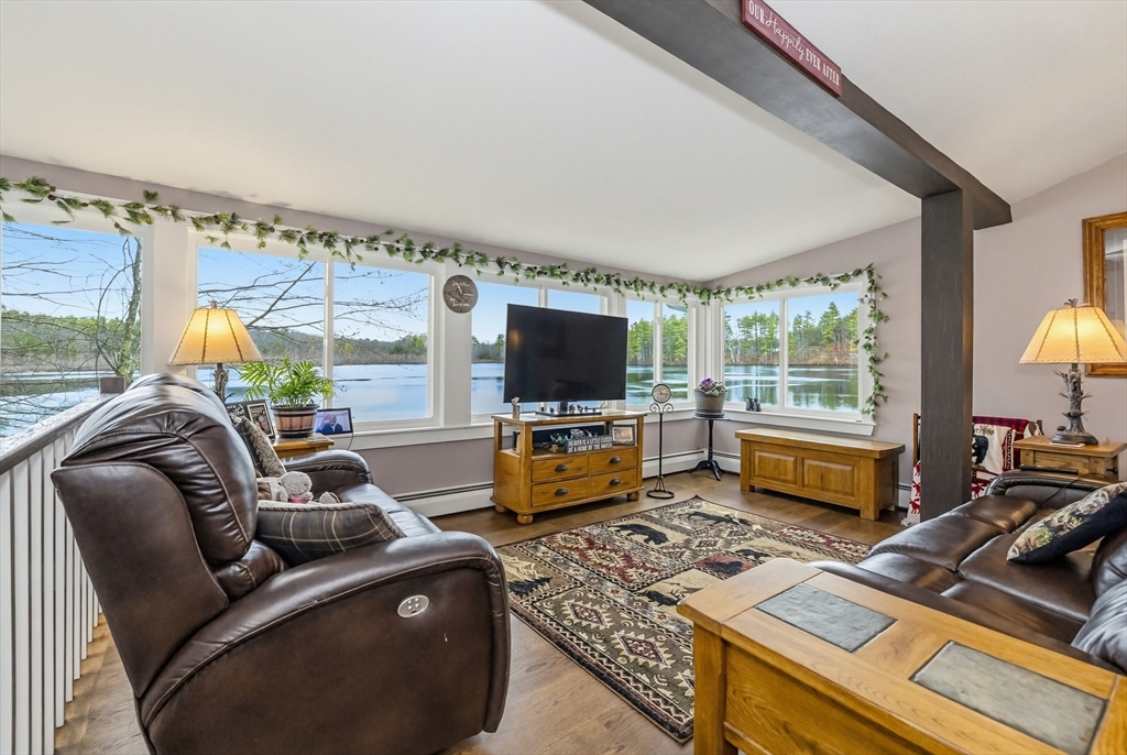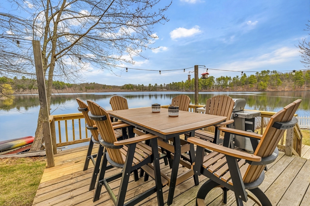 Your dream waterfront property awaits on Whitney Pond—a hidden gem, tucked away in a quiet, private setting. Enjoy true vacation lifestyle every day w/swimming, kayaking, boating, & fishing right outside your door. The 2nd floor features a bright, sun-filled living room w/panoramic water views, a primary BR w/a full-width closet, & 2nd BR currently used as an office, complete w/a built-in queen Murphy bed. An updated half bath completes this level. On 1st floor, you’ll find an open-concept kitchen/dining area w/SS appliances & granite countertops, an updated full bath w/a walk-in tiled shower, & a well-organized laundry/utility/pantry space offering excellent storage. Step outside & take in the peaceful waterfront setting. The property offers a private yard, your own beach, & a dock right at water’s edge—perfect for making the most of lake life. Add’l storage is available in the spacious attic. Conveniently located near shopping, Rt 3 & 495, beaches & boat launch. This one won't last!
