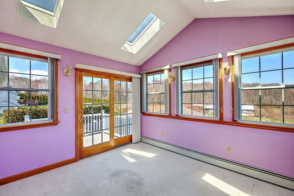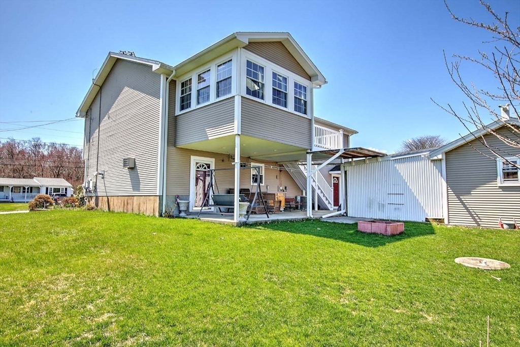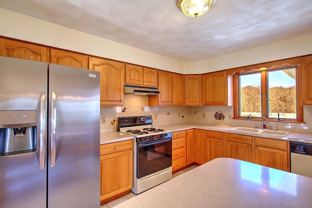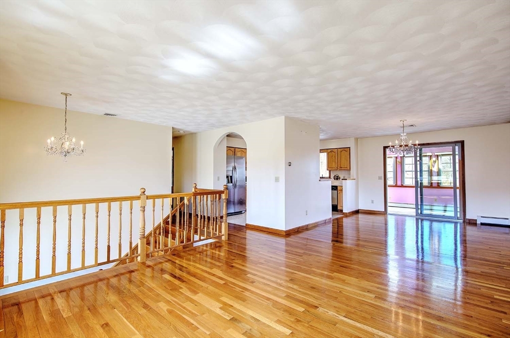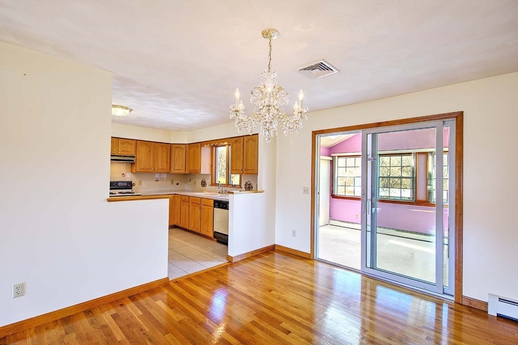 Immaculate Raised Ranch set on a half an acre in desirable Seekonk. This home features a spacious open floor plan with hardwood floors throughout and plenty of natural light. Main level has a large living room, dining room opening to a sunroom and a well laid out sunny kitchen. A deck is off of the sunroom overlooking a large yard with fruit trees and gardens. The primary bedroom has a private full bath and a large closet. The two other bedrooms are large with large closets. The finished lower level has a second kitchen with a family room and pellet stove. Laundry and a half bath are also located in the lower level. This home is well maintained with a new roof, money saving solar panels and a newer energy efficiency boiler.