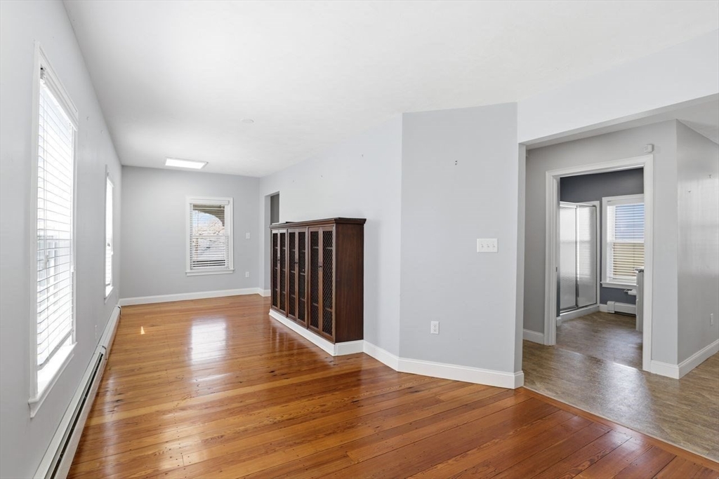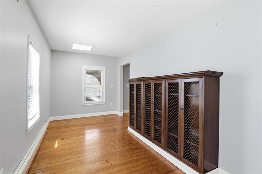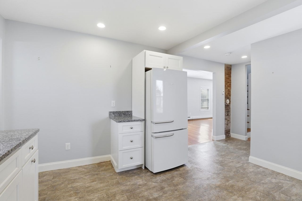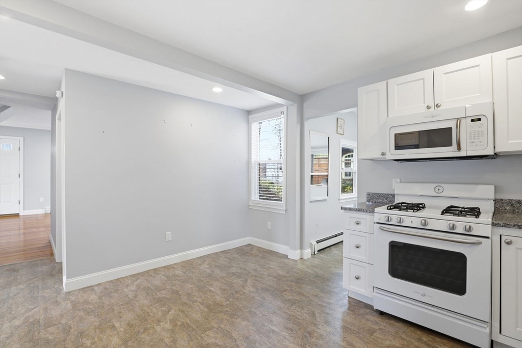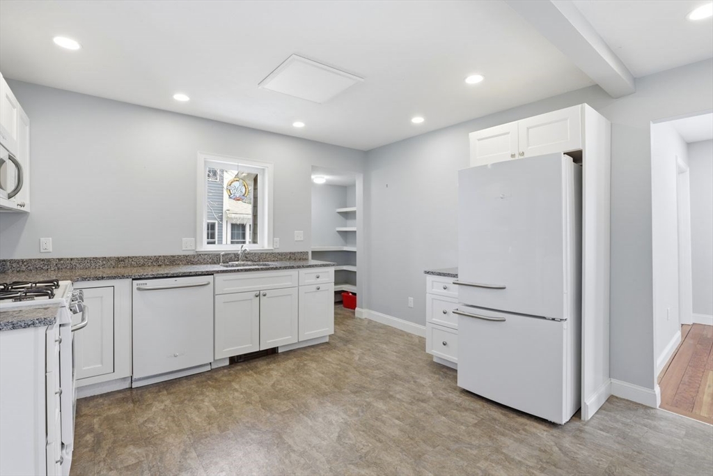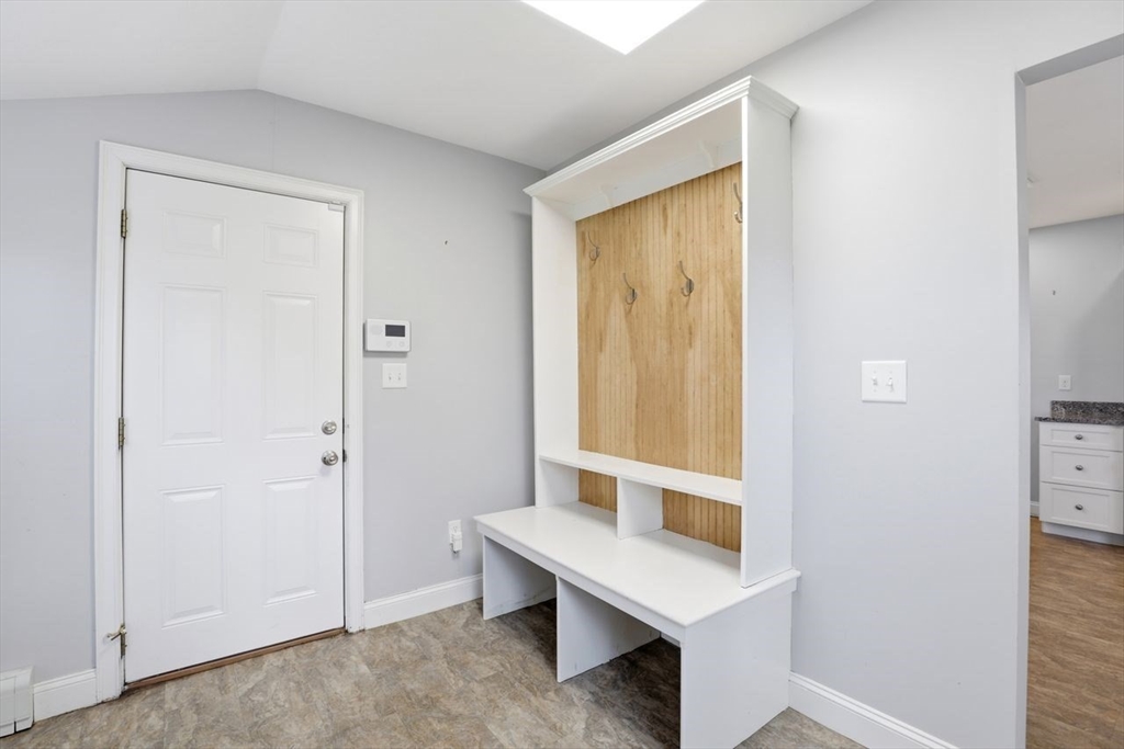 Perched atop a hill, this charming shingle-style Colonial is framed by a welcoming rocking chair front porch and striking stonework, leading to a picturesque stone gazebo with distant ocean views. This spacious 8-room home was fully gut renovated just 8 years ago and features beautiful hardwood floors, central air and a sun filled floor plan. The white kitchen with granite countertops includes a large walk-in pantry and flows seamlessly off the mudroom/laundry area for added convenience. The first floor offers both living and family rooms, along with a bedroom and a beautifully renovated full bath—ideal for guests or flexible living. Upstairs, you'll find a large sitting area, three generously sized bedrooms (one currently used as a home office), and a full bath with a walk-in shower. Enjoy sidewalks to Nantasket Beach, shops, restaurants and a nearby playground, offering the best of coastal living! Convenient to commuter boat and train to Boston. No flood insurance required.