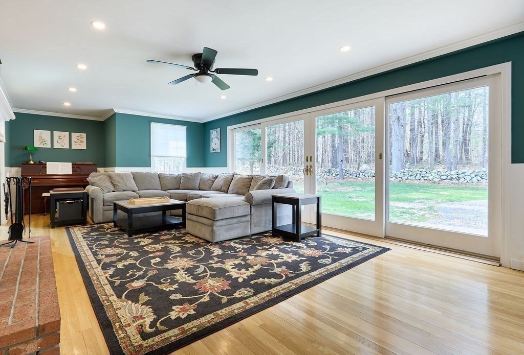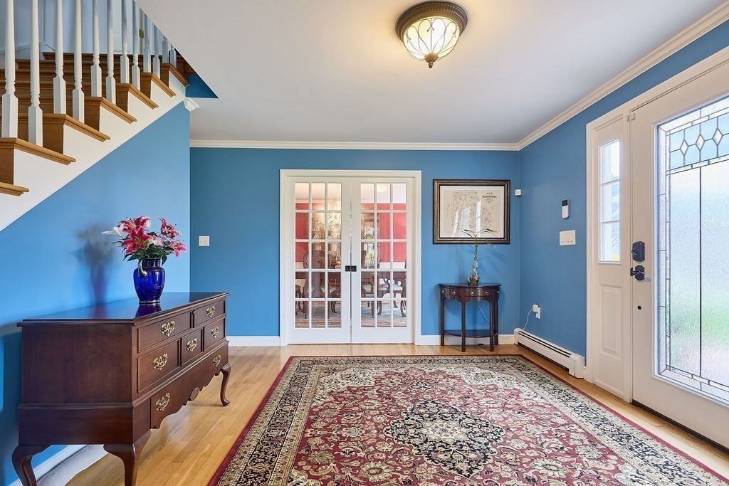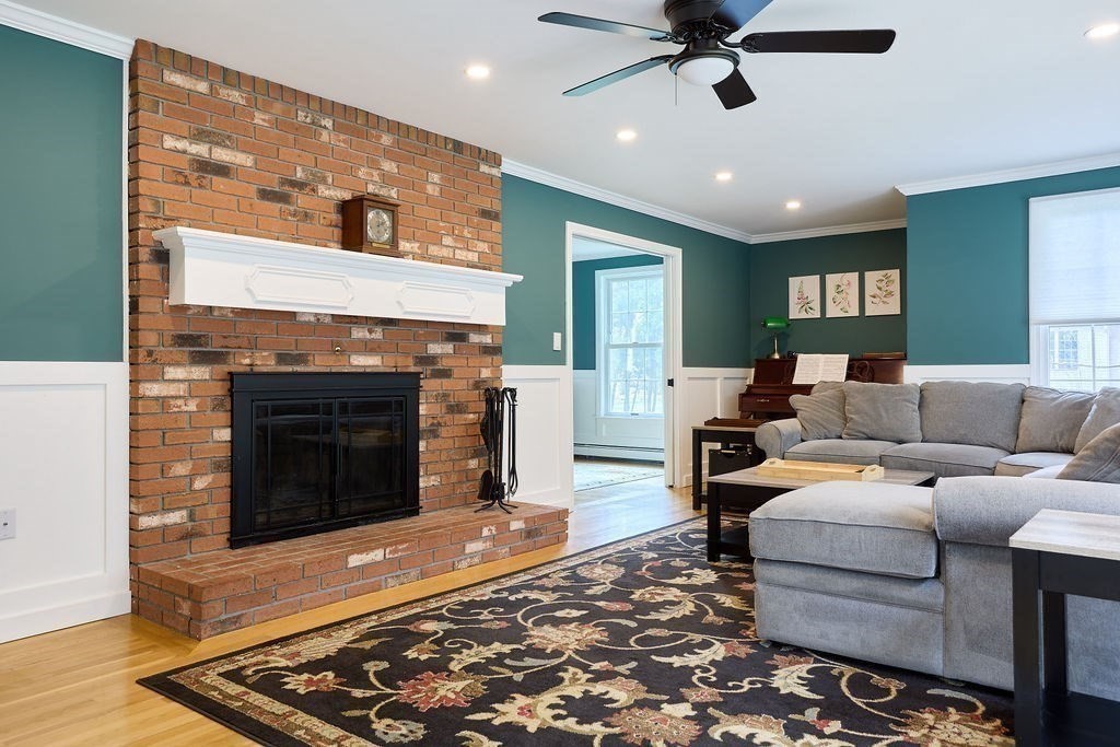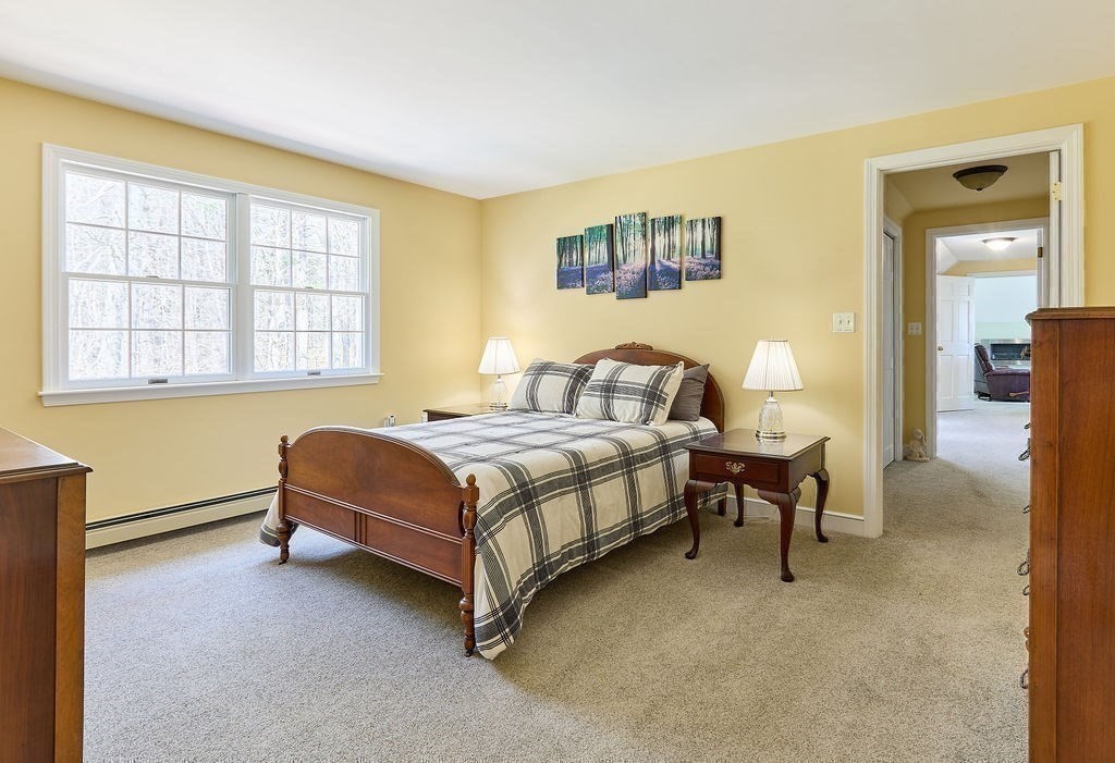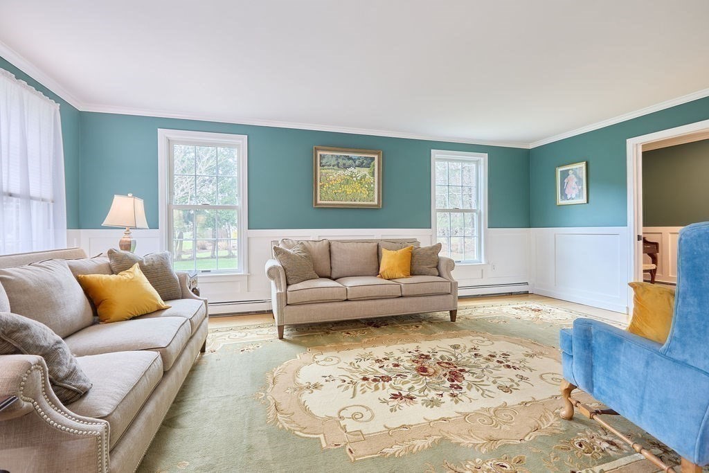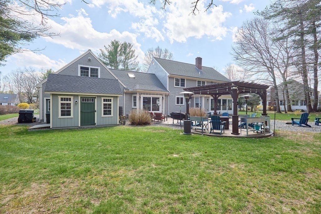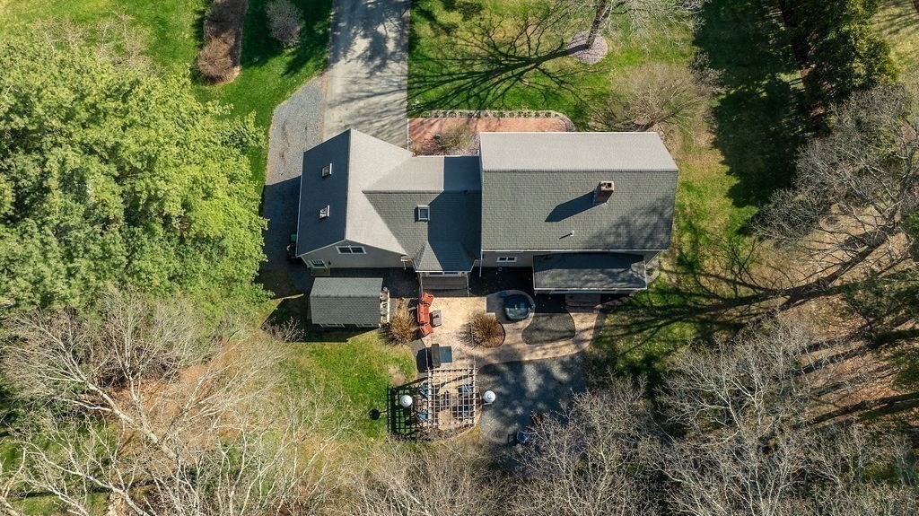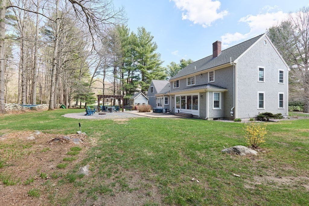 Set at the end of a quiet cul-de-sac, this 4-bedroom home offers over 3,100 sq ft on .69 acres with a great mix of space, privacy, and convenience. Features include Andersen windows throughout, a wood-burning fireplace in the family room, and an ethanol fireplace in the media room. Smart home features with Amazon integration include Nest thermostats, dimmable lighting, and a security system with 9 exterior cameras. Generator included. Partially finished basement is framed with rough electric and includes a high-end infrared sauna, custom tucked-away bar, and direct access from the oversized 2-car garage. Spacious backyard offers a private entertaining space with a new patio, pergola and a high-quality Chapin shed. The property is on town water with whole-house filtration, plus a private well dedicated to the irrigation system. Ideal location, just off Main Street and minutes to both highway and commuter rail. All four town schools are within 2 miles.