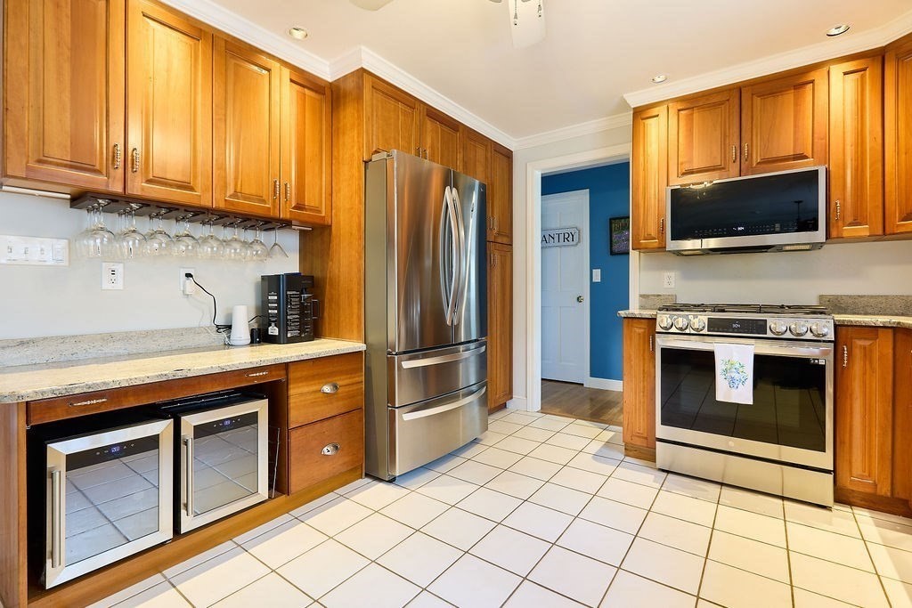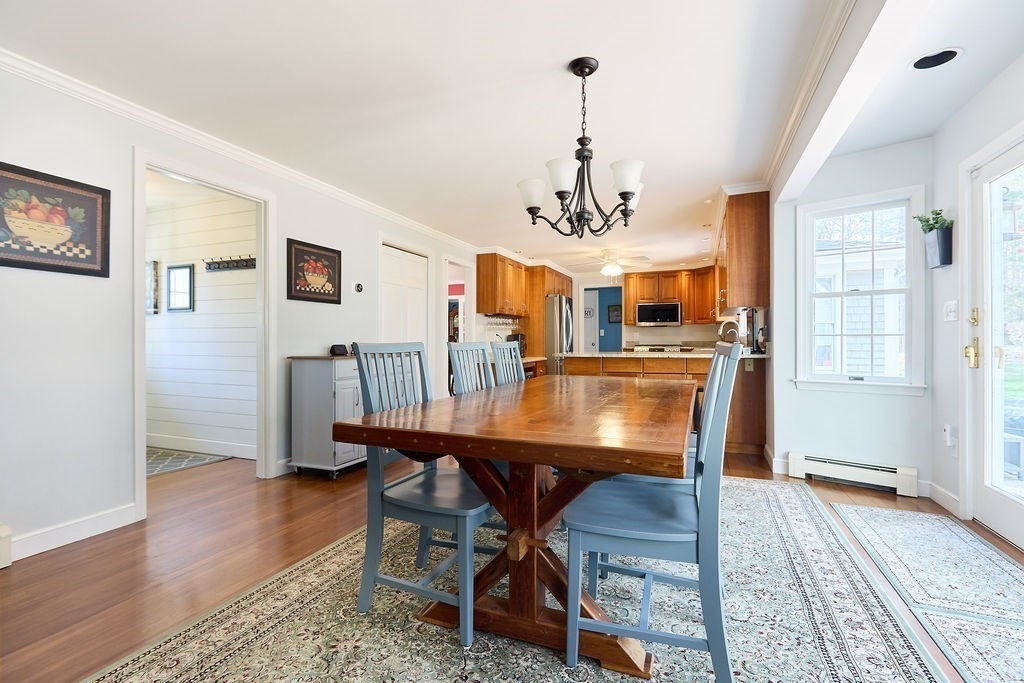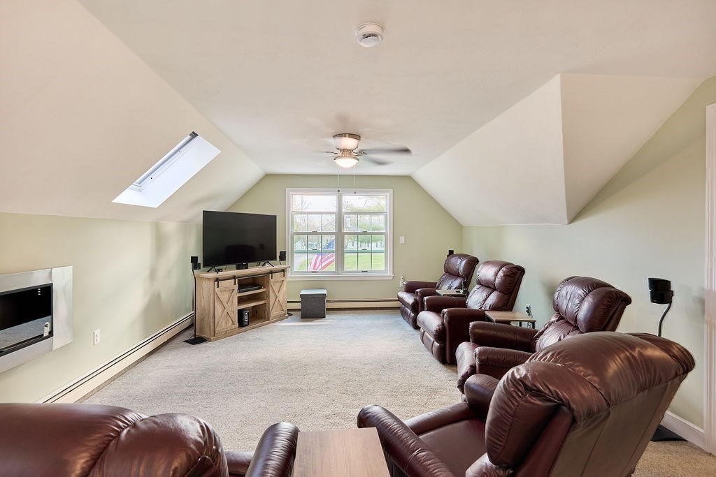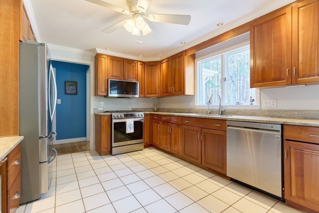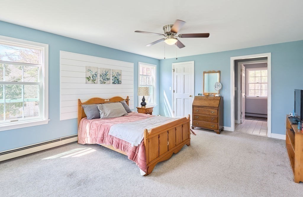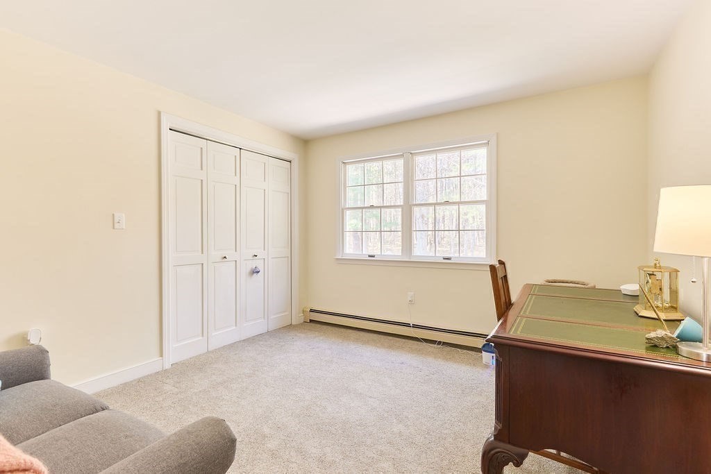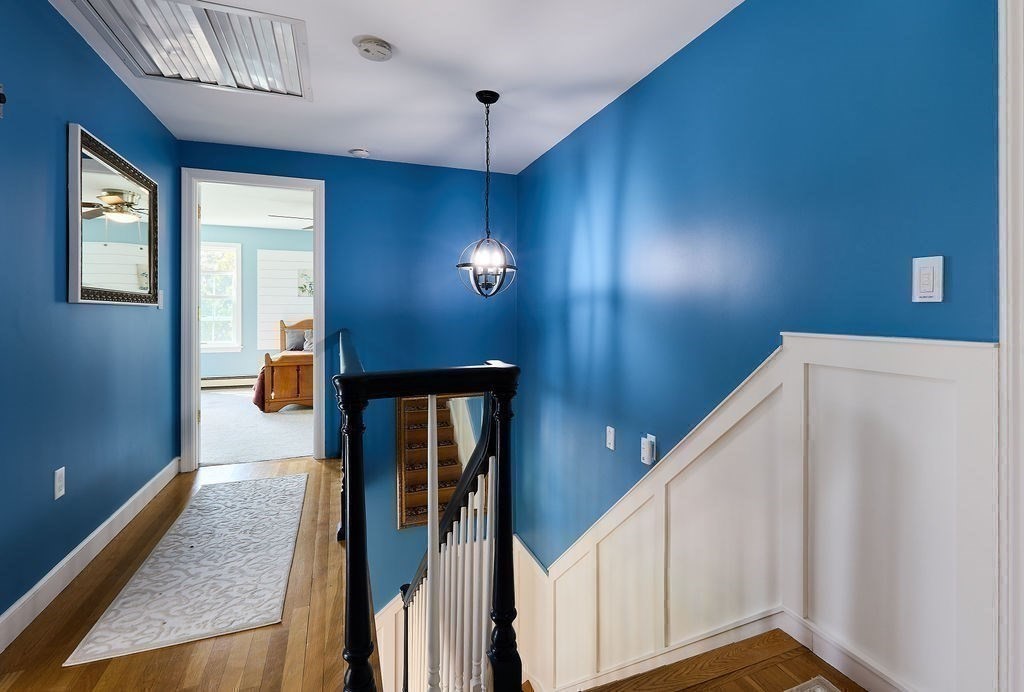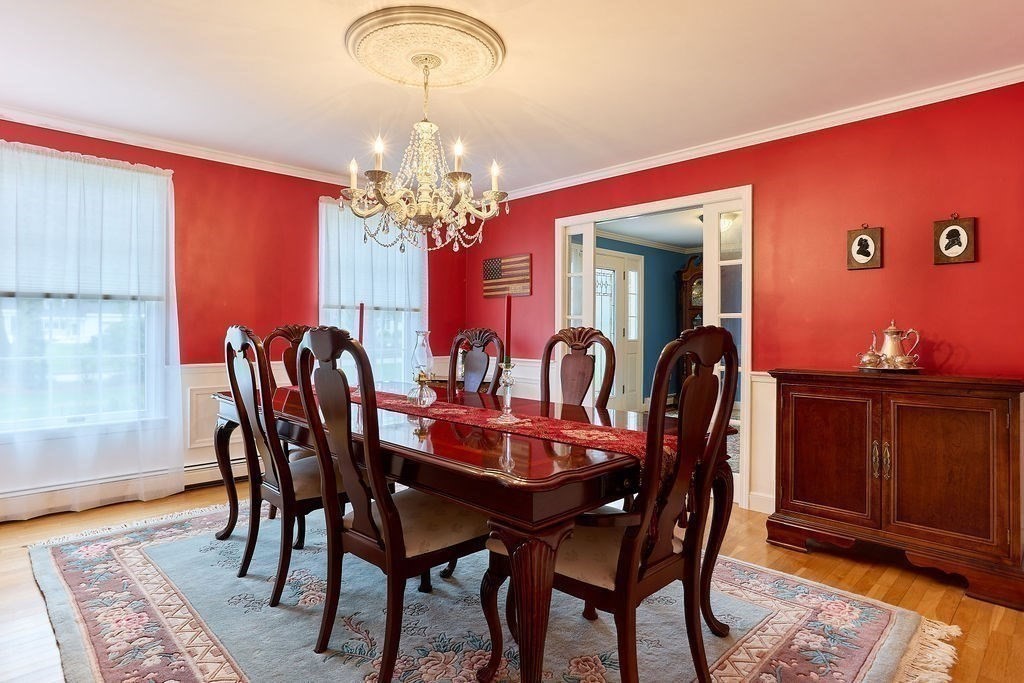 Set at the end of a quiet cul-de-sac, this 4-bedroom home offers over 3,100 sq ft on .69 acres with a great mix of space, privacy, and convenience. Features include Andersen windows throughout, a wood-burning fireplace in the family room, and an ethanol fireplace in the media room. Smart home features with Amazon integration include Nest thermostats, dimmable lighting, and a security system with 9 exterior cameras. Generator included. Partially finished basement is framed with rough electric and includes a high-end infrared sauna, custom tucked-away bar, and direct access from the oversized 2-car garage. Spacious backyard offers a private entertaining space with a new patio, pergola and a high-quality Chapin shed. The property is on town water with whole-house filtration, plus a private well dedicated to the irrigation system. Ideal location, just off Main Street and minutes to both highway and commuter rail. All four town schools are within 2 miles.