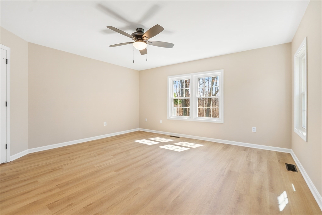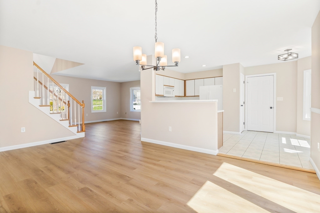 Amazing opportunity to own a beautiful Cape in the desirable Northfields community of Haverhill MA! As you enter, you're welcomed a spacious open concept floorplan flooded with natural light that has recently be updated with fresh paint and new floors. There's large1st floor Primary Bedroom which includes a walk-in closet, soaking tub and separate shower room. As you venture up the stairs to the second level, you're greeted with two additional bedrooms each with new floors and fresh paint, and a full bathroom. If that's not enough room, head downstairs to the finished basement that provides another approximately 700 sq ft of space and includes a wet bar and fireplace! Additional features included central AC, newer back deck with composite decking, and new light fixtures. HOA includes private golf, swimming pool, tennis, playground, basketball courts, fitness room, sauna, and a beautiful clubhouse! Showings start with the open house on Saturday 4/18 at 2pm.