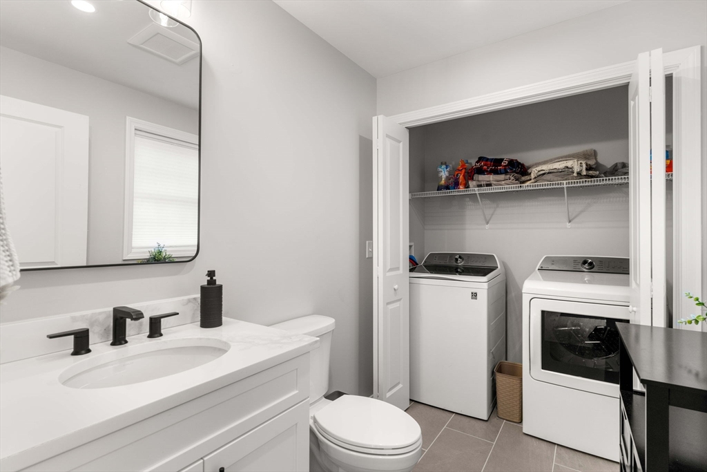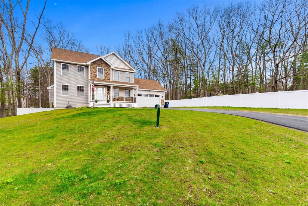 OPEN HOUSE SAT 4/25 & SUN 4/26th 11AM-12:30PM 2025 construction. Stunning colonial with lots of privacy at the end of a quiet Plaistow Street close to Mass and the highway. Beautiful stonework on the Farmers porch greets you as you drive up the long-paved driveway. As soon as you walk through the front door you are met with quality amenities such as hardwood flooring, recessed lighting, a large formal dining room. There is a gas fireplaced family room which opens into a large but cozy kitchen equipped with a center island and gorgeous cabinetry. Sliders lead to your maintenance free deck overlooking your beautiful fenced in yard. Attached 2 car garage off kitchen. Large primary bedroom with a walk in closet and nice primary bath. Two more spacious bedrooms AND a home office. Lots of custom window treatments. Amazing basement with natural light.