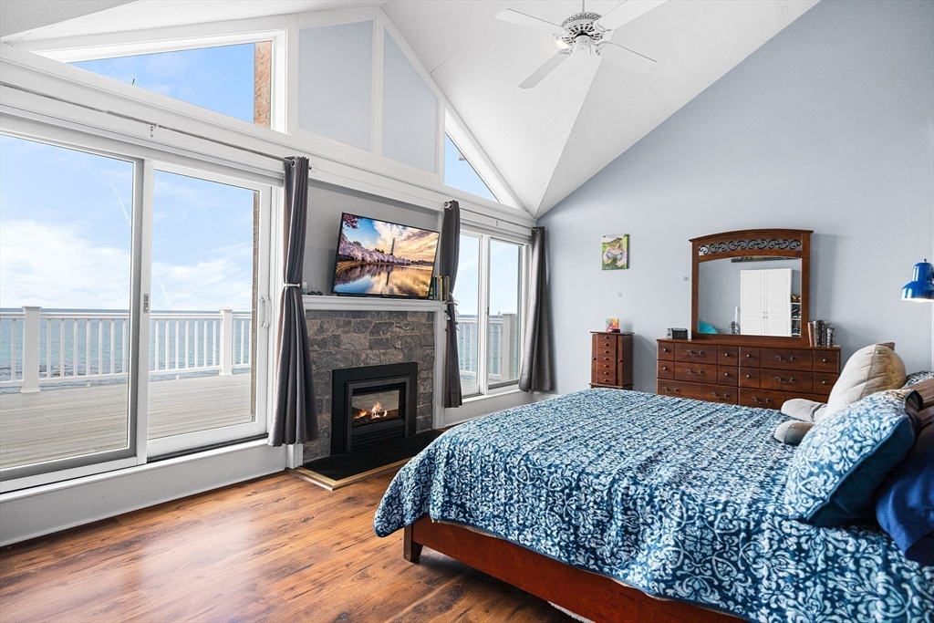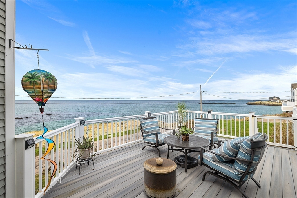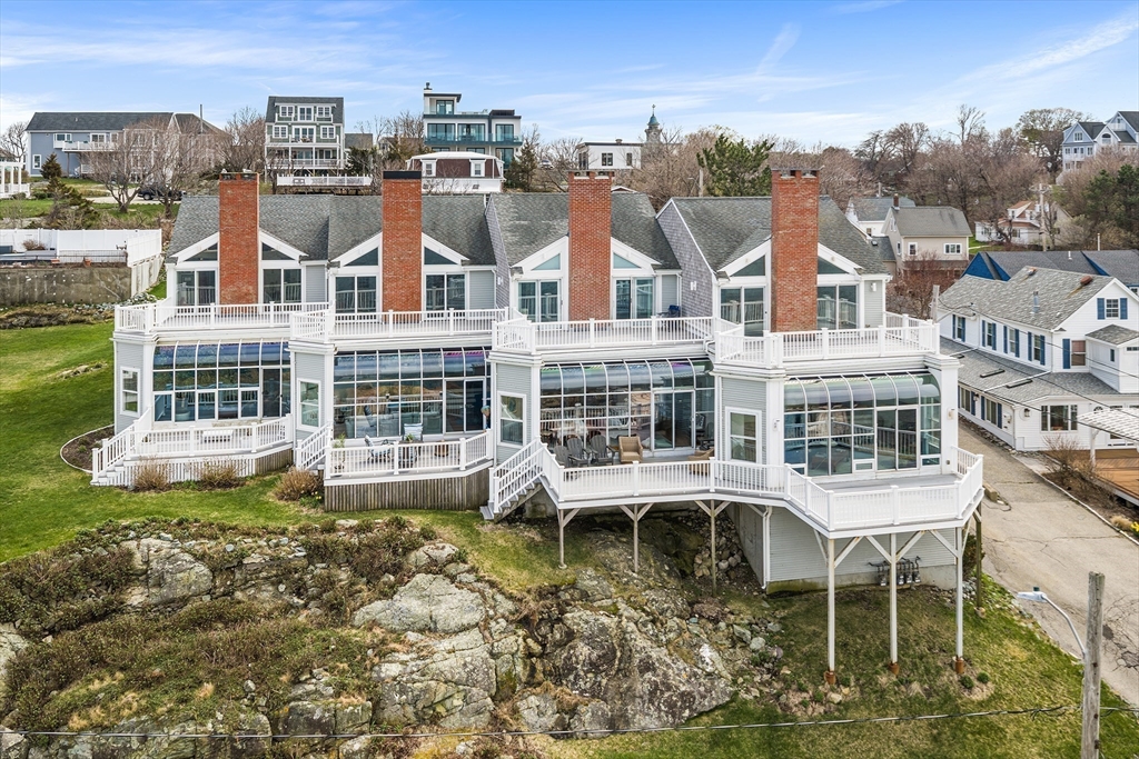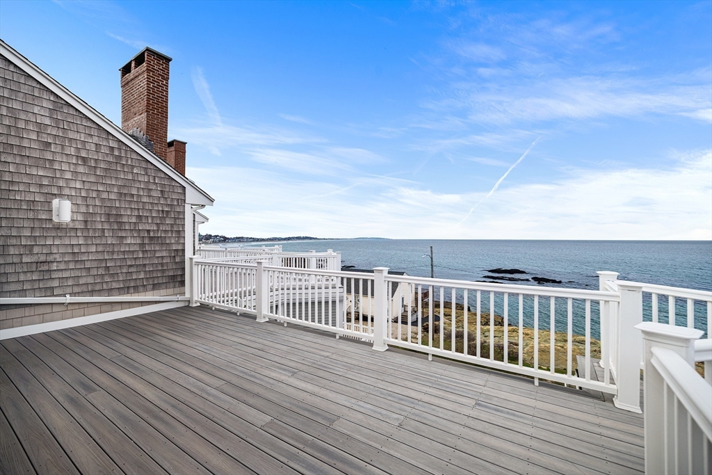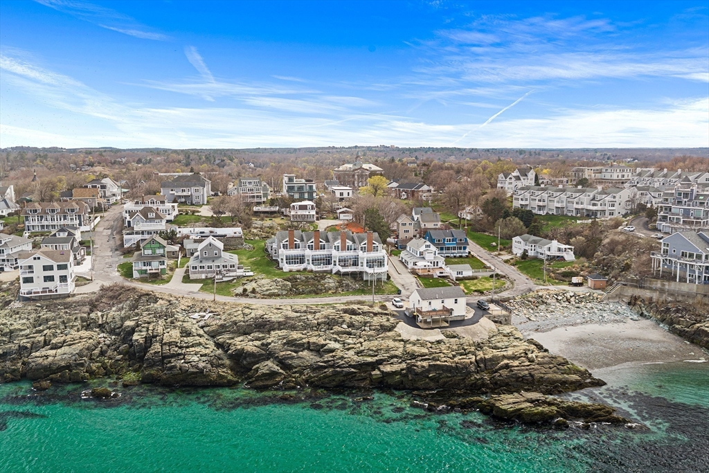 Experience elevated coastal living in this stunning townhouse with spectacular water views and sweeping, unobstructed ocean views from Gunrock Beach to the Boston skyline. Perfectly positioned above the roadway, this home captures exceptional sunrises and sunsets. Ideally located just steps to the beach and approx 1.6 miles to local dining, shopping, and amenities. Enter through a private courtyard with raised garden beds and an outdoor shower, leading into an inviting open-concept layout. The chef’s kitchen features granite countertops, a large center island, a gas cooktop, double ovens, and a wine fridge. Soaring ceilings, a double-sided fireplace, and walls of glass open to an oversized deck, creating seamless indoor-outdoor living with stunning views. The primary suite offers water views, private deck access, a fireplace, a walk-in closet, and a spa-like bath with a steam shower. Two-car garage and generous storage complete this exceptional home.