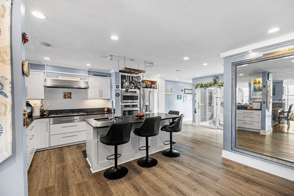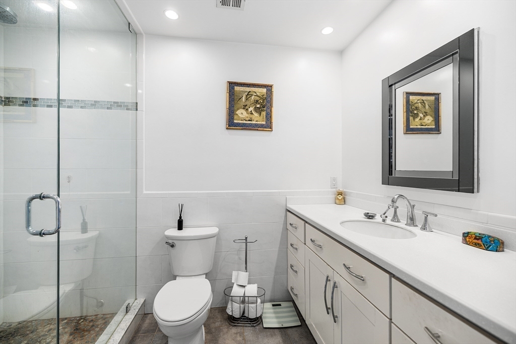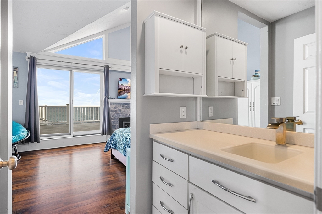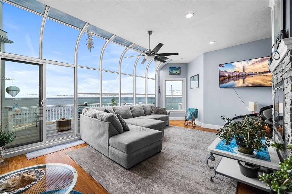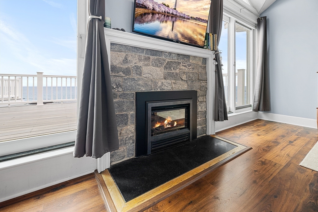 Experience elevated coastal living in this stunning townhouse with spectacular water views and sweeping, unobstructed ocean views from Gunrock Beach to the Boston skyline. Perfectly positioned above the roadway, this home captures exceptional sunrises and sunsets. Ideally located just steps to the beach and approx 1.6 miles to local dining, shopping, and amenities. Enter through a private courtyard with raised garden beds and an outdoor shower, leading into an inviting open-concept layout. The chef’s kitchen features granite countertops, a large center island, a gas cooktop, double ovens, and a wine fridge. Soaring ceilings, a double-sided fireplace, and walls of glass open to an oversized deck, creating seamless indoor-outdoor living with stunning views. The primary suite offers water views, private deck access, a fireplace, a walk-in closet, and a spa-like bath with a steam shower. Two-car garage and generous storage complete this exceptional home.