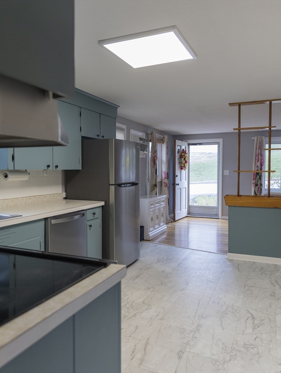 This adorable, charming, ranch offers one level living on the East Side of Worcester. Walk thru the front door to the open living dining kitchen area. The hallway leads to 3 well sized bedrooms and a full bath. Main bedroom has 2 closets! Located near Lake Park and Worcester's Restaurant Row, this house stands in a FANTASTIC area of the city on a lovely residential street. Since 2022 the house has solar panels, refinished hardwood floors, new vinyl tiles in kitchen and new bathroom flooring as well as new interior paint and FABULOUS bathroom wallpaper! Stainless appliances are all less than 5 years old. Outside front landscaping is newer and a SECOND deck has been added next to the kitchen door. Gas forced hot air might allow for central air addition. Finished room in basement needs new florring but adds an additional 427 sq ft with a bar and built in bench seating. Utility room has a large work bench and laundry area with direct walk out to the back yard.