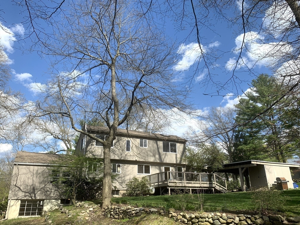 Welcome to Lexington! This charming contemporary home offers great versatility: the spacious living room w/ a wood-burning fireplace and large bow window flows easily into the dining room with floor-to-ceiling windows. The kitchen features SS appliances, gas cooking, granite countertops, a large island, and plenty of storage. The huge deck off the kitchen is great for grilling while basking in sunshine and serenity in the huge backyard. The main level includes a primary suite with updated bath, a second bedroom, and family bath. Two additional large bedrooms and a full bath are located on the upper level. There are many options for home offices including the lower level. The walkout lower level provides a large family room, spacious laundry area, half bath, bonus room, workstation, and storage. The circular driveway, carport, and storage shed add convenience. Close to Lexington HS, Hastings Park, town pool, conservation trails, and easy highway access.