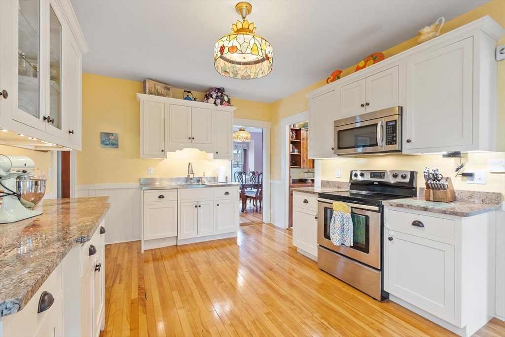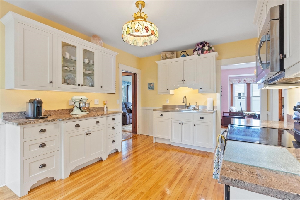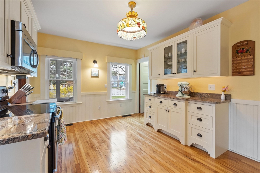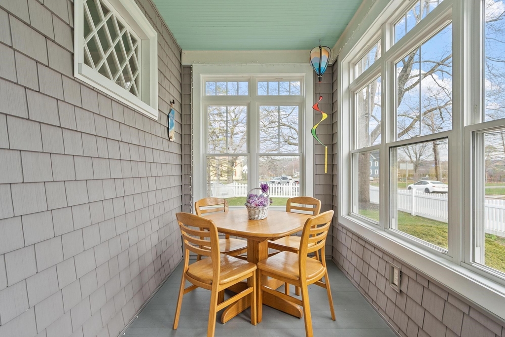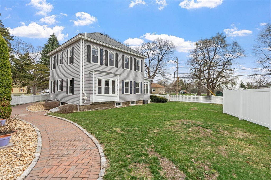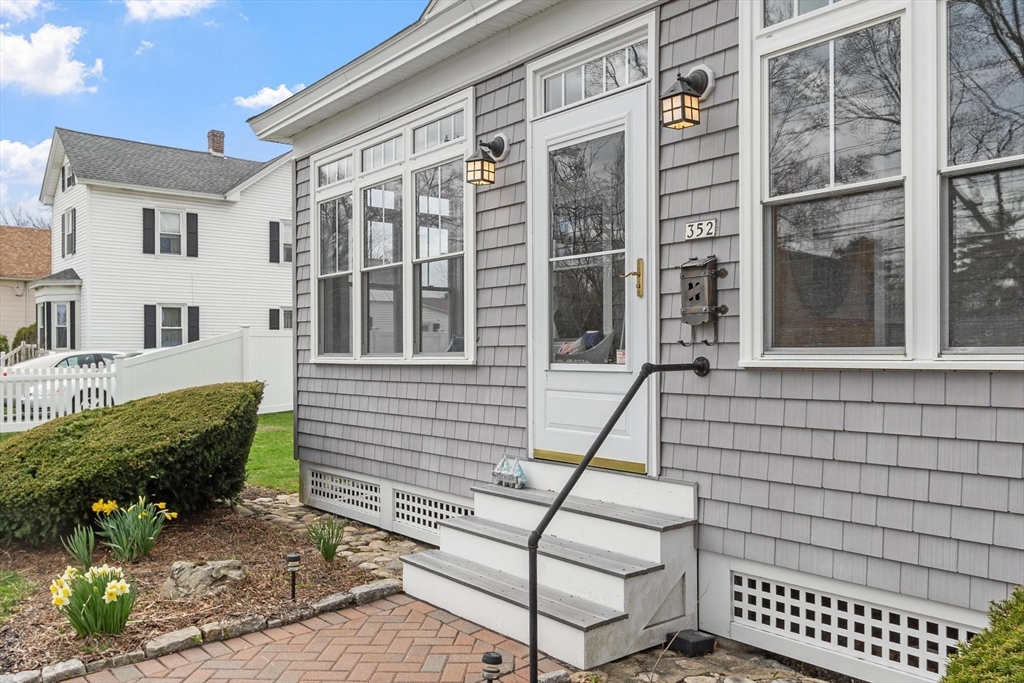 Welcome to 352 Main Street! This handsomely updated & lovingly maintained Classic New England Colonial home has 3 bedrooms, 2.5 baths & loads of charm. You'll find the character of it's time has been maintained and improved w/modern conveniences you'd come to expect, plus gleaming hardwoods, stunning original woodwork, & tons of natural light. The Kitchen is well-appointed w/custom cabinetry, granite countertops & a convenient pantry. The dining room, with it's large sitting window is a perfect spot to curl up & read. A classic, columned entry opens to a large, bright living room. The enclosed front porch is like an extension of the living area & a great spot to relax. Upstairs you'll find 3 nicely sized bedrooms & 2 full baths. The end of the hall leads to the attic, w/more space & tons of potential. Outside, wait till you see the amazing brick pavered walkways, beautiful lawn and the shade-sail covered patio! A short walk to Doyle Field and close to Route 2. This is Home.