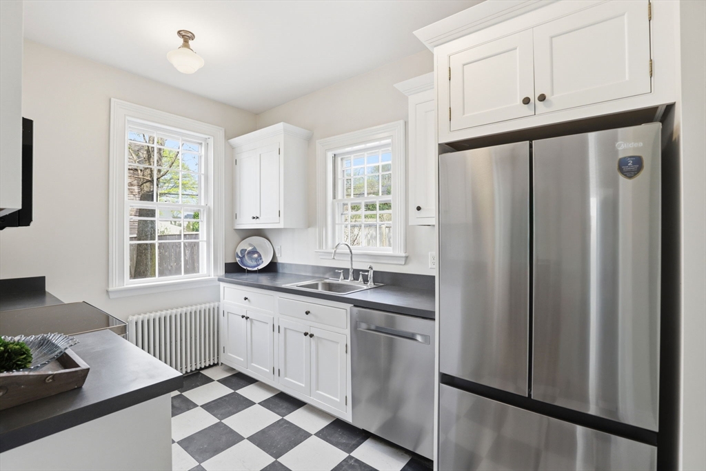 Charming condo set within a beautifully maintained two-unit antique Cape, blending historic character with modern comfort. Enjoy the privacy of a single-family feel alongside the ease of condo living. This thoughtfully updated unit offers 2 bedrooms and 1.5 baths, featuring a modern kitchen with new stainless steel appliances and refreshed bathrooms designed for today’s lifestyle. Wide pine floors, high ceilings, and a warm, inviting layout define the space, including a spacious living room, an entertainment-sized dining room, and an updated kitchen. The first floor also includes a convenient half bath with laundry hookup. Upstairs, you’ll find two bedrooms and a full bath. Additional highlights include dedicated parking and extra storage. Ideally located just minutes from downtown Hingham, local shops and dining, and the commuter rail, this home presents a rare opportunity to own a piece of history with all the comforts of modern living.