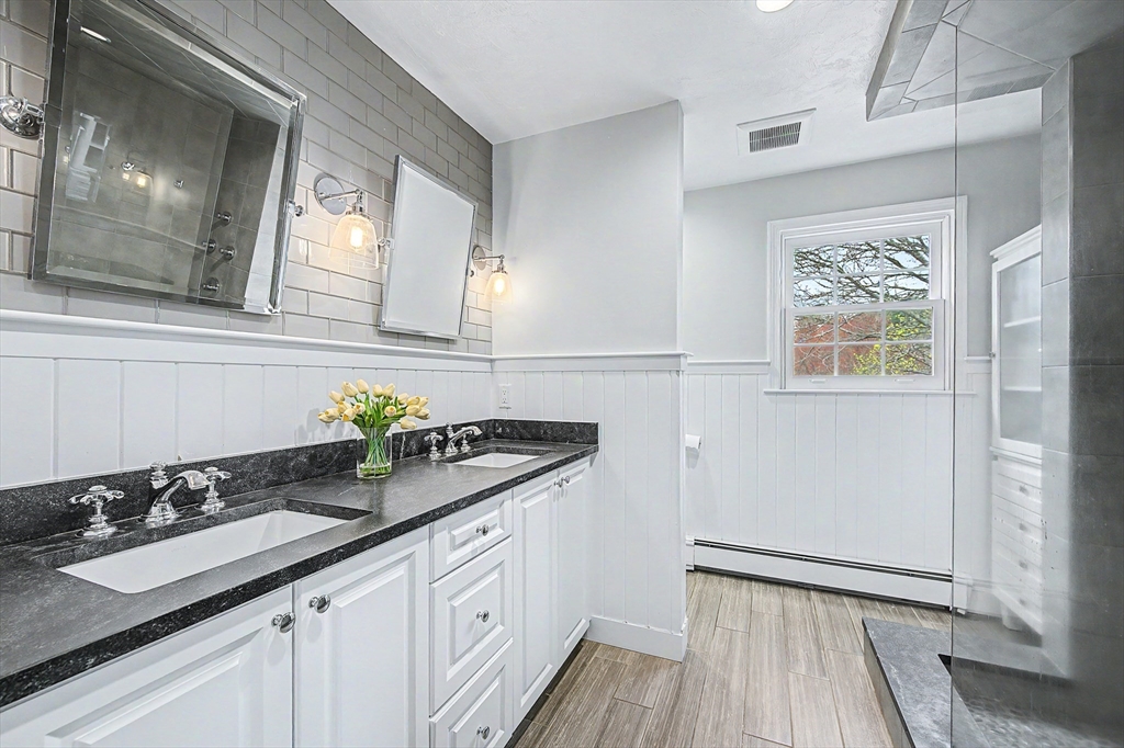 Welcome to 4 Stewart Street! Situated in a lovely sub division adjacent to Lake Whitehall with all its recreational activities. This lovely home has been beautifully maintained throughout. The remodeled kitchen includes honed black granite counters, propane cooktop, wine fridge, double wall ovens, SS appliances, and a bank of lighted glass cabinets. Spacious eating area opens to a deck and patio with its private and fenced back yard. Laundry/mudroom with custom built storage cubbies and bench right off of the garage entry. Step down family room with soaring two story stone fireplace is focal point of the home. First floor office, open dining room and separate living area all with hard wood flooring. The remodeled primary suite features a stunning shiplap bed wall, gorgeous bath with over sized glass shower (with river rock flooring) and walk in closet. Large lower level ready for exercise and play. Entrance to walking path that circles Lake Whitehall is directly across the street!