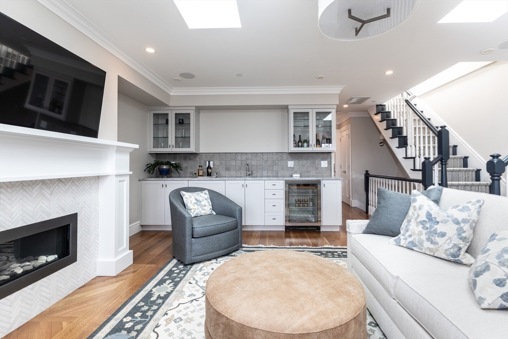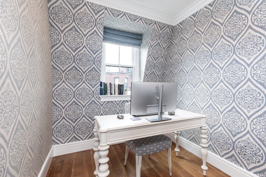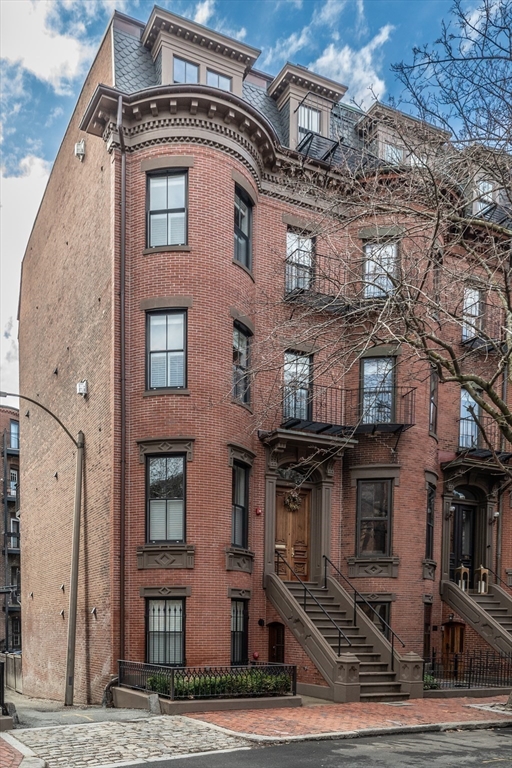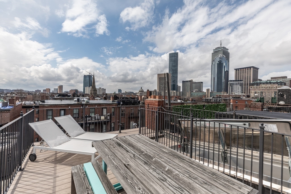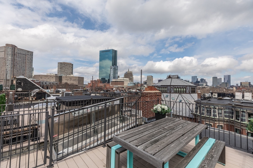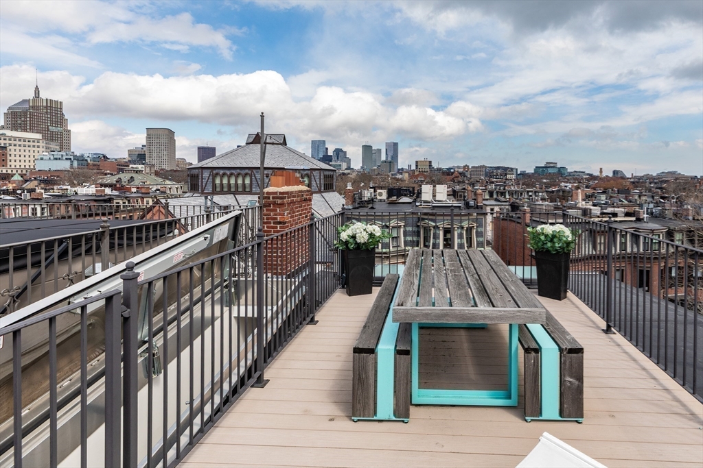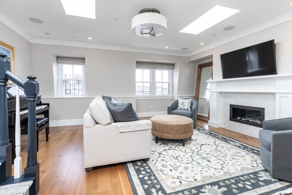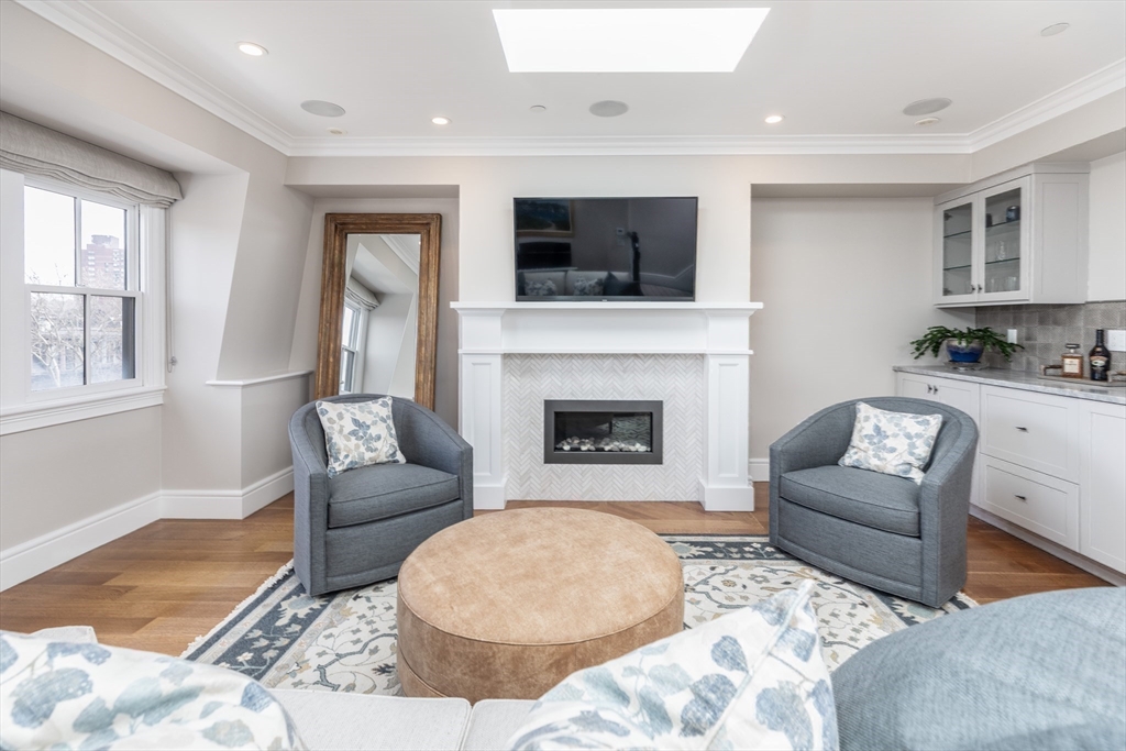 Custom penthouse triplex w/3 beds PLUS OFFICE, roof & rear decks as well as on-site deeded parking on enviable West Brookline Street which is filled with bespoke single family homes. Entry level features open concept living area showcasing an elegant kitchen with 48” Bertazzoni gas range, Sub-Zero fridge, wine fridge, Taj Mahal marble counters & large island w/counter seating for 4. Generous dining area flows into gas fireplaced living room w/3 windows & bow front. Powder room, custom closet cabinet & 4 large glass panels feeding to deck w/gas grill complete this level. Up only 1 fight is king-sized primary bed, walk-in closet & en-suite bath ww/double-sink vanity & step-in shower. Adjacent queen-sized guest bed w/en-suite bath are also on the floor. Top floor features 3rd bed, office, full bath, amazing gas fireplace family room, wet-bar with dishwasher & wine chiller as well as full staircase to large private roof deck w/sweeping Back Bay/downtown views. Designer finishes throughout.
