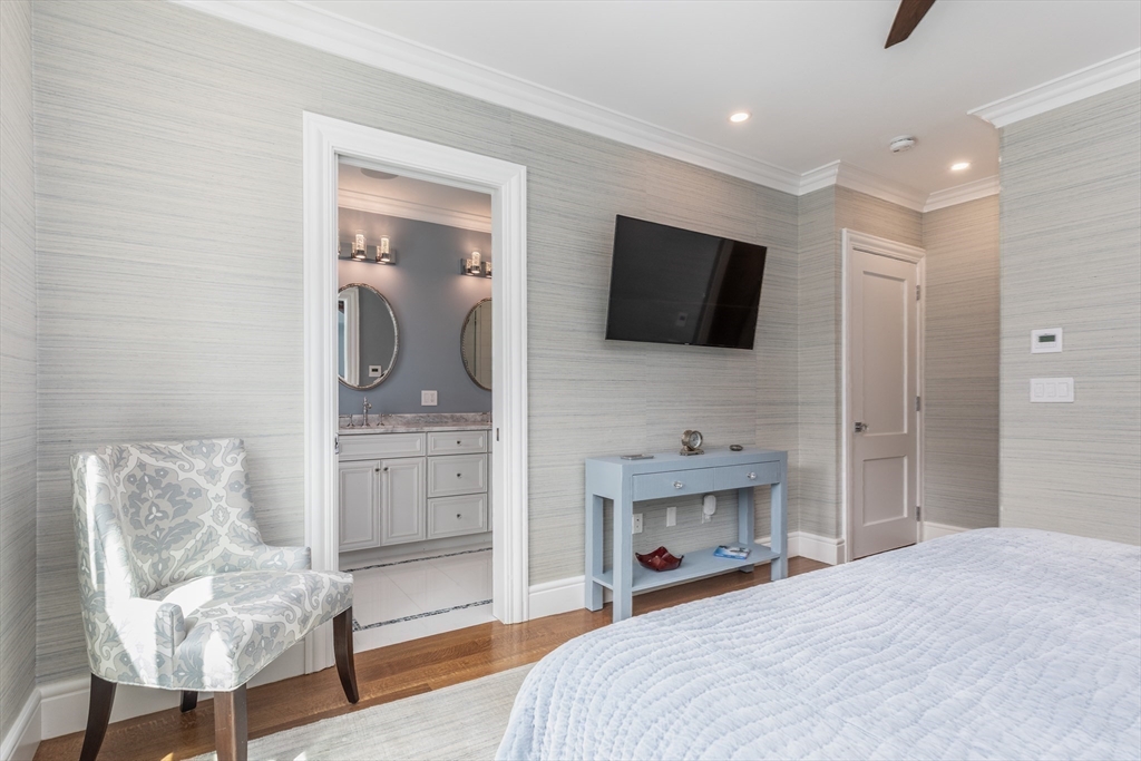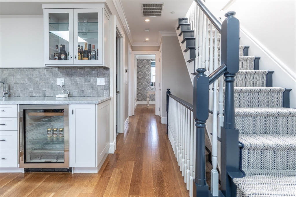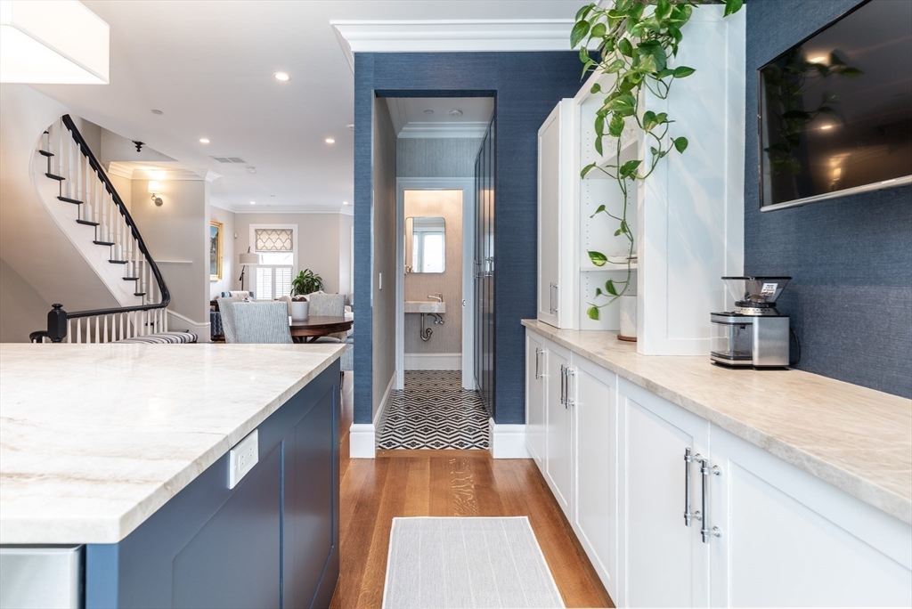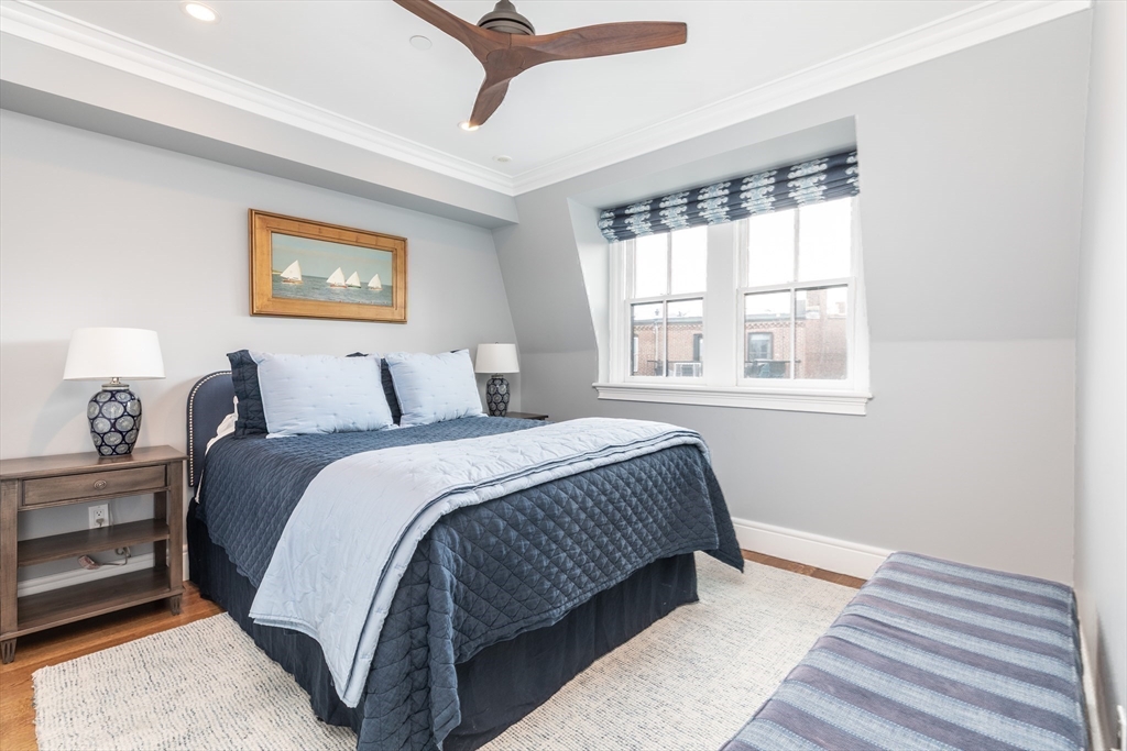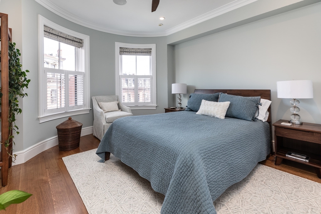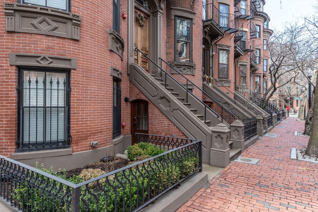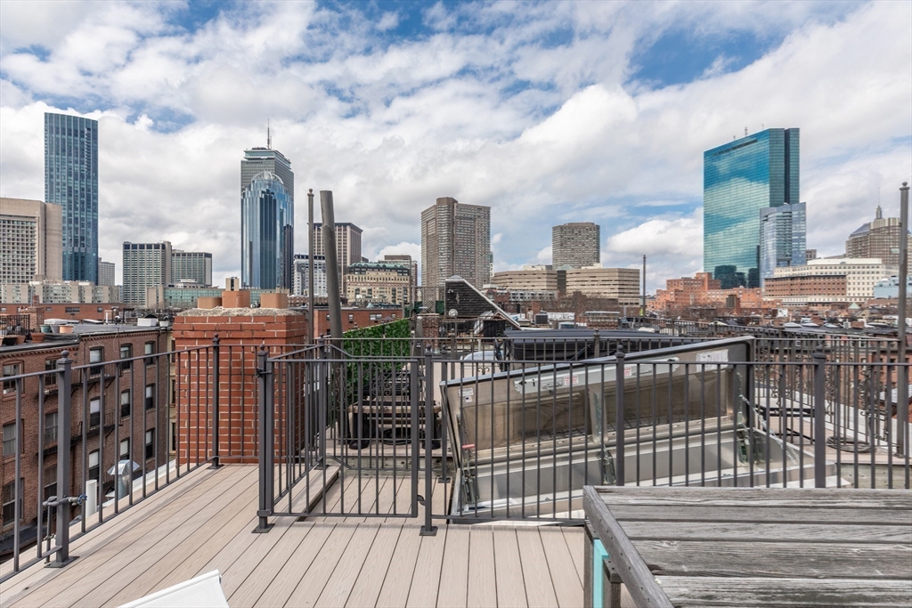 Custom penthouse triplex w/3 beds PLUS OFFICE, roof & rear decks as well as on-site deeded parking on enviable West Brookline Street which is filled with bespoke single family homes. Entry level features open concept living area showcasing an elegant kitchen with 48” Bertazzoni gas range, Sub-Zero fridge, wine fridge, Taj Mahal marble counters & large island w/counter seating for 4. Generous dining area flows into gas fireplaced living room w/3 windows & bow front. Powder room, custom closet cabinet & 4 large glass panels feeding to deck w/gas grill complete this level. Up only 1 fight is king-sized primary bed, walk-in closet & en-suite bath ww/double-sink vanity & step-in shower. Adjacent queen-sized guest bed w/en-suite bath are also on the floor. Top floor features 3rd bed, office, full bath, amazing gas fireplace family room, wet-bar with dishwasher & wine chiller as well as full staircase to large private roof deck w/sweeping Back Bay/downtown views. Designer finishes throughout.